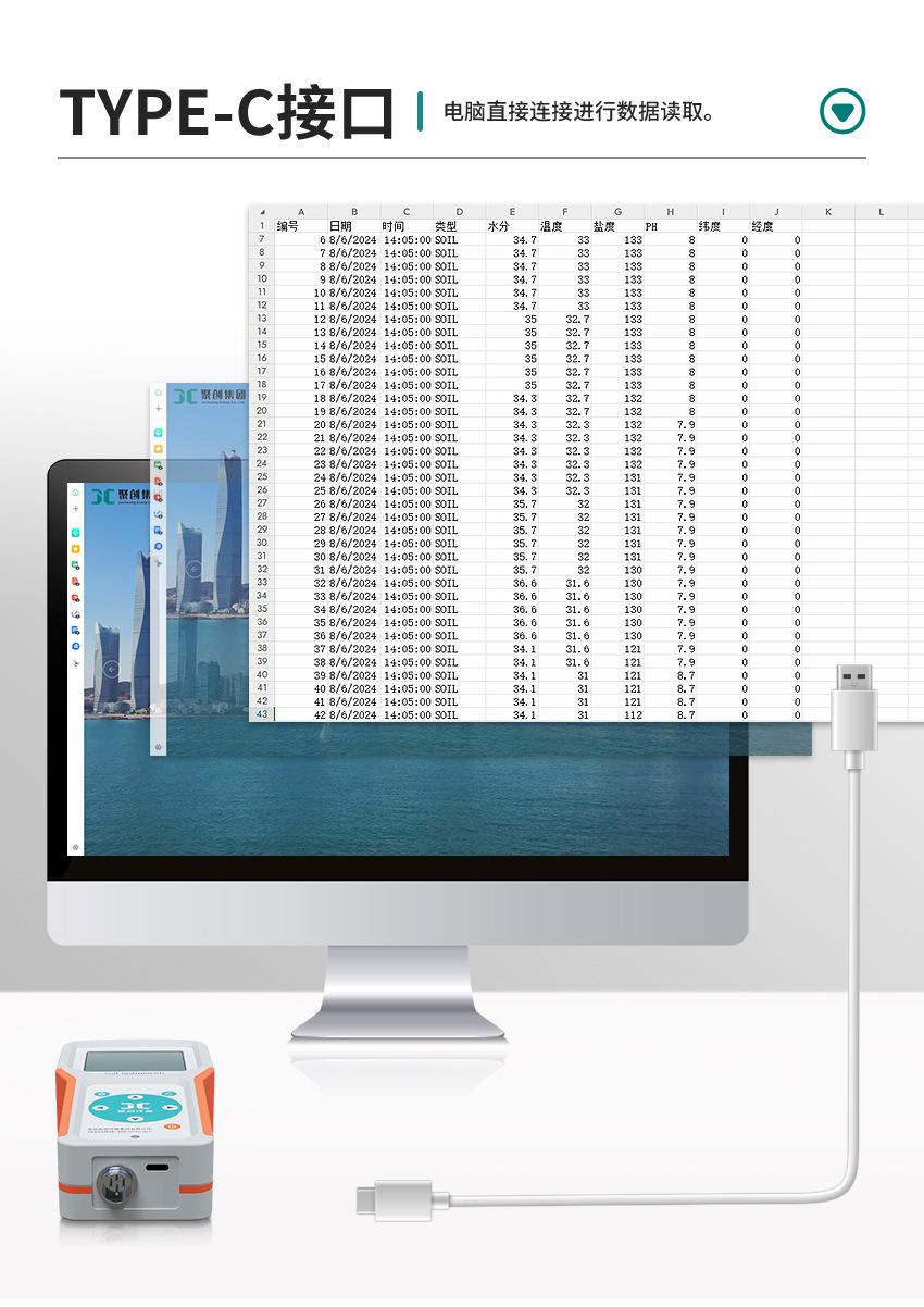 1. Gracias a su diseño de estructura integrada y a una tarjeta SD externa, puede medir con precisión la temperatura, la humedad, la salinidad y el pH del suelo en la ubicación medida, y cargar los datos de medición de factores ambientales del punto medido con un solo clic. Además, los datos se pueden exportar directamente al ordenador mediante una tarjeta SD externa.