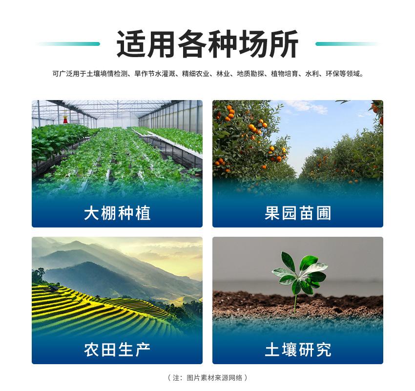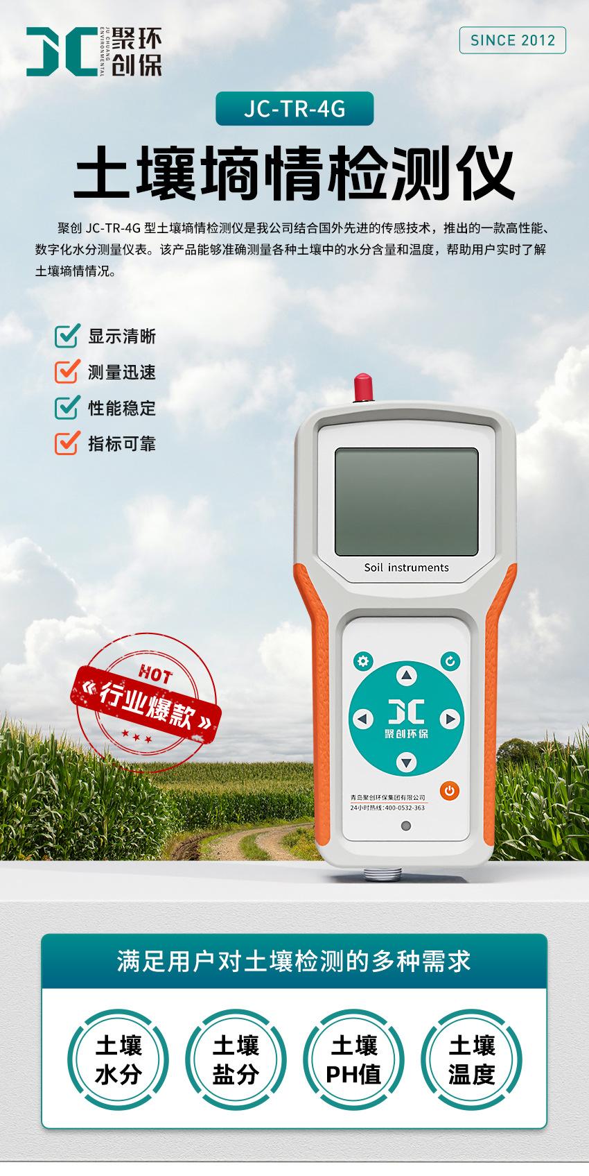 El medidor rápido de humedad, temperatura y salinidad del suelo JC-TR-4G cuenta con un diseño de estructura integrada. El host puede registrar en tiempo real múltiples parámetros como la humedad, la temperatura, la salinidad y el pH del suelo en el entorno medido. Se utiliza ampliamente en la detección de humedad del suelo, el riego de secano para el ahorro de agua, la agricultura de precisión, la silvicultura, la exploración geológica, el cultivo de plantas, la conservación del agua, la protección del medio ambiente y otros campos.