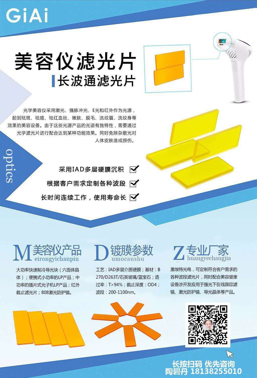 Fabricante 510-1200nm, Filtro de Paso Largo Instrumento Portátil de Depilación IPL Fotón Hoja de Filtro de Cuarzo