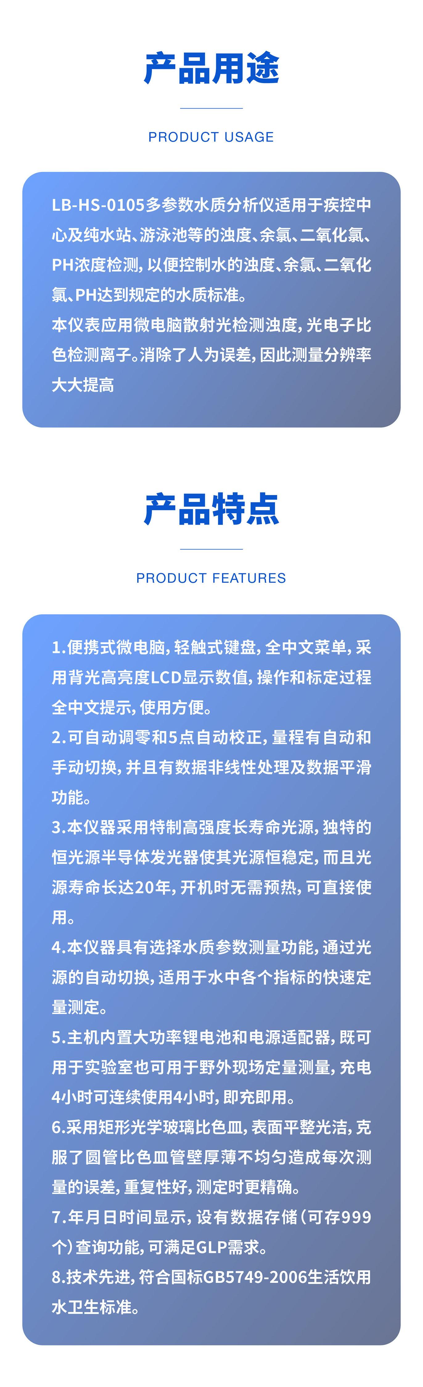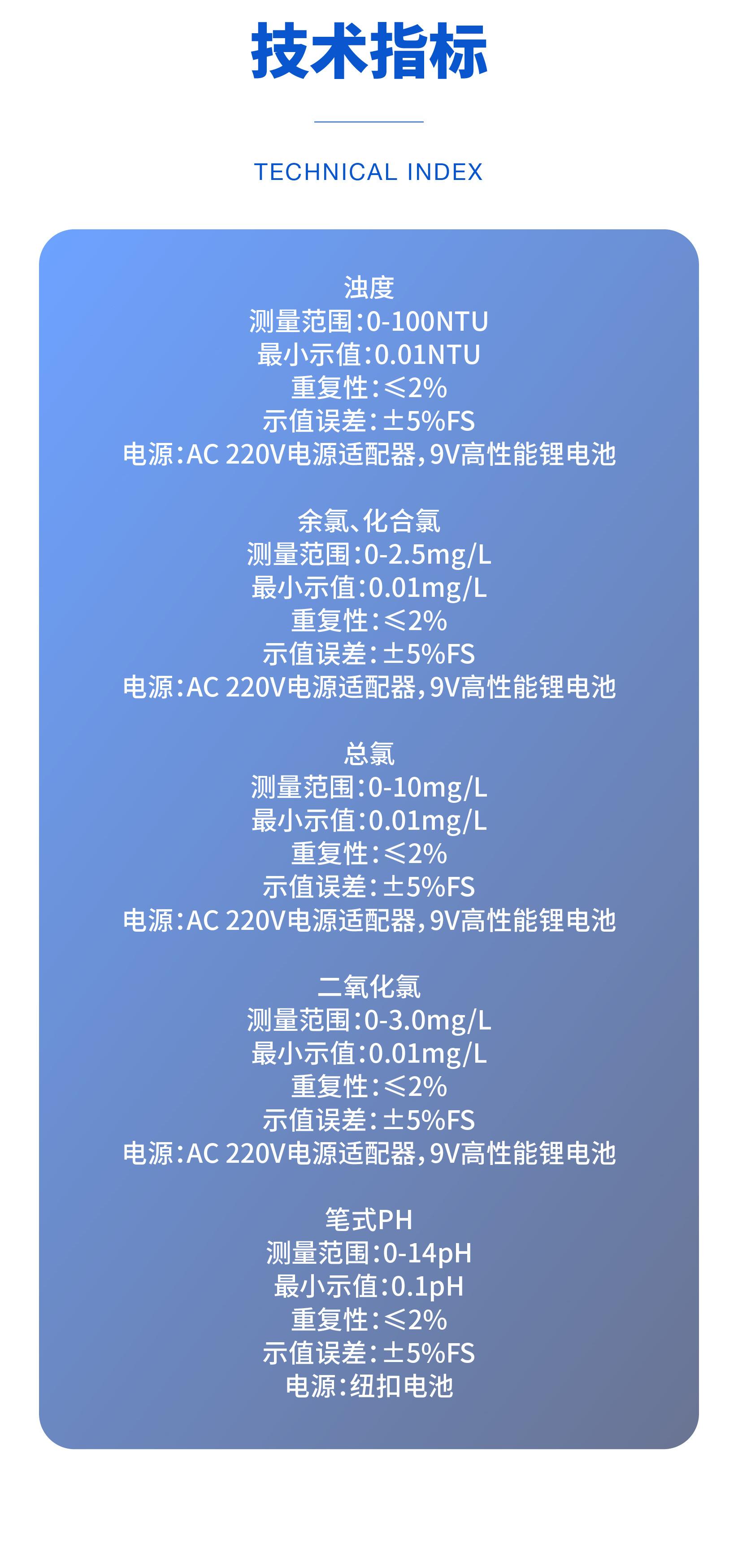 0-100 NTU;0-2.5mg/L;0-10mg/L;0-3.0mg/L;0-14pH