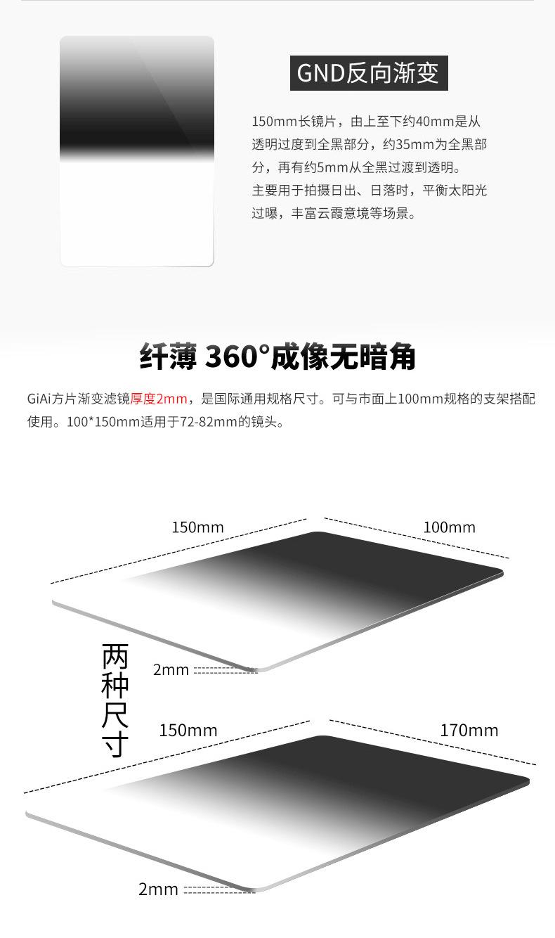 Filtro de Fotografía GND Espejo Gradiente Gris Medio No Reflectante 100/150mm GND0.9/1.2 Filtro Inverso Suave y Duro