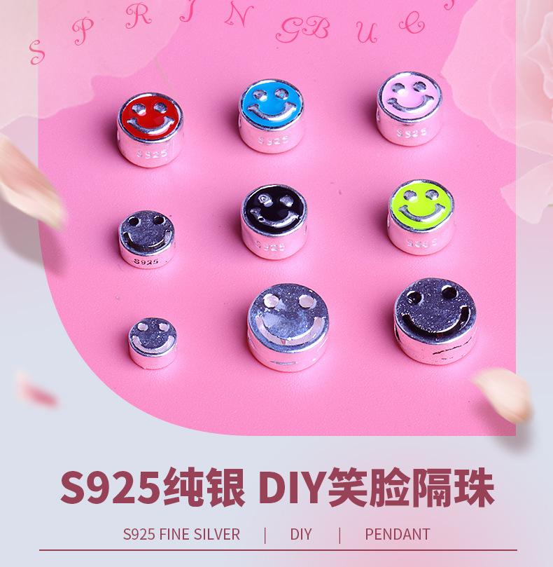 [Envío gratuito] Collar de cuerda roja con cuentas planas y redondas de color sonriente en plata de ley S925, pulsera tejida, joyería