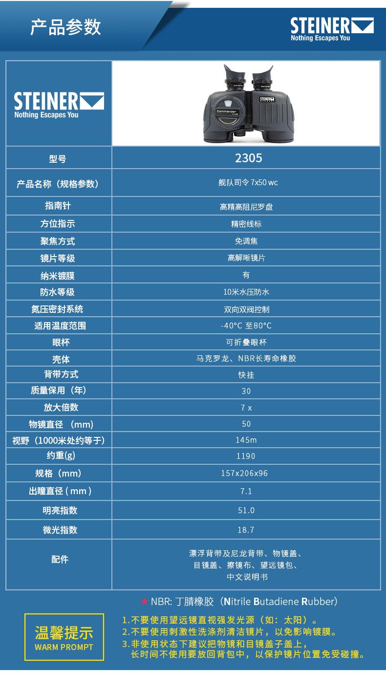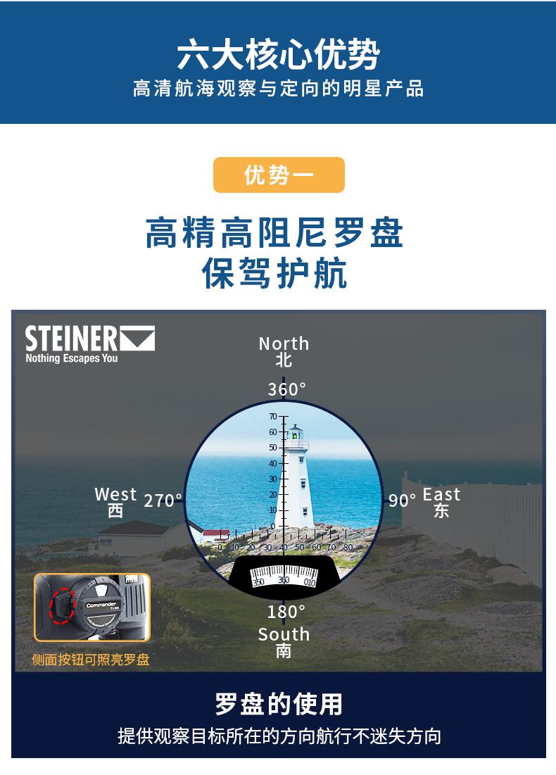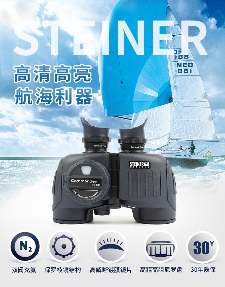 Visión alemana STEINER comandante de flota 7 veces visión grande brújula de alta estabilidad mar telescopio especial 2305