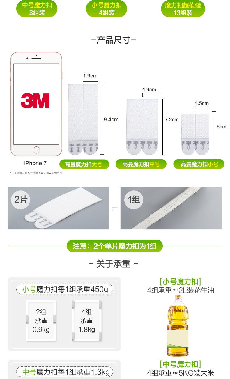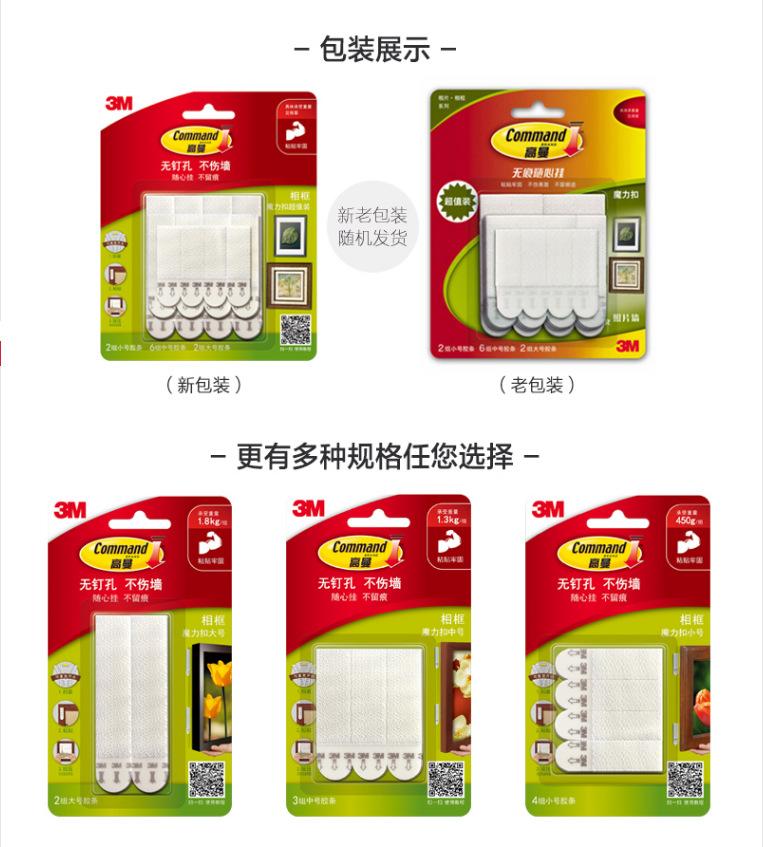 3M Hebilla mágica Goldman valor añadido Foto Boda Foto gancho sin costuras montado en la pared Gancho sin clavos sin perforaciones Velcro