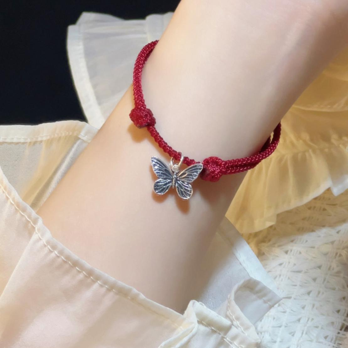 Compra Pulsera Vintage Grande Mariposa Estilo Étnico Tejida Plata para Mujer Estilo Nacional Estilo Chino Cuerda de Mano Artística Decoración Nicho para Mujer al por mayor en Joom.pro