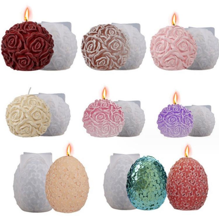 Molde de silicona con forma de huevo de cristal epoxi para bricolaje, molde ovalado de yeso para hortensias, molde redondo para velas de rosas para aromaterapia.