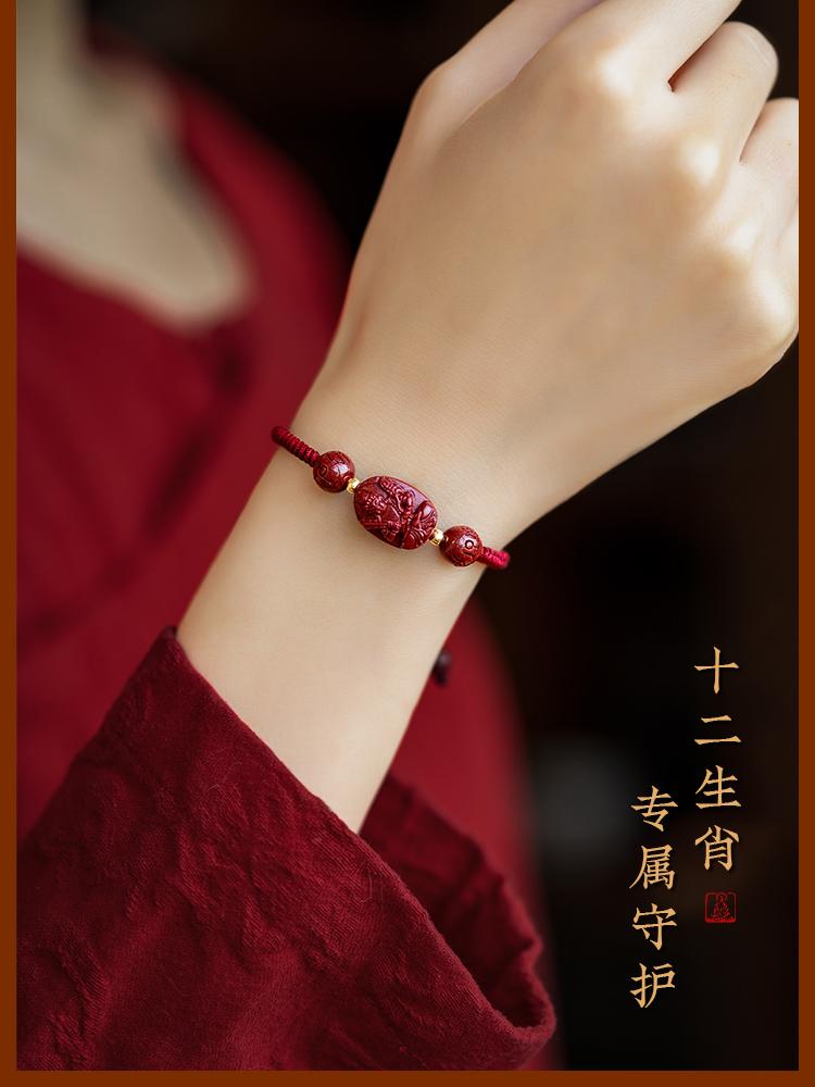 Pulsera de Cinabrio Ocho Dioses Guardianes Cuerda Tejida a Mano Año de los Doce Signos del Zodíaco Pulsera de Cuerda Roja para Hombres y Mujeres