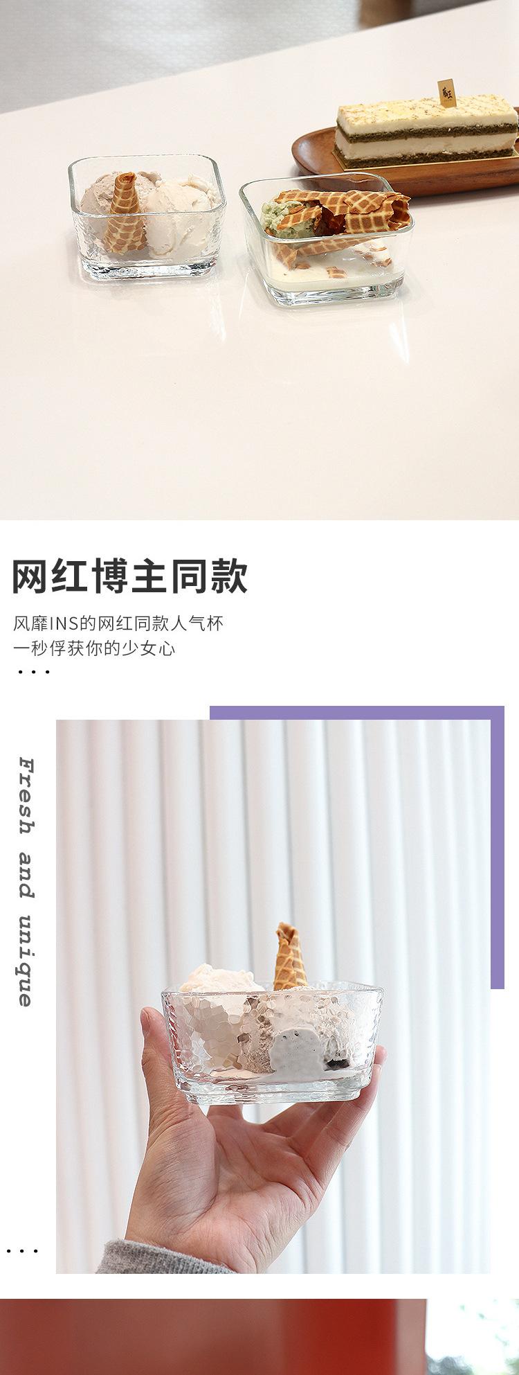 Tazón de vidrio cuadrado creativo y fresco, tazón para postre, helado, ensalada de frutas, tazón japonés cuadrado para KTV