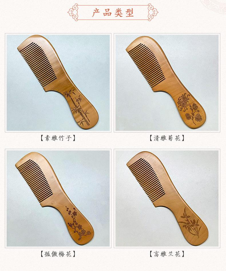Nuevo peine de madera tallado de doble cara para explosión, portátil, con mango redondo, peine de masaje para el cabello, soporta una generación de peines de madera
