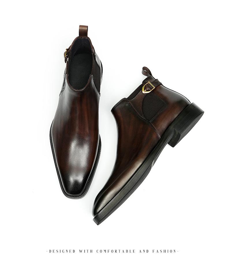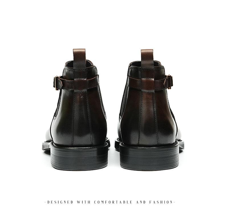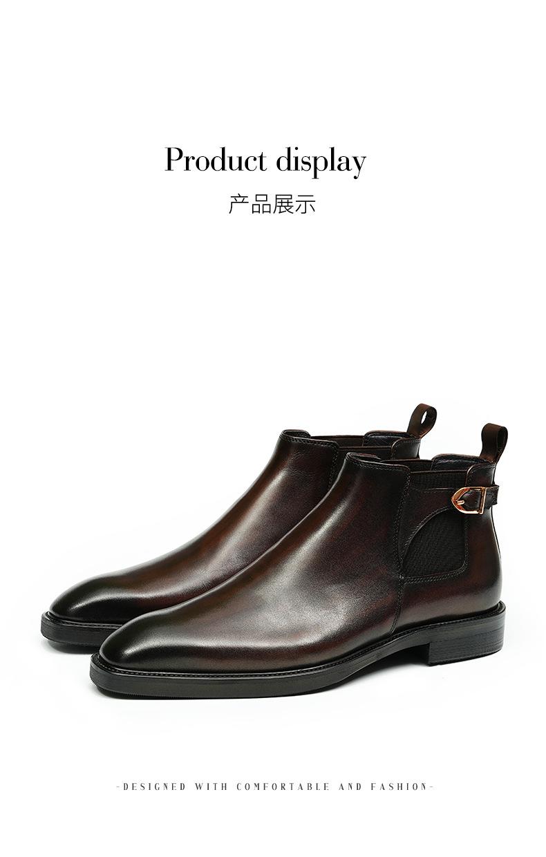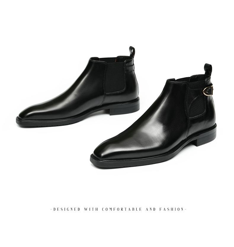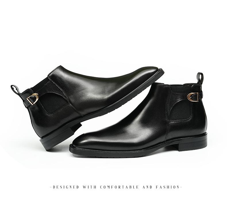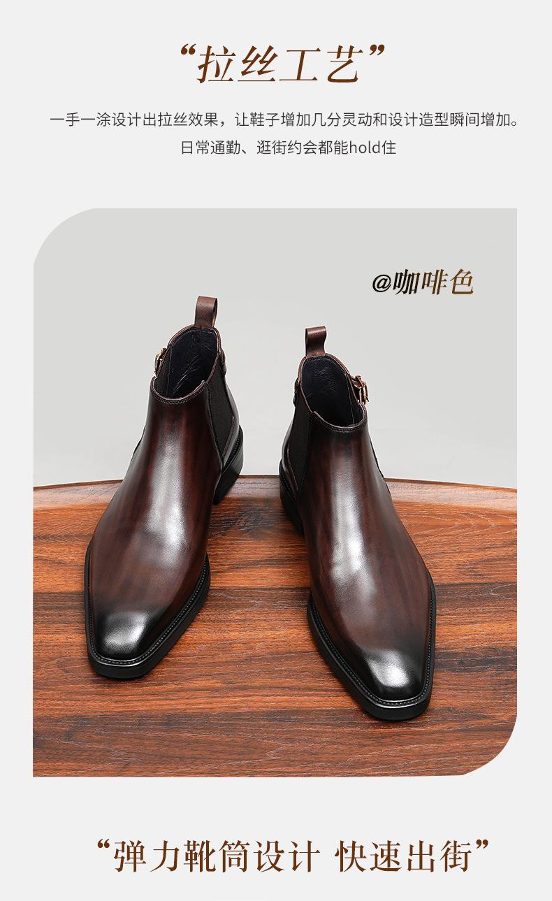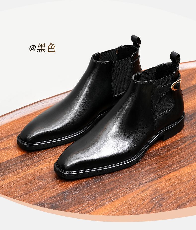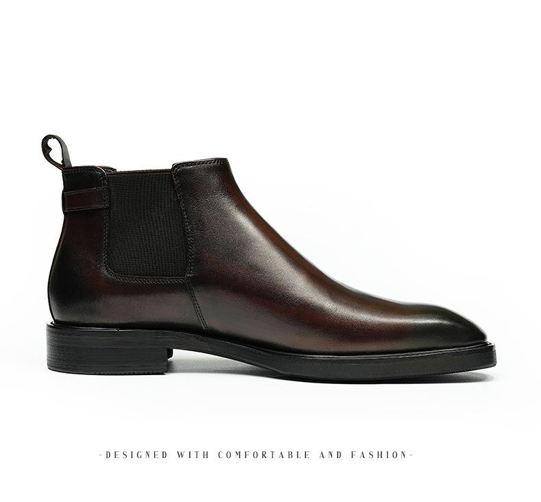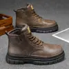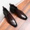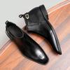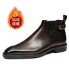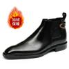 Botas de piel de vaca cálidas con forro polar de invierno, botas Martin puntiagudas de cuero para hombre, botas formales de negocios de caña alta estilo retro británico para hombre