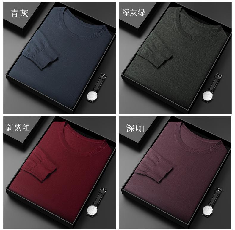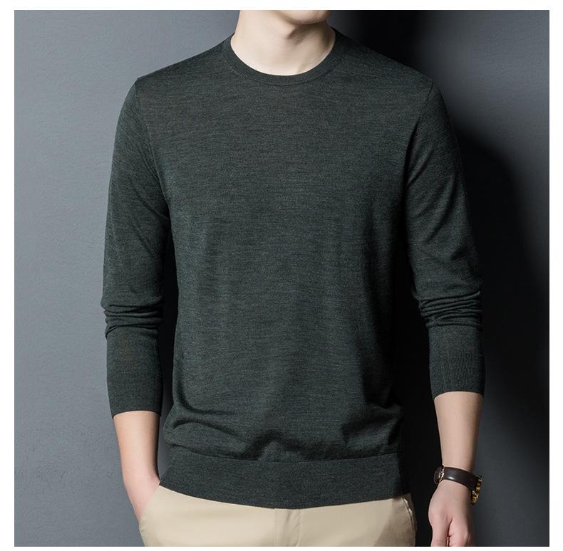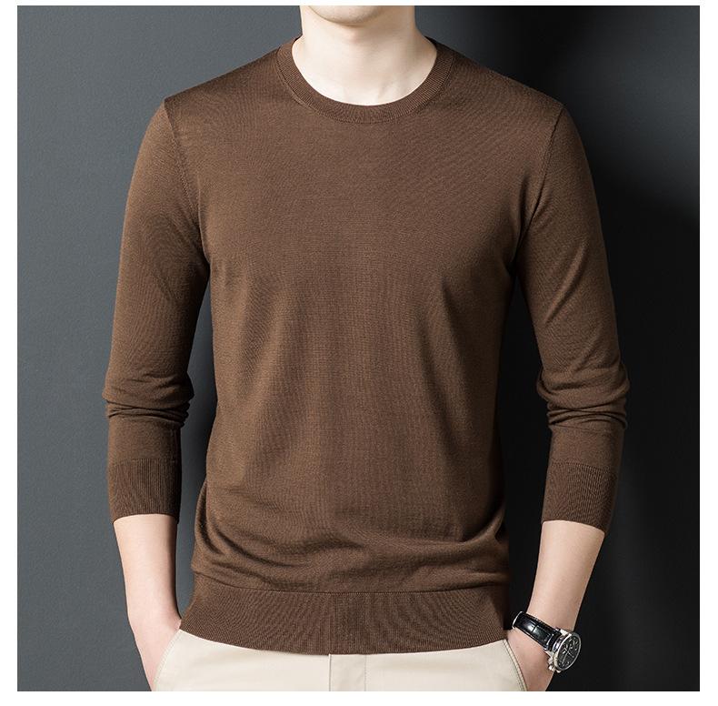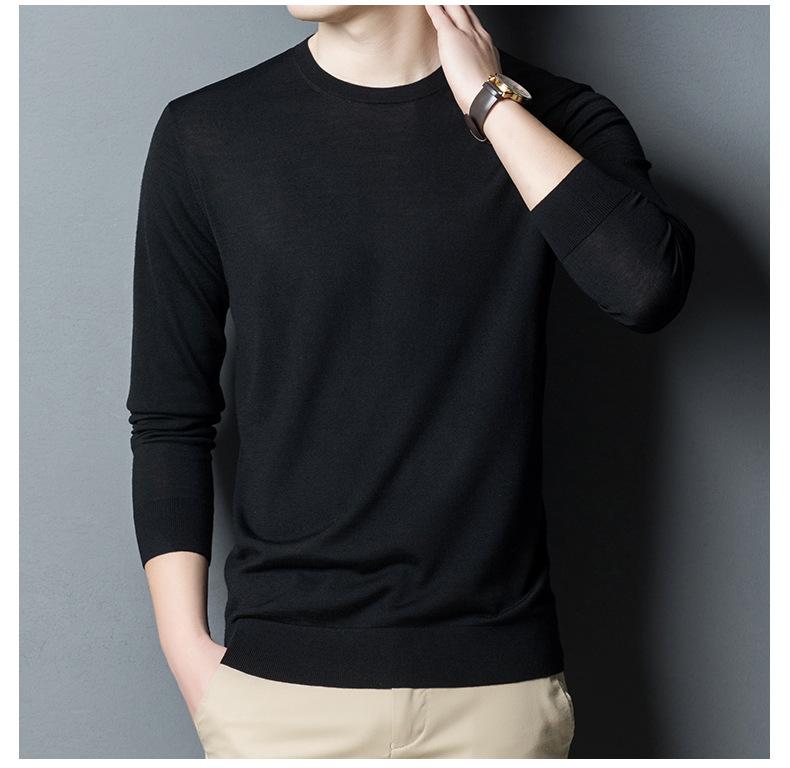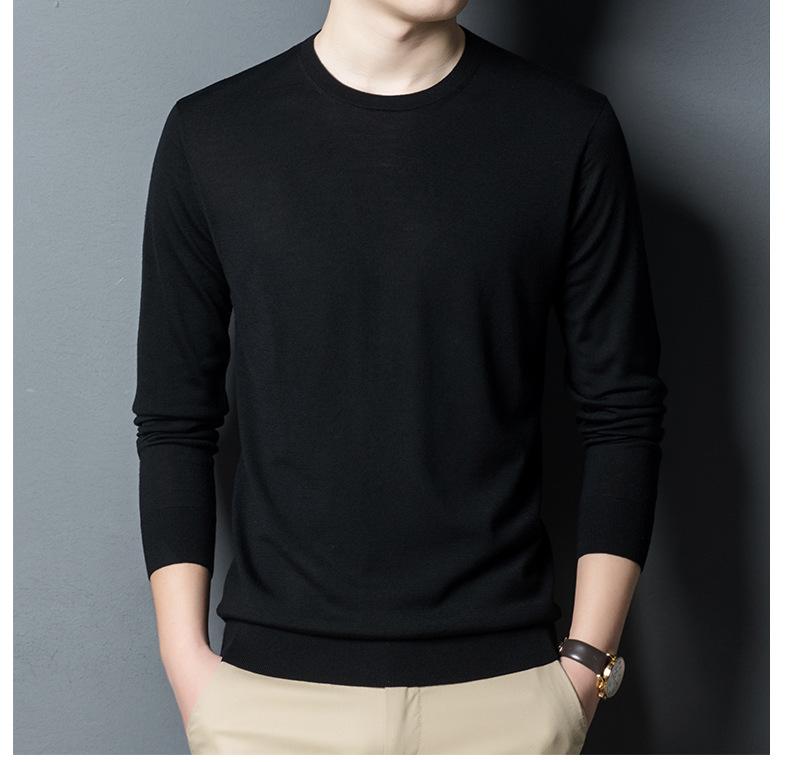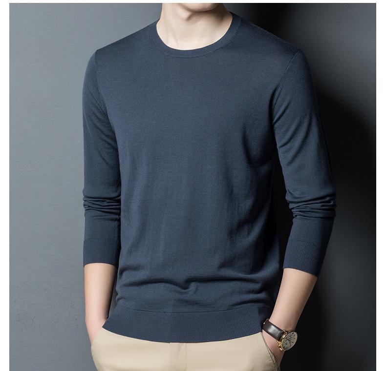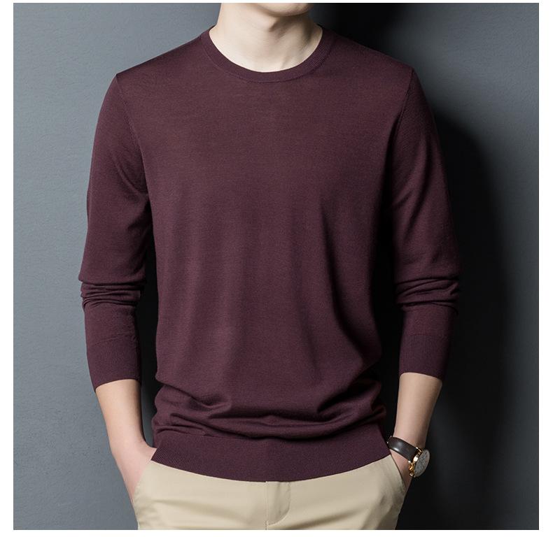 Suéter de otoño e invierno para hombre, jersey de cuello redondo de lana pura de 60 peinadas, camisa de fondo fino para hombre, en stock, al por mayor
