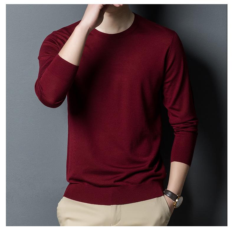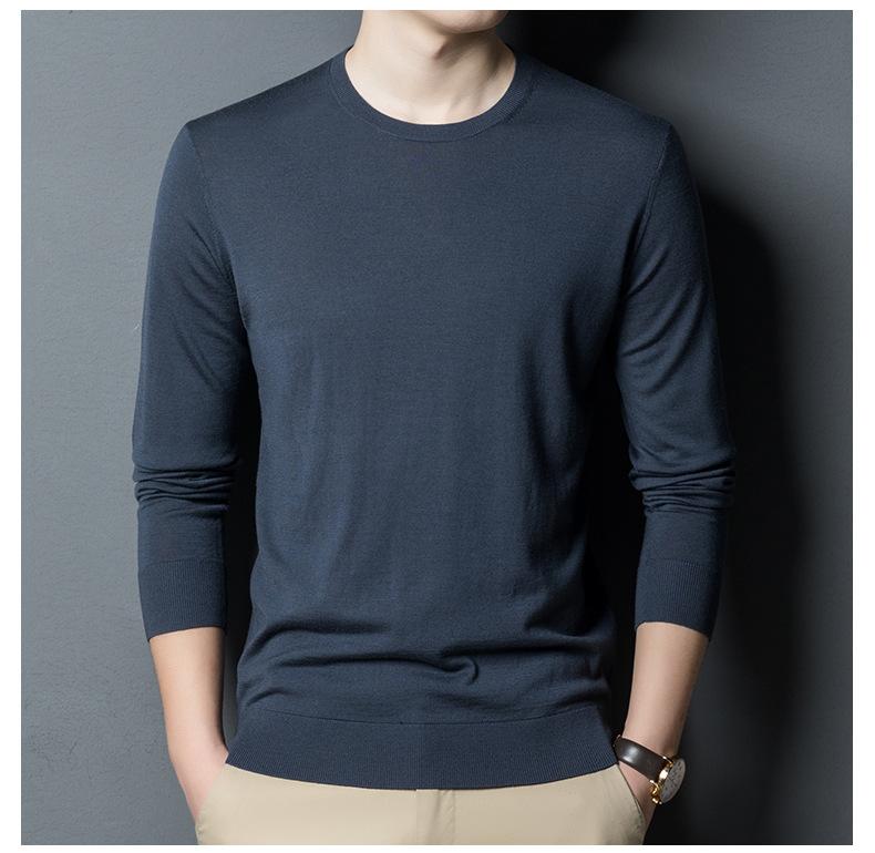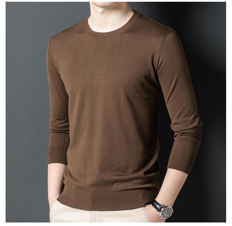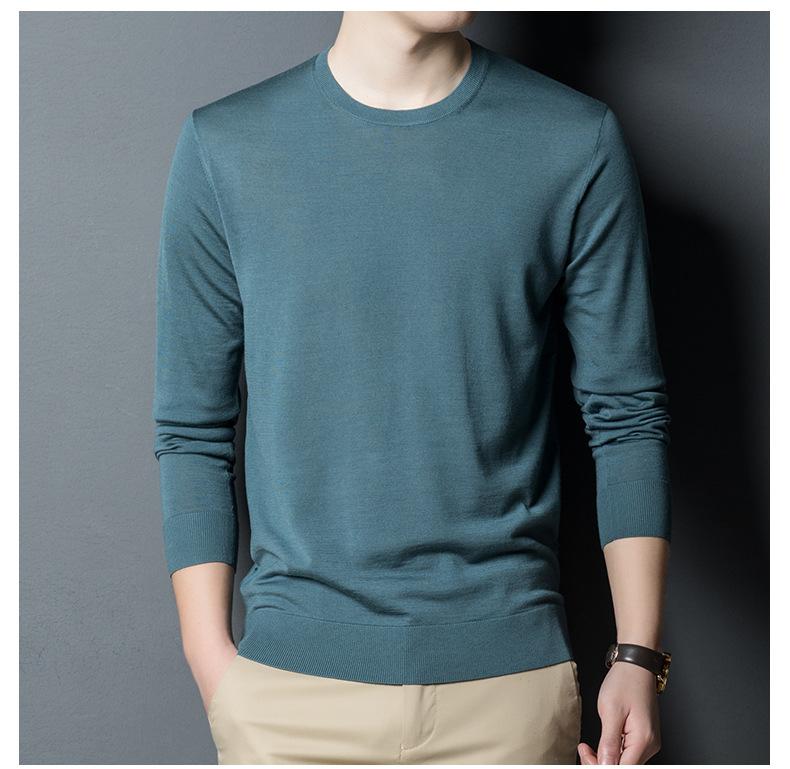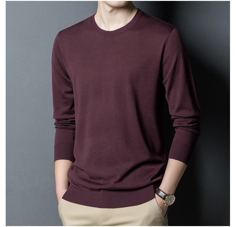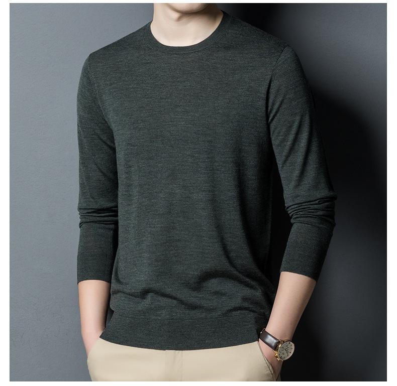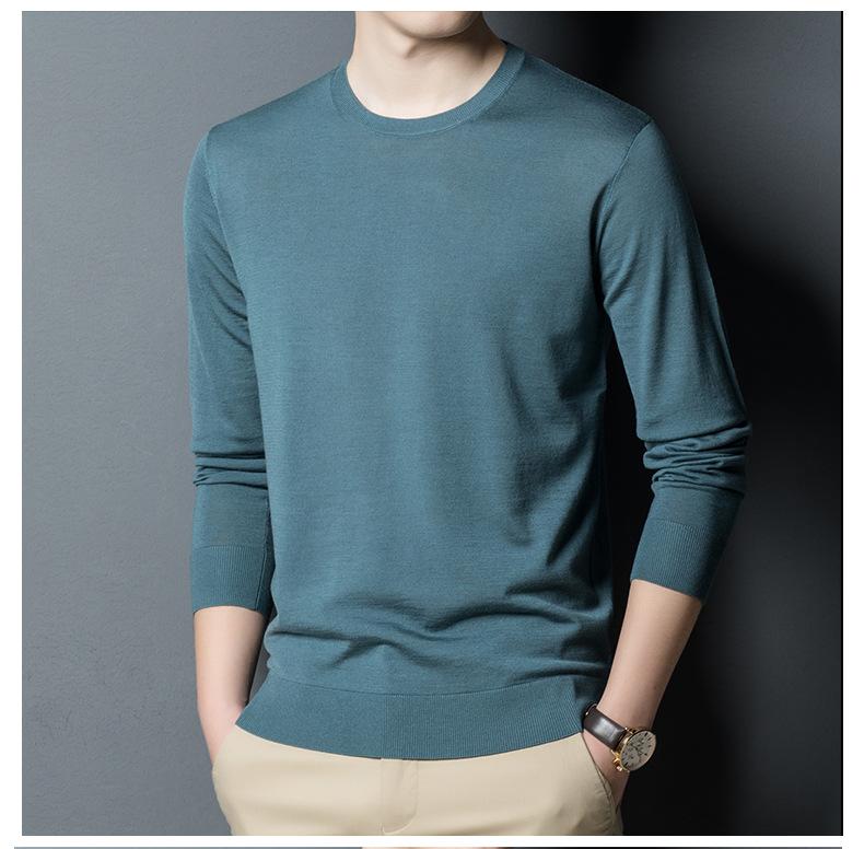 Suéter de otoño e invierno para hombre, jersey de cuello redondo de lana pura de 60 peinadas, camisa de fondo fino para hombre, en stock, al por mayor