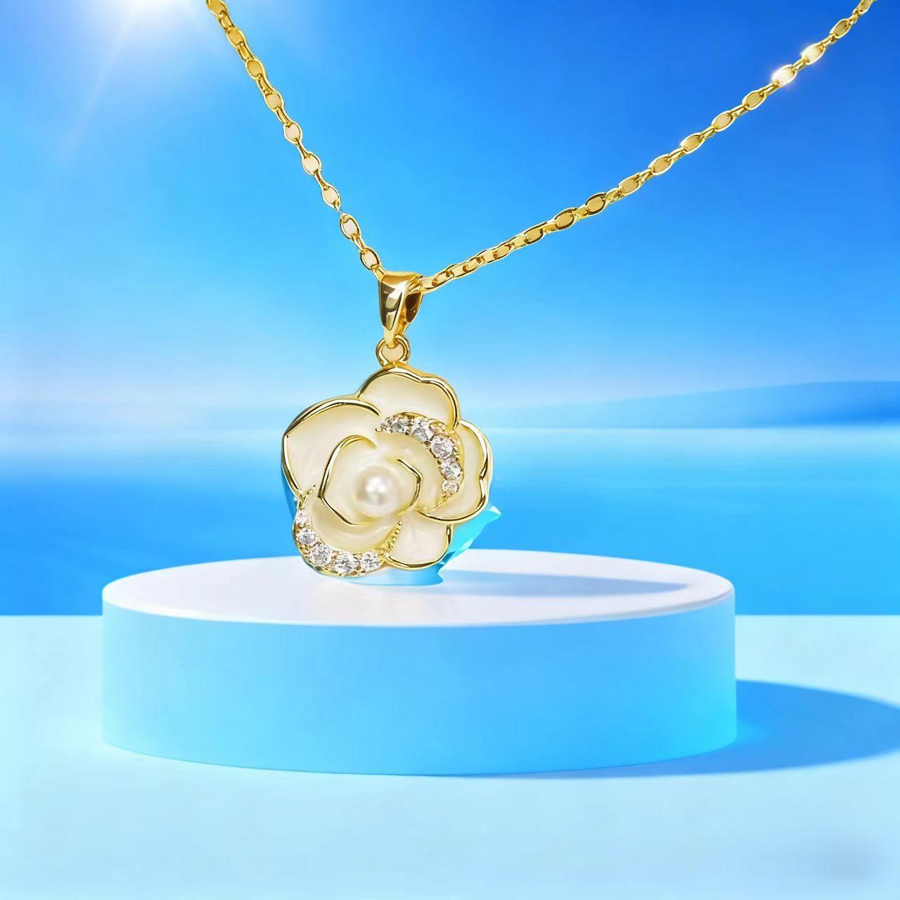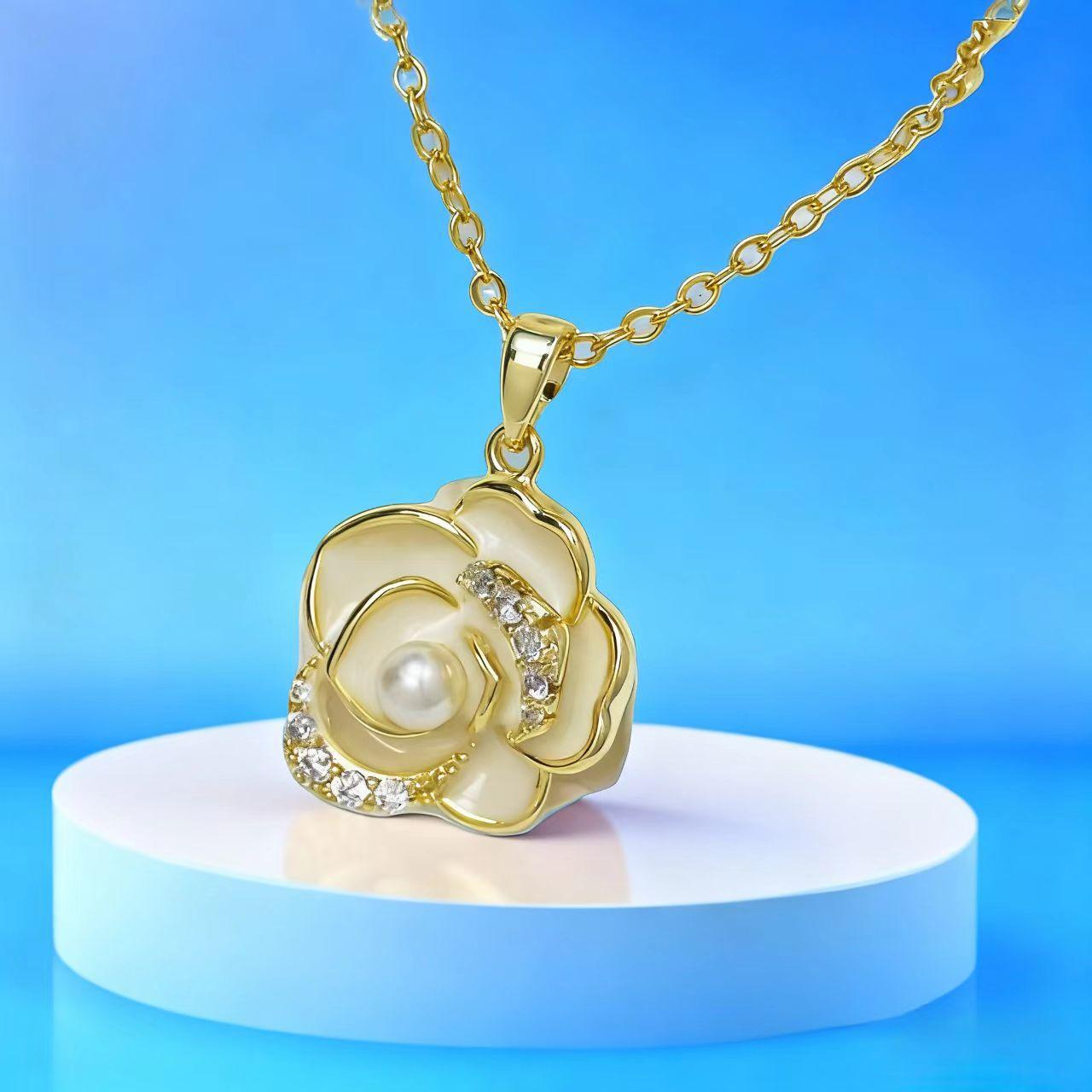 Collar de camelia, nuevo estilo, estilo pequeño, ligero, de lujo, de nicho, de moda, de alta gama, elegante, combinable, cadena de collar, venta al por mayor de fábrica