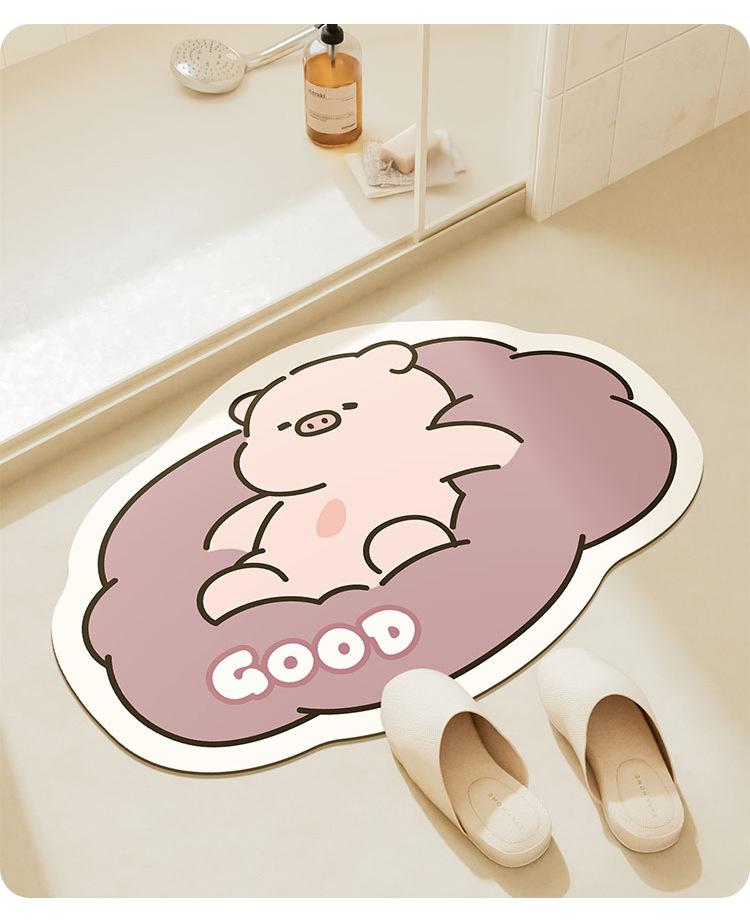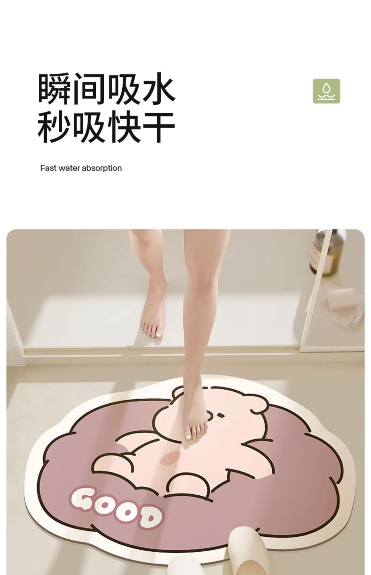Nueva alfombrilla de baño con diseño de diatomeas de dibujos animados para el hogar, antideslizante, de secado rápido, absorbente, de una sola pieza