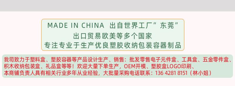 【Características del producto】Caja pequeña vacía de plástico transparente de una sola cuadrícula, el producto tiene una estructura totalmente transparente, que no solo es conveniente para el almacenamiento, sino que también permite ver los objetos almacenados en la caja interior, facilitando su búsqueda.