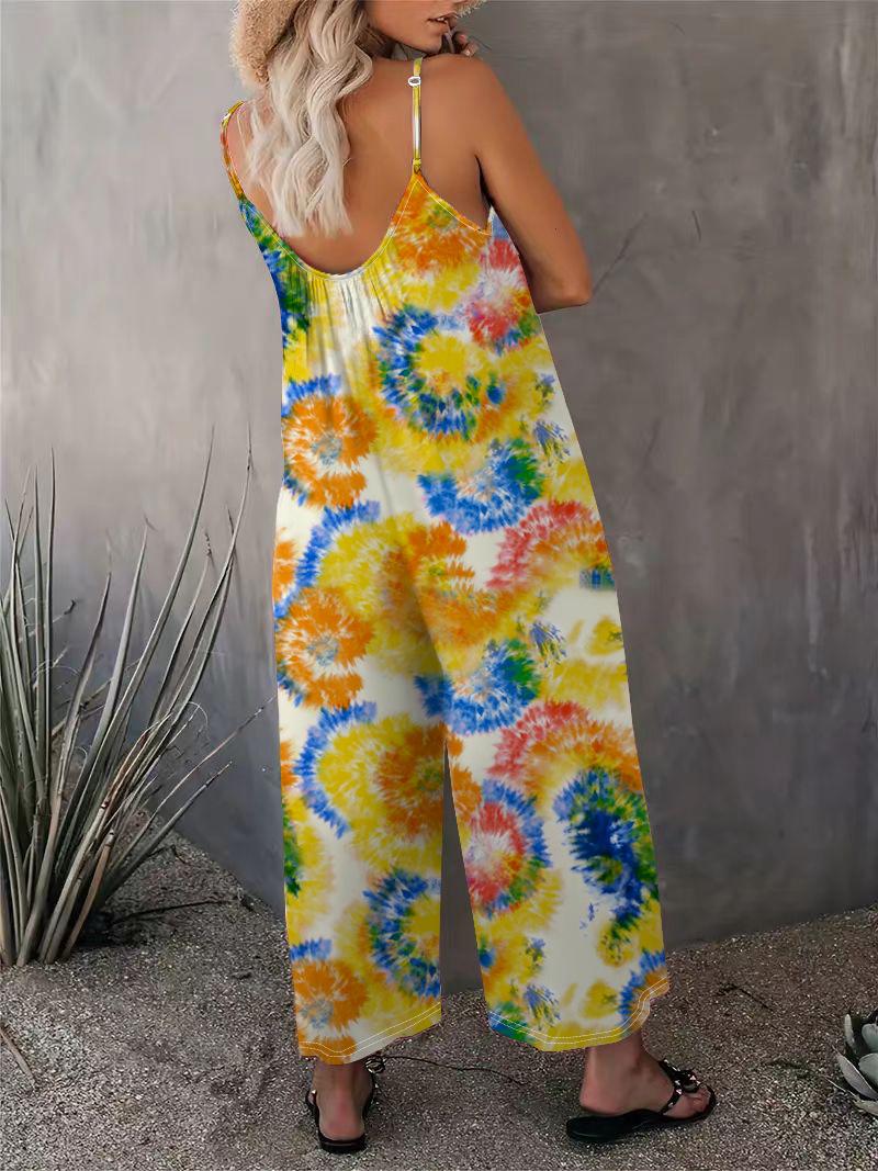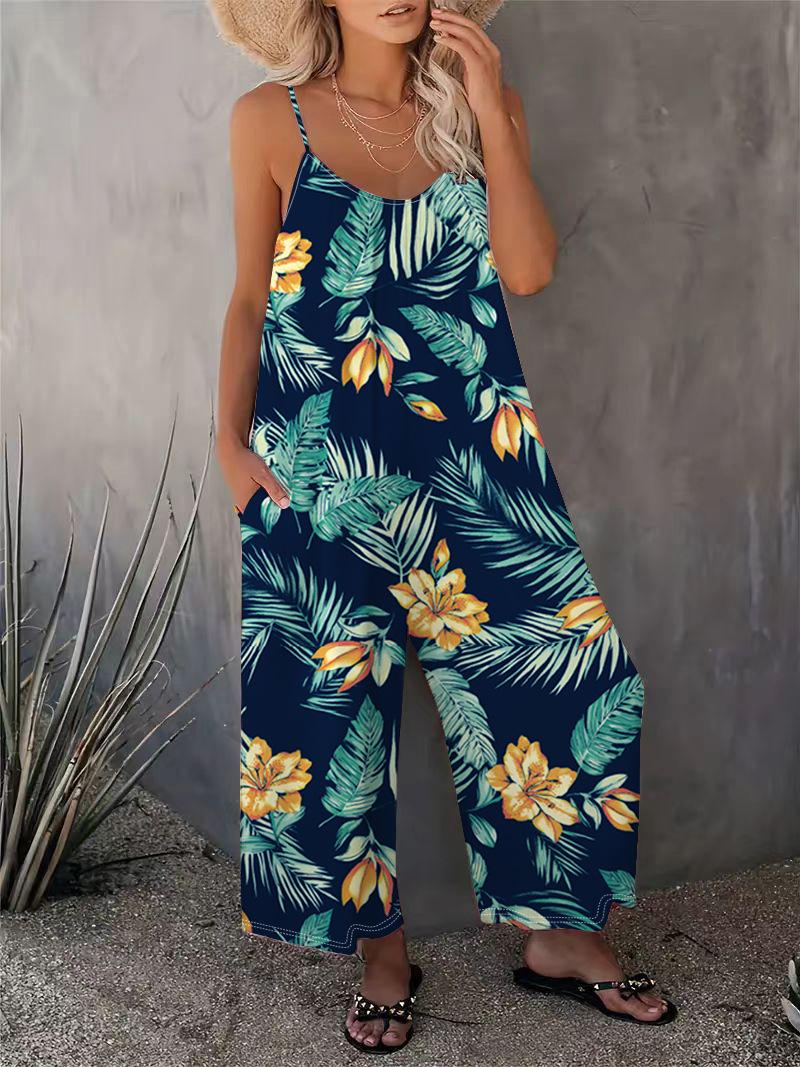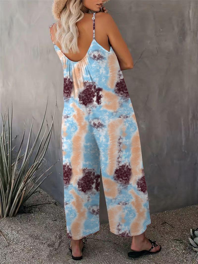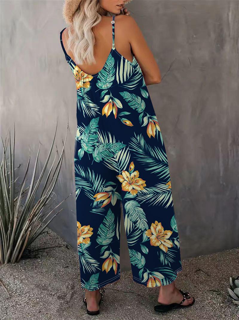 Pantalones de Tirantes Casuales para Mujer Primavera y Verano 2025 Nuevo Estilo Caliente Estampado Jumpsuit Sin Mangas para Mujer