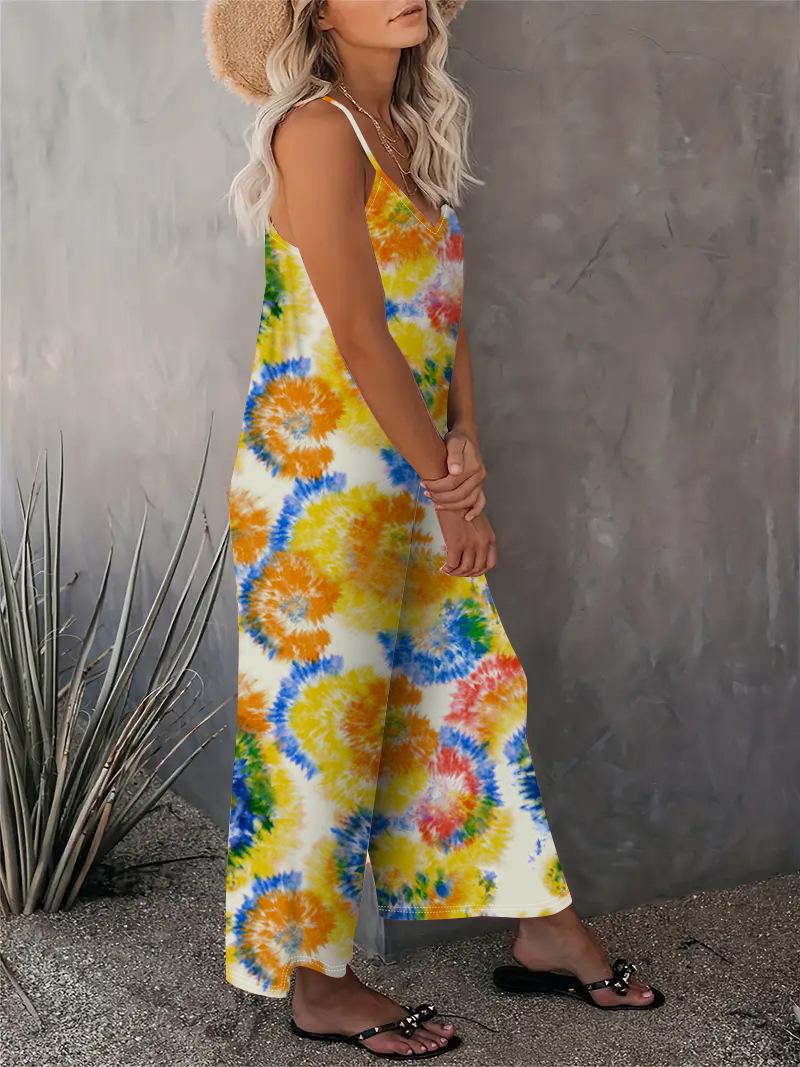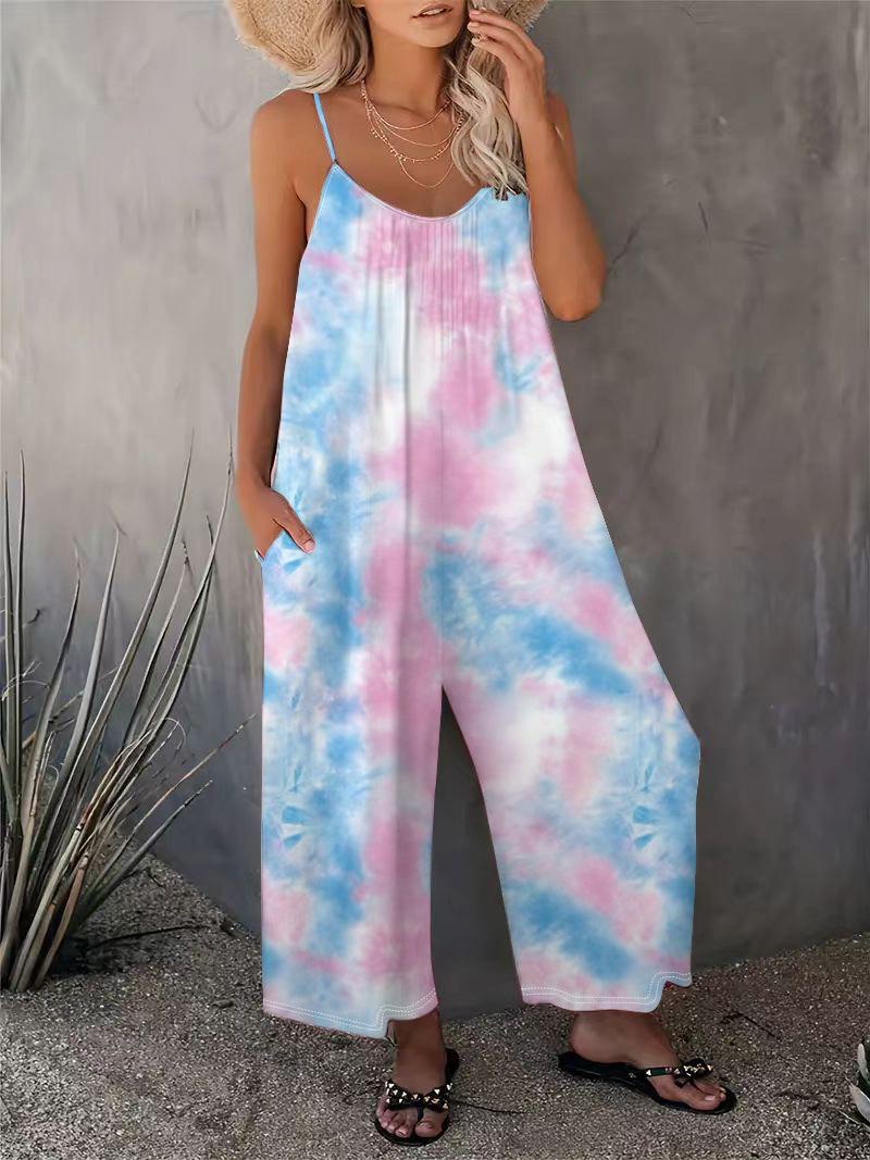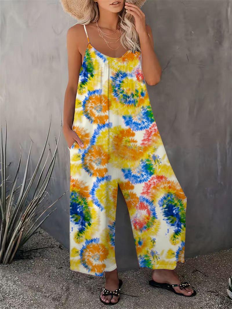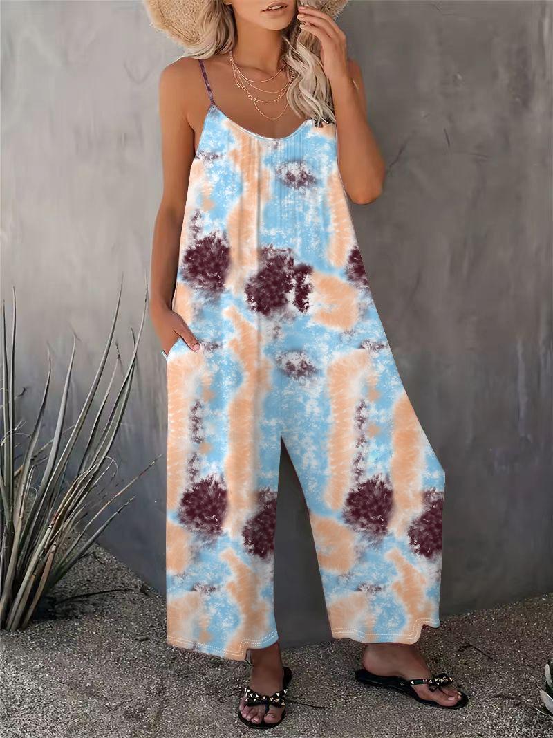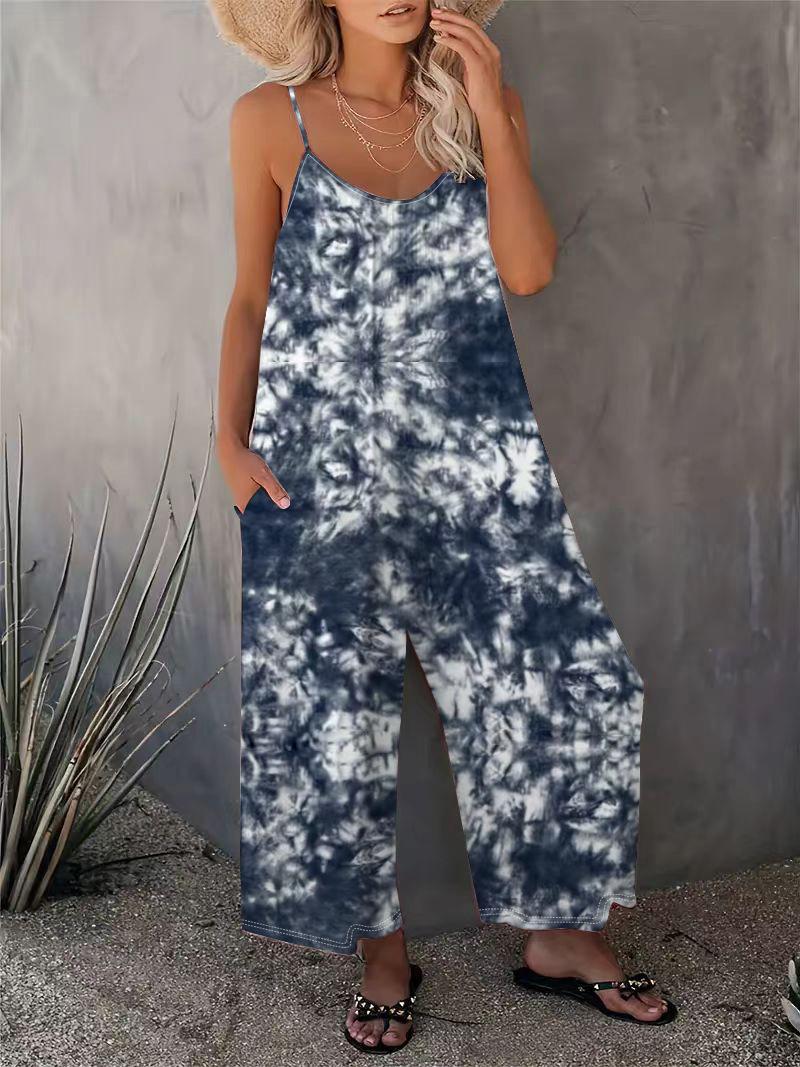 Pantalones de Tirantes Casuales para Mujer Primavera y Verano 2025 Nuevo Estilo Caliente Estampado Jumpsuit Sin Mangas para Mujer
