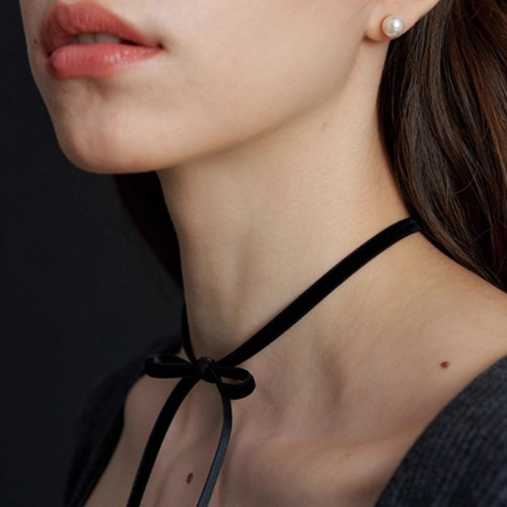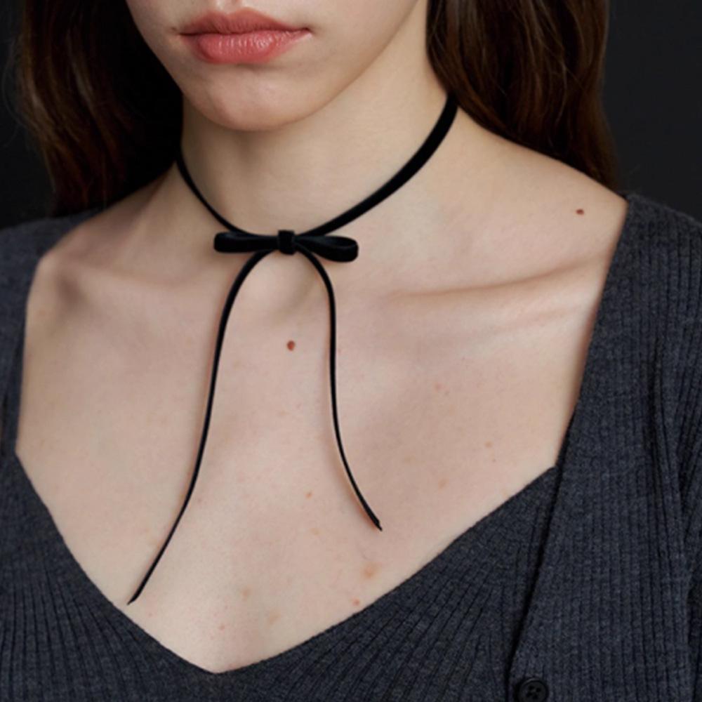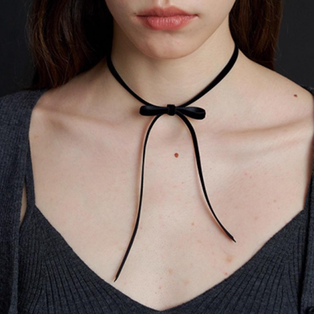 Collar de lazo retro francés con cinta negra para mujer, gargantilla, joyería para el cuello, collar de clavícula