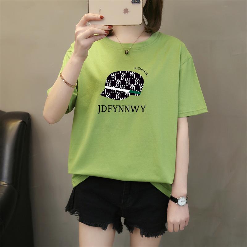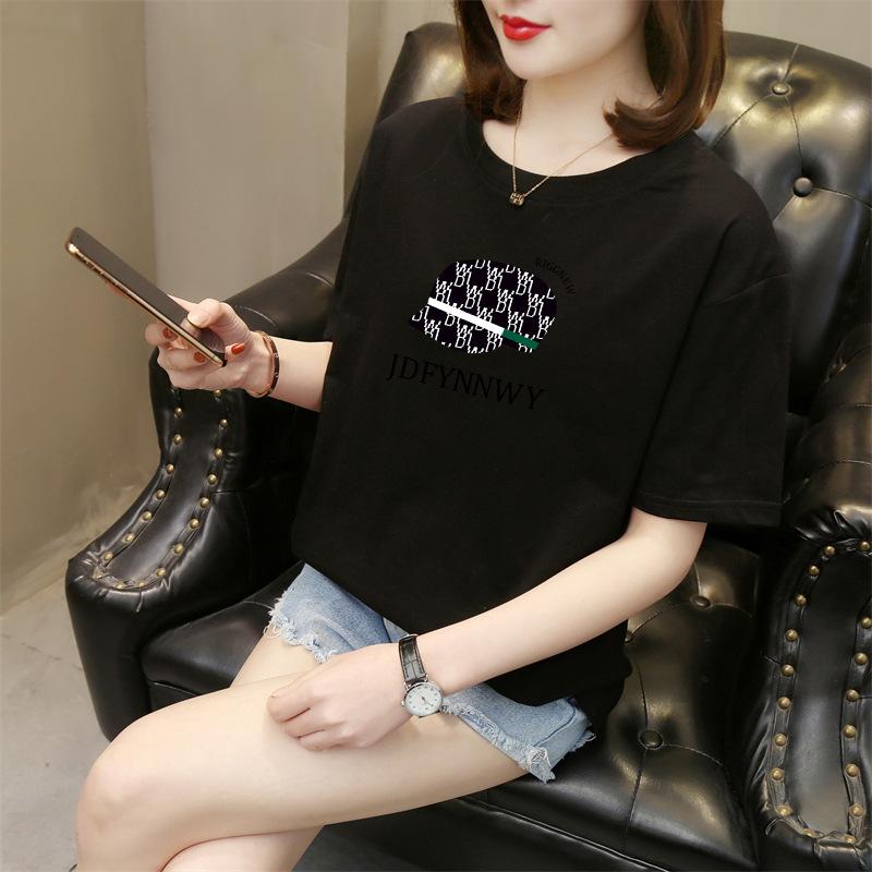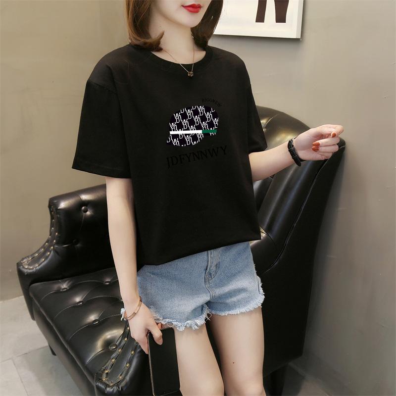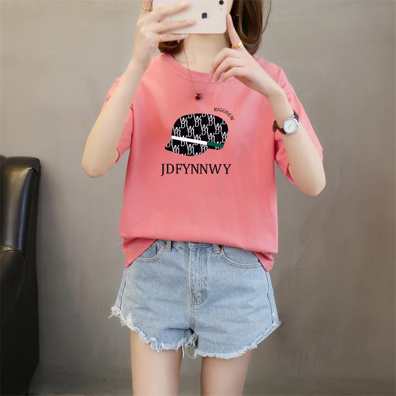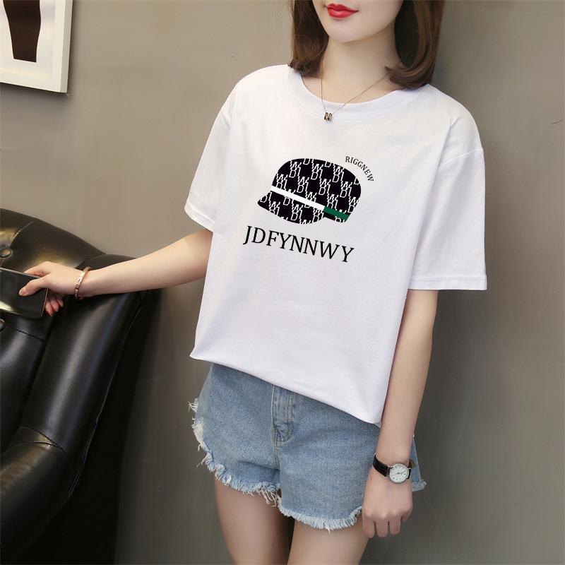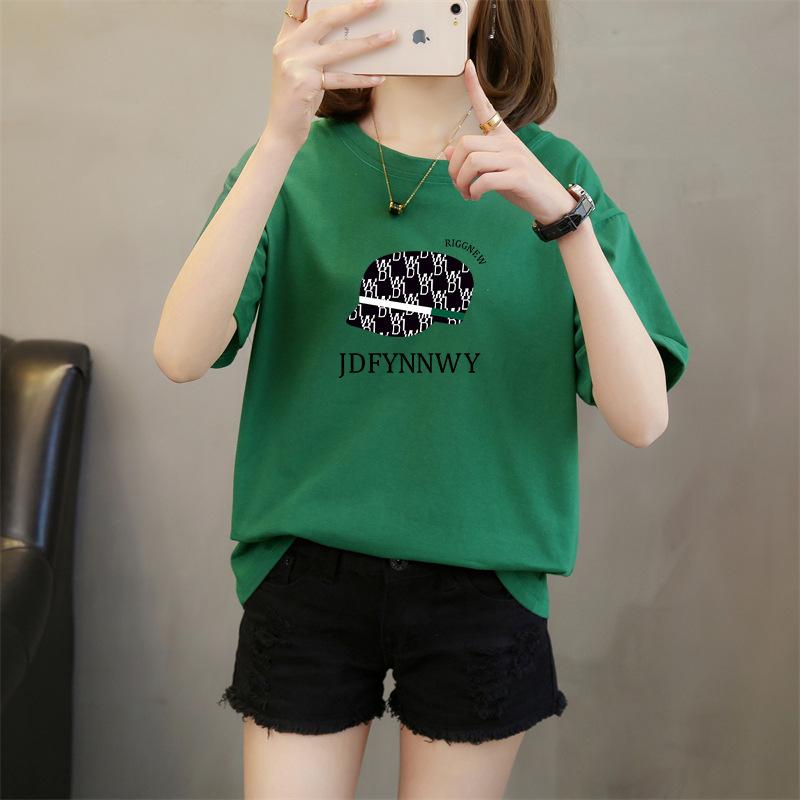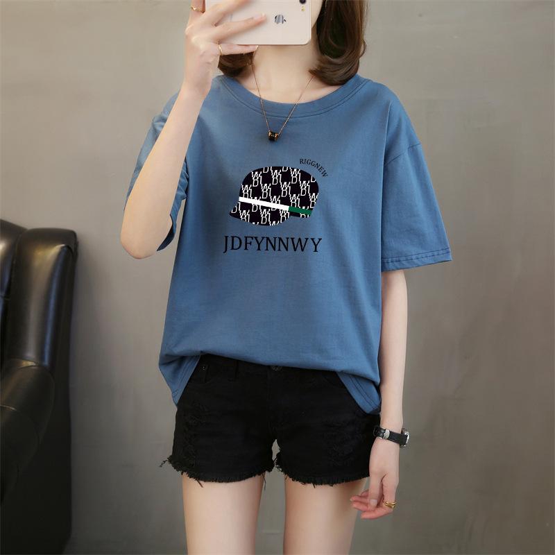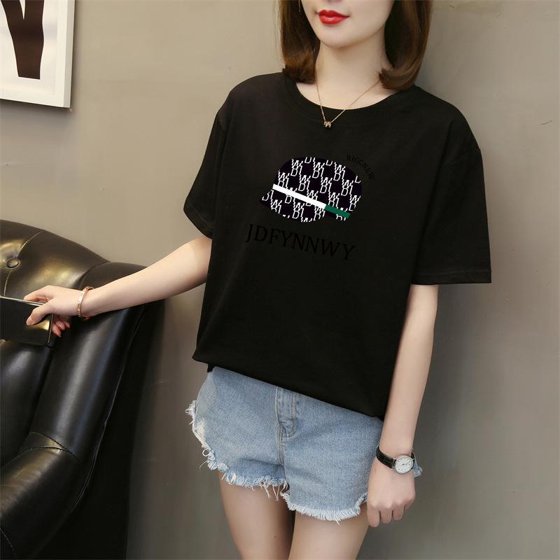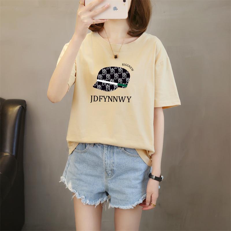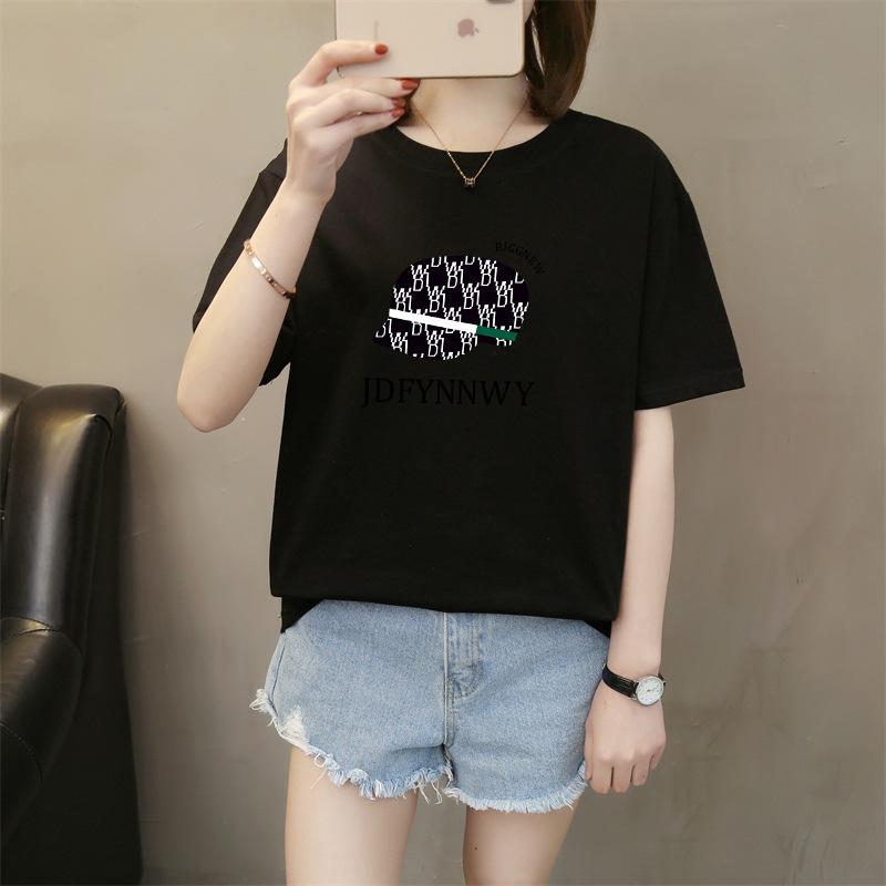 Dropshipping 2025 Verano Nuevo Camiseta de Manga Corta de Algodón Puro para Mujer Estilo Coreano Cuello Redondo Top Estampado Moderno Ropa de Mujer de Talla Grande