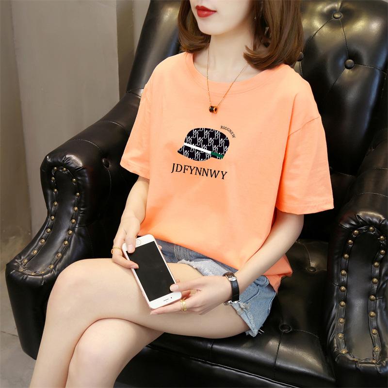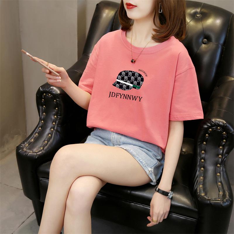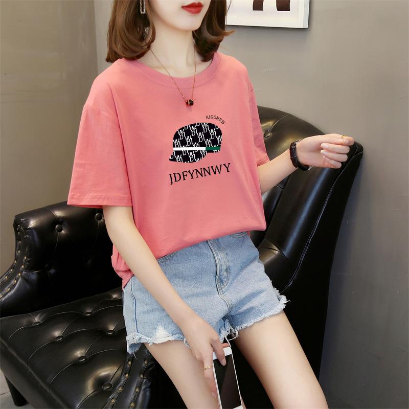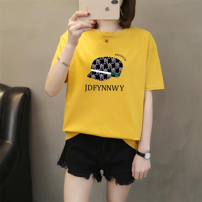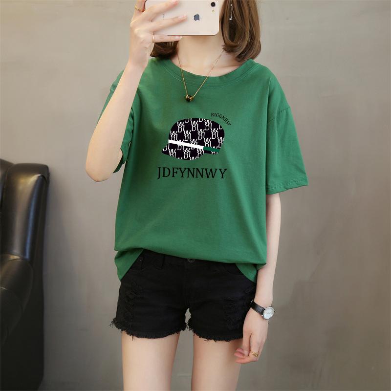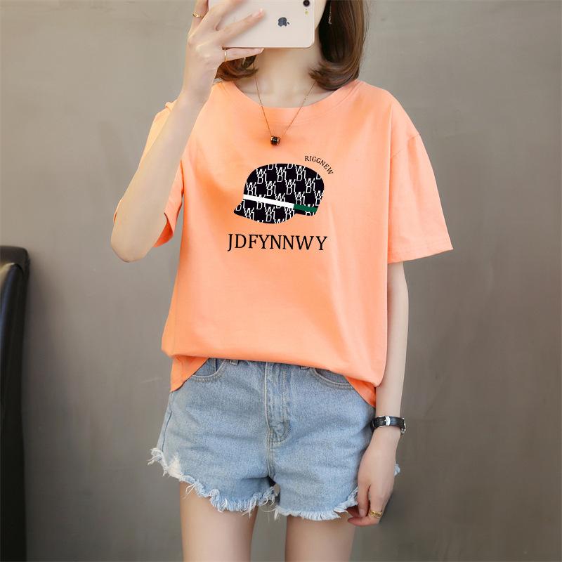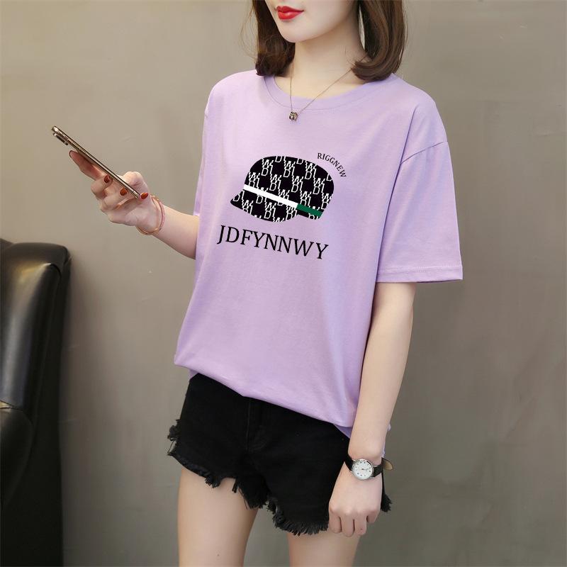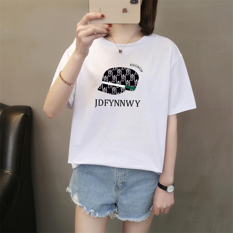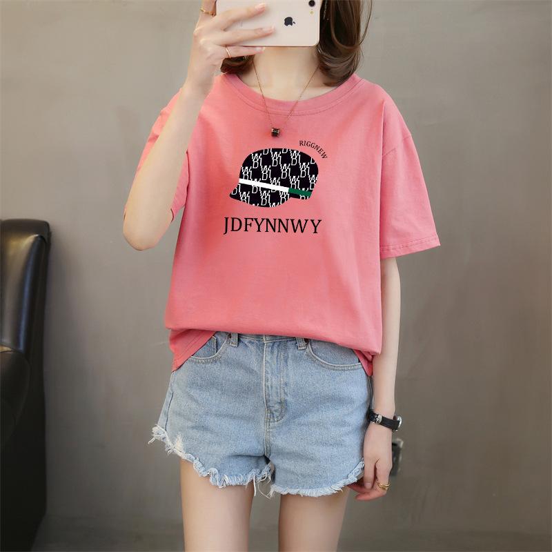 Dropshipping 2025 Verano Nuevo Camiseta de Manga Corta de Algodón Puro para Mujer Estilo Coreano Cuello Redondo Top Estampado Moderno Ropa de Mujer de Talla Grande