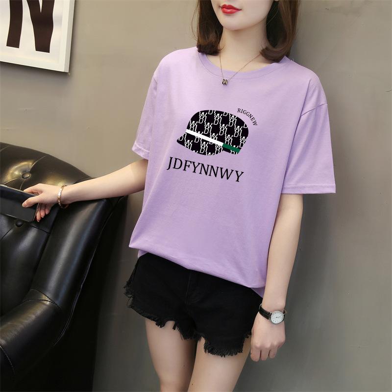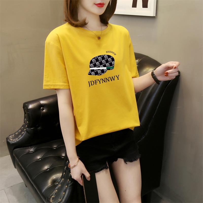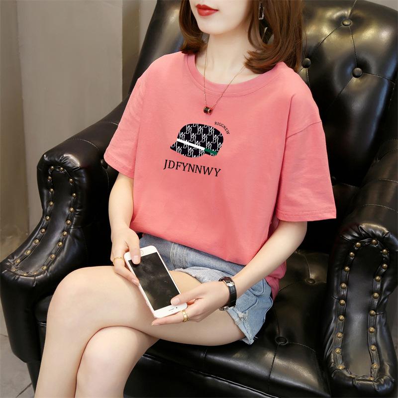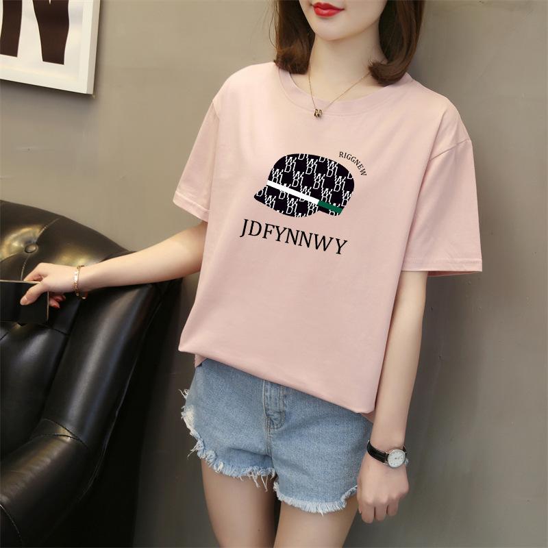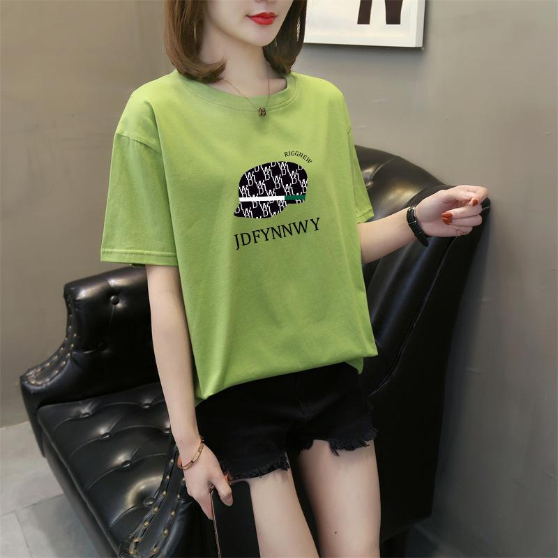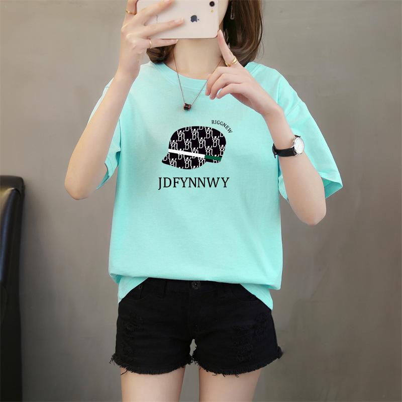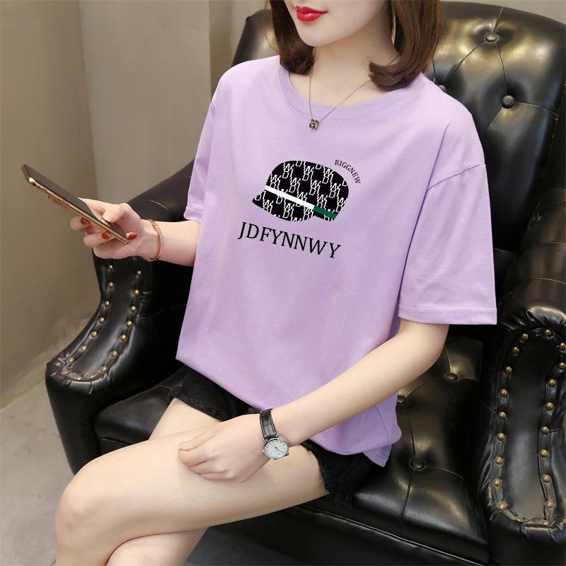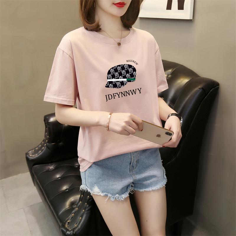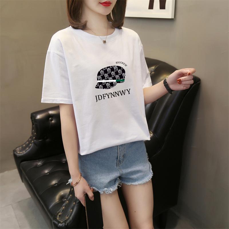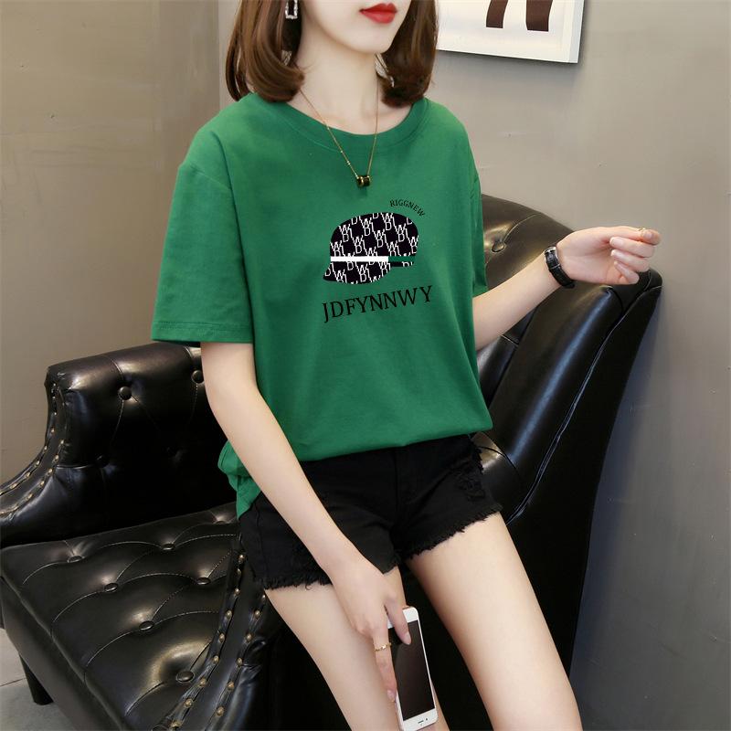 Dropshipping 2025 Verano Nuevo Camiseta de Manga Corta de Algodón Puro para Mujer Estilo Coreano Cuello Redondo Top Estampado Moderno Ropa de Mujer de Talla Grande