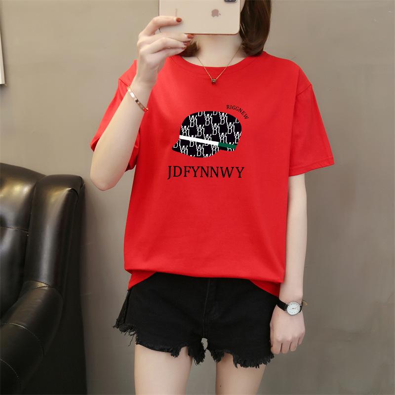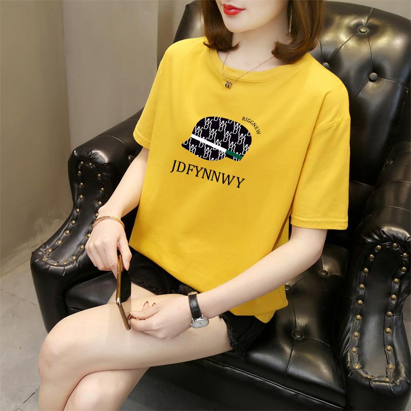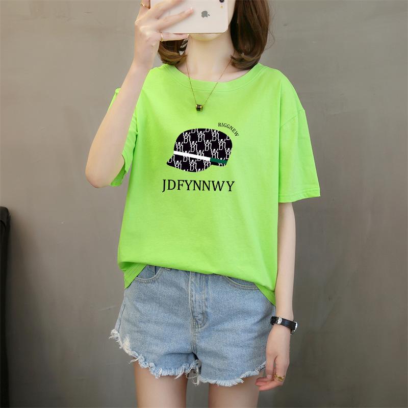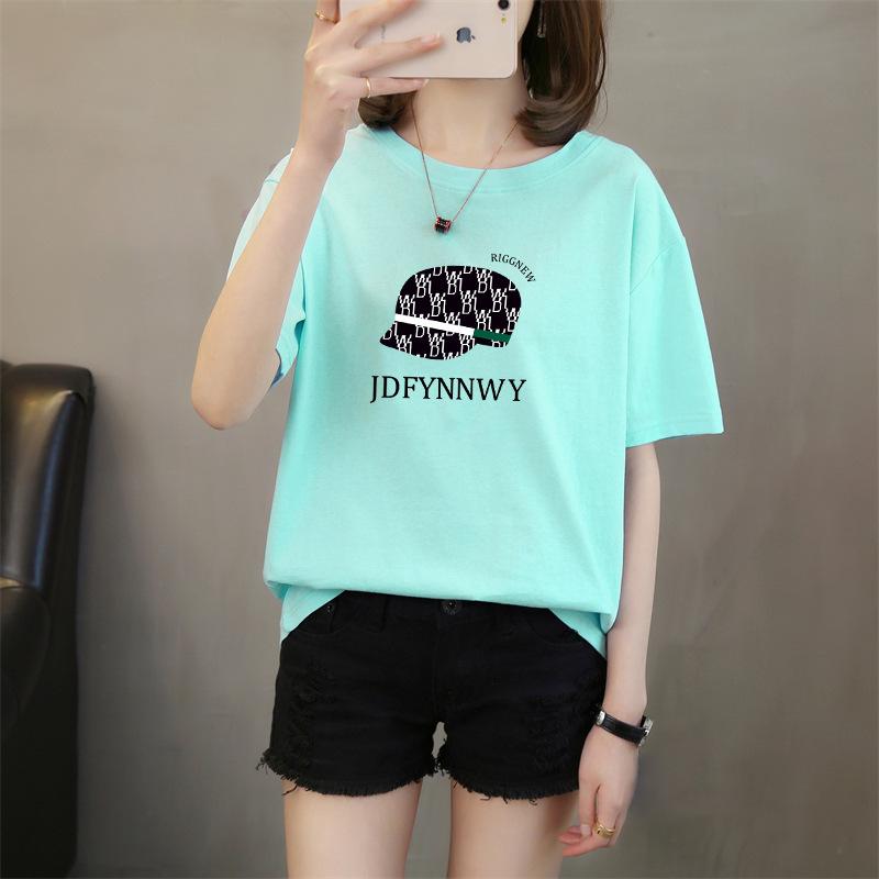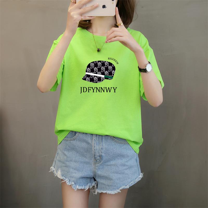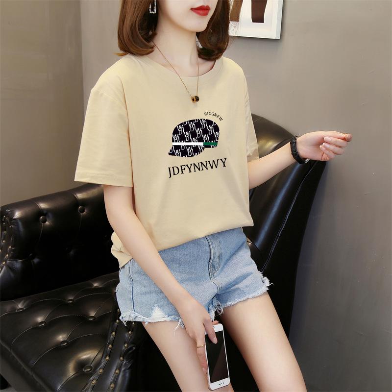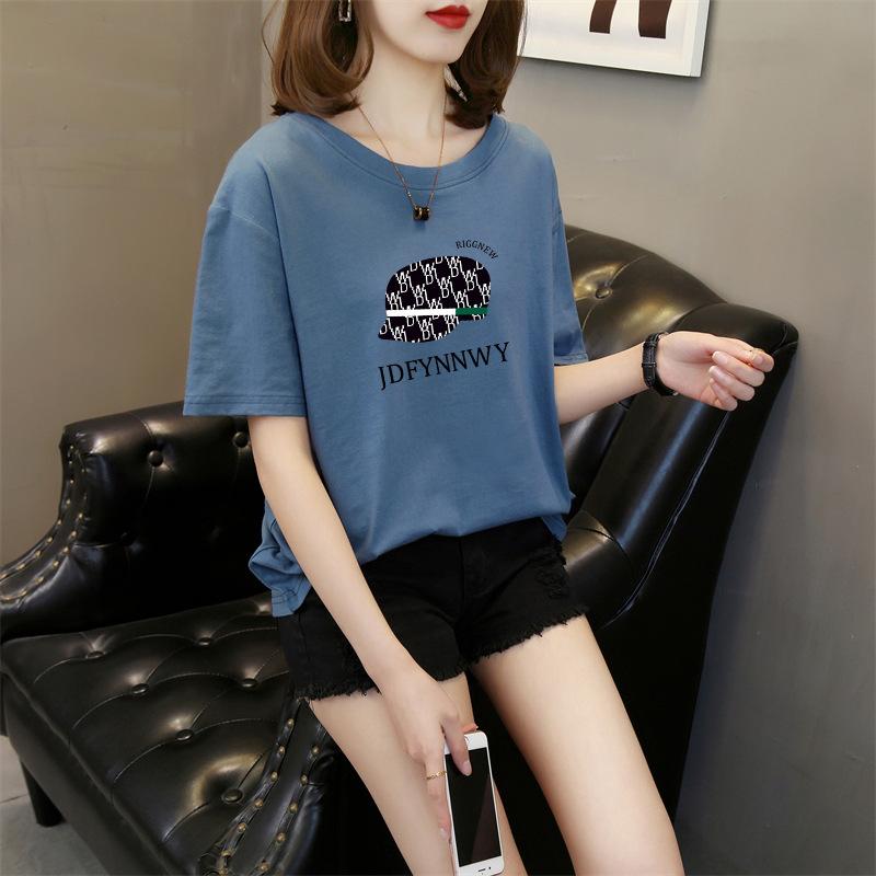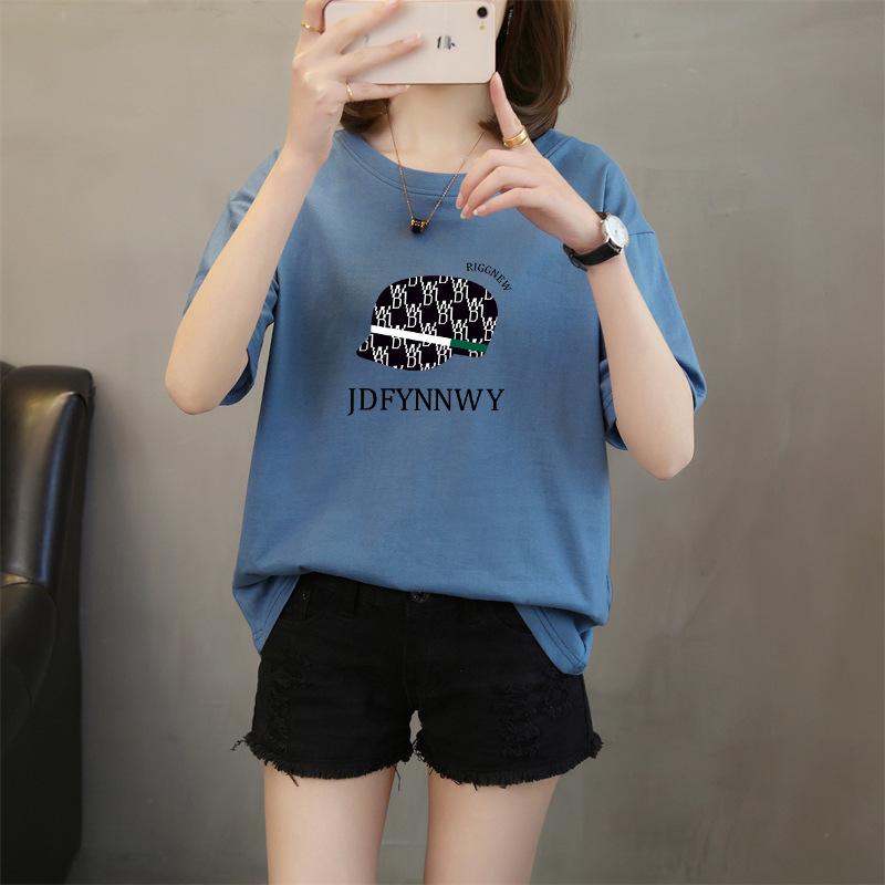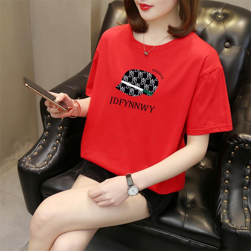 Dropshipping 2025 Verano Nuevo Camiseta de Manga Corta de Algodón Puro para Mujer Estilo Coreano Cuello Redondo Top Estampado Moderno Ropa de Mujer de Talla Grande