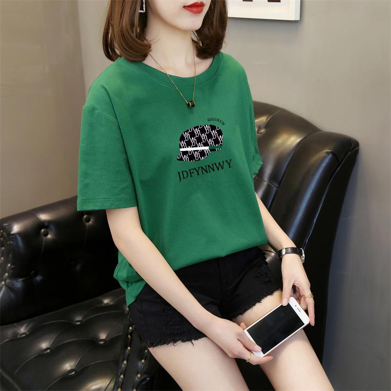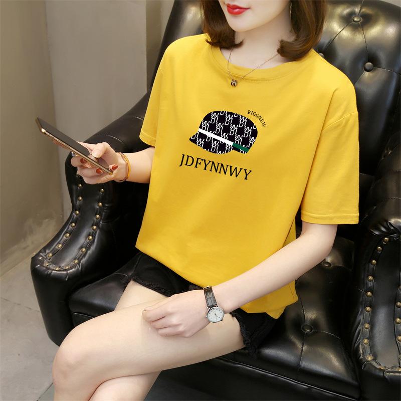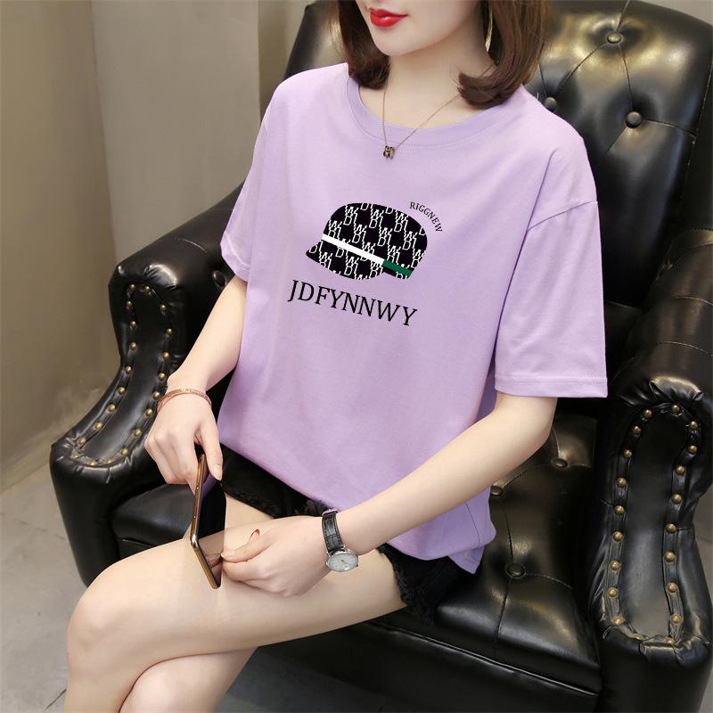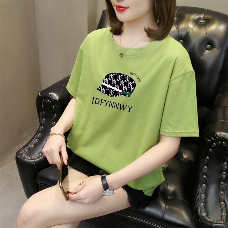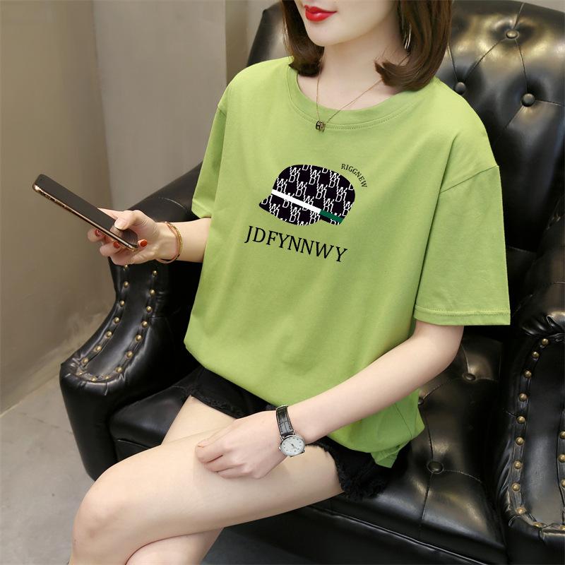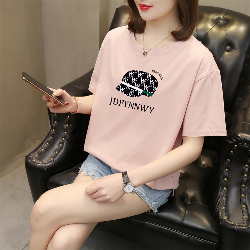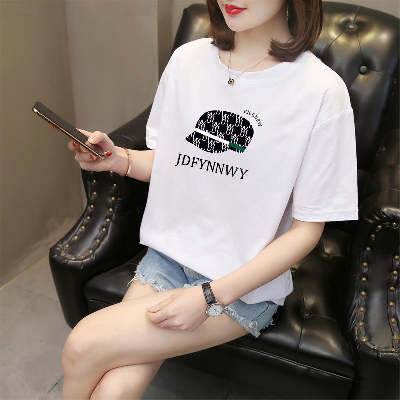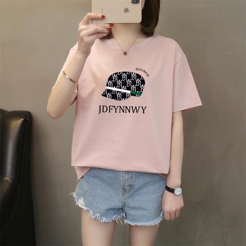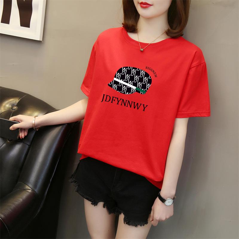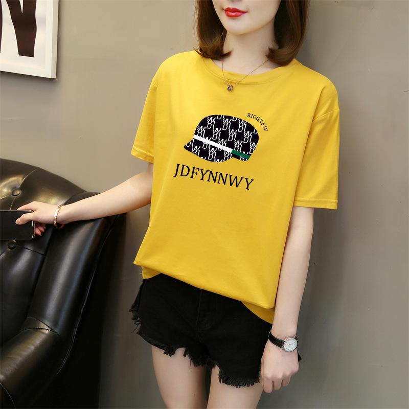 Dropshipping 2025 Verano Nuevo Camiseta de Manga Corta de Algodón Puro para Mujer Estilo Coreano Cuello Redondo Top Estampado Moderno Ropa de Mujer de Talla Grande