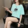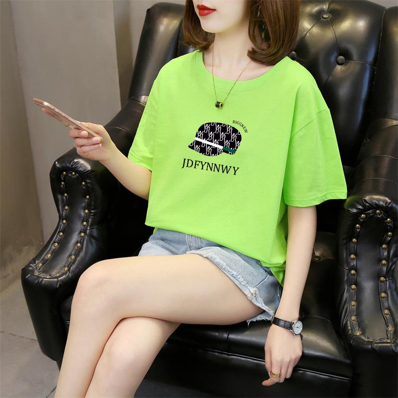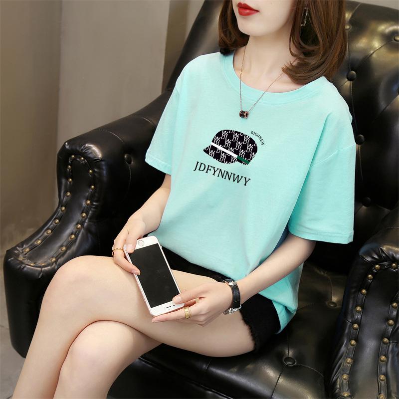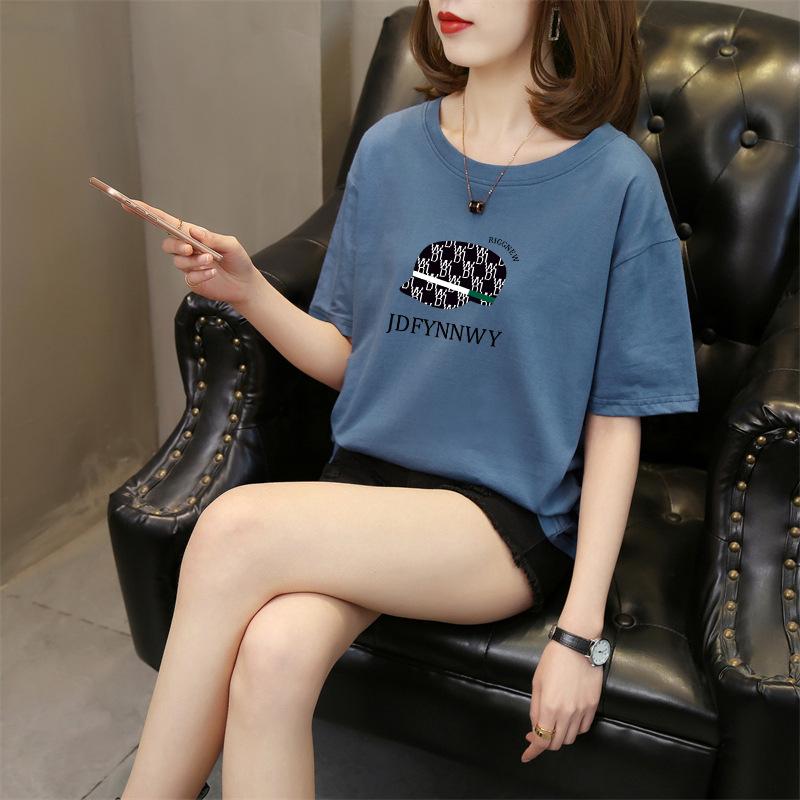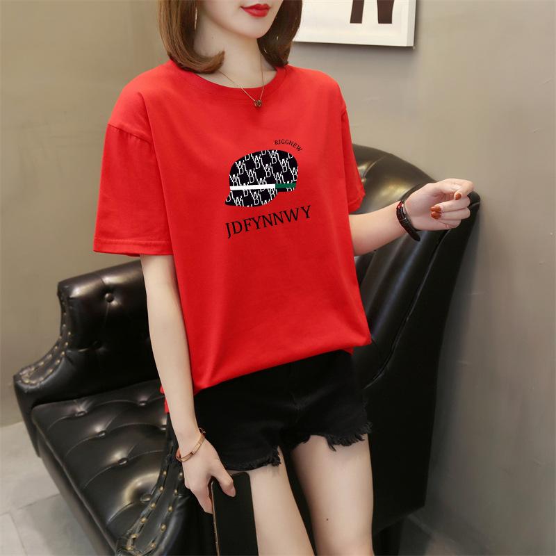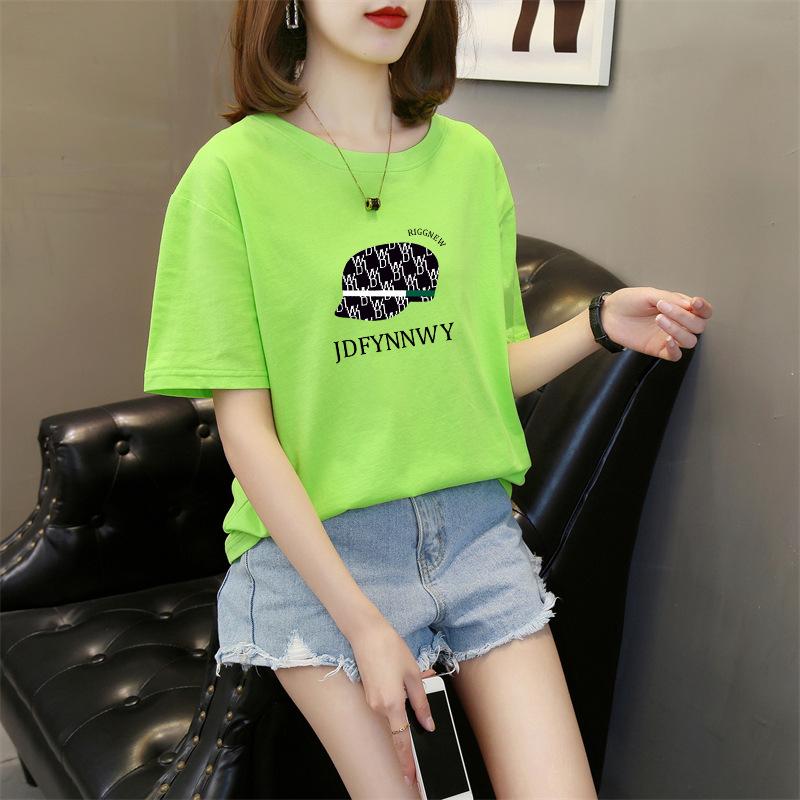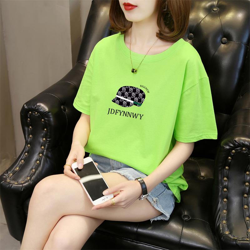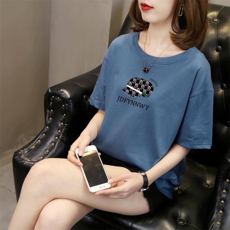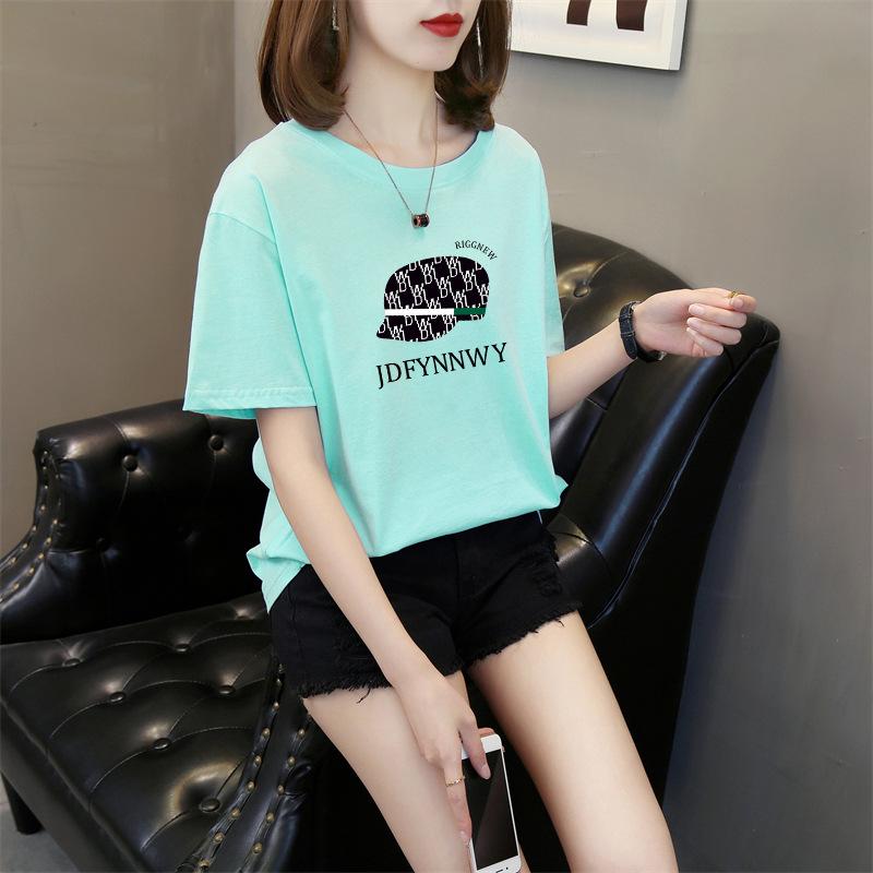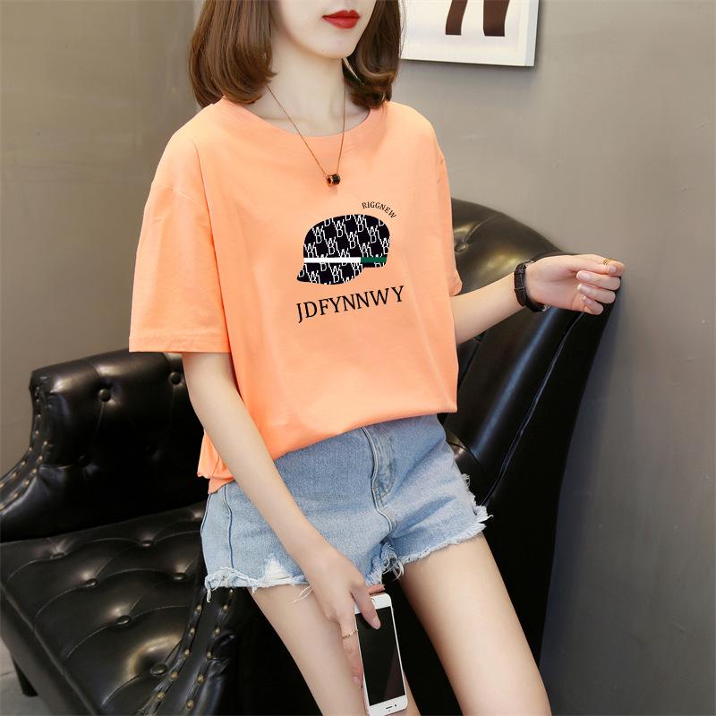 Dropshipping 2025 Verano Nuevo Camiseta de Manga Corta de Algodón Puro para Mujer Estilo Coreano Cuello Redondo Top Estampado Moderno Ropa de Mujer de Talla Grande