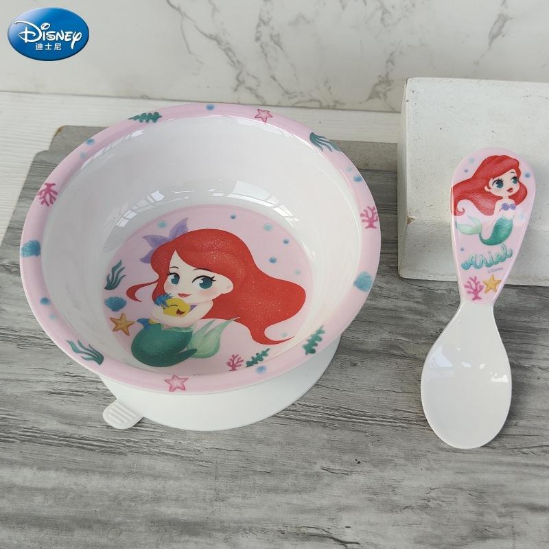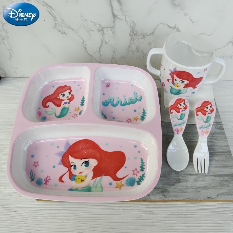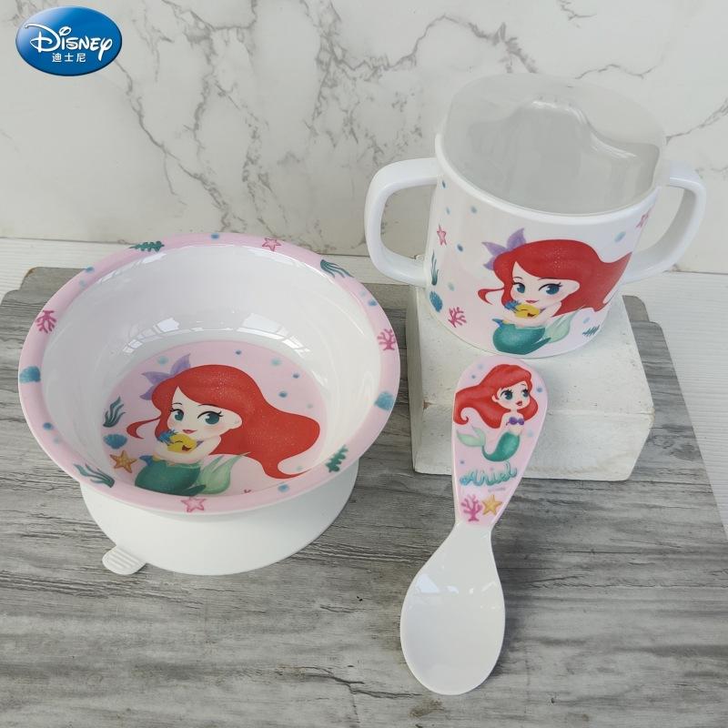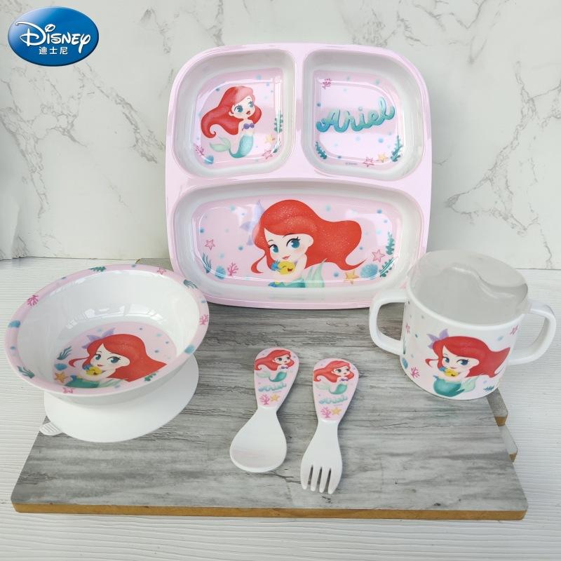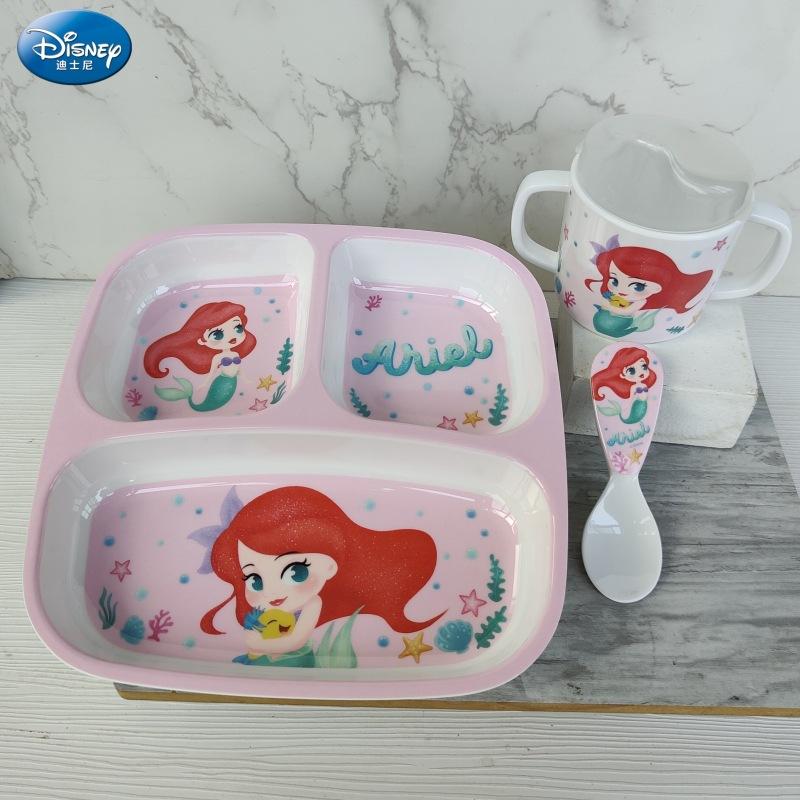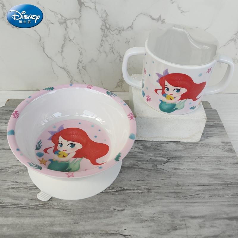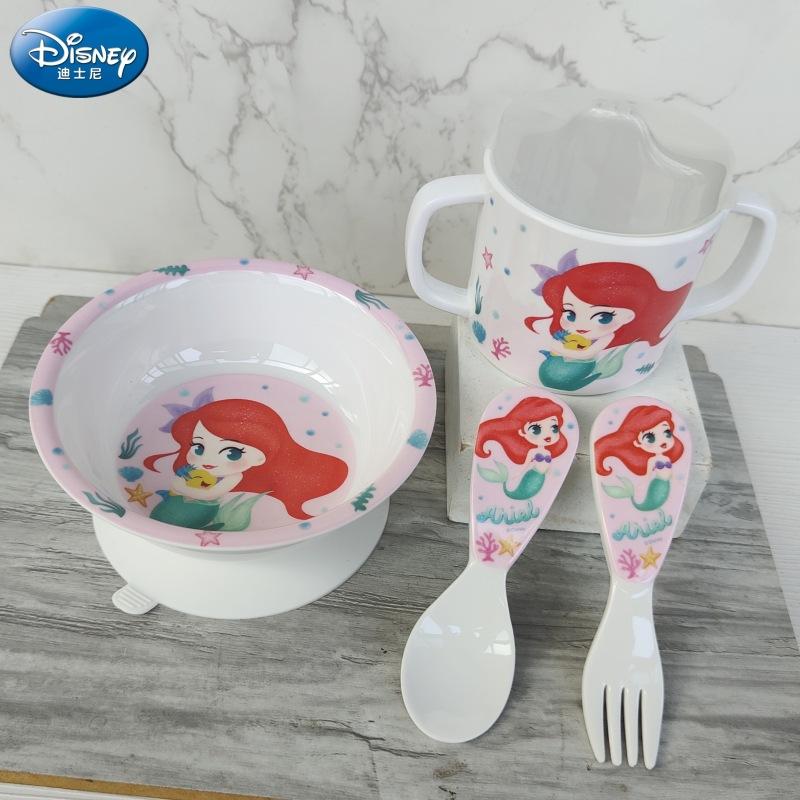 Vajilla de Melamina para Bebé Disney Plato Tazón Cuchara Vaso para Agua Set para Niño Pequeño Resistente a Caídas Aislado Complementario Vajilla Sirena