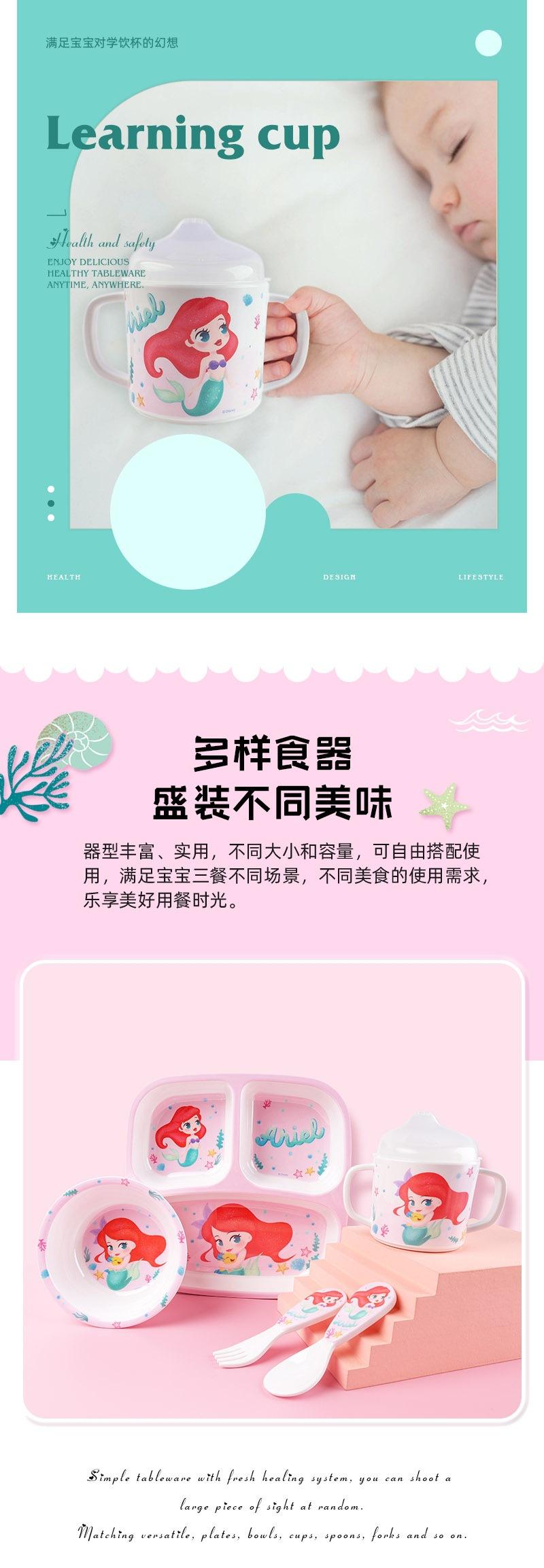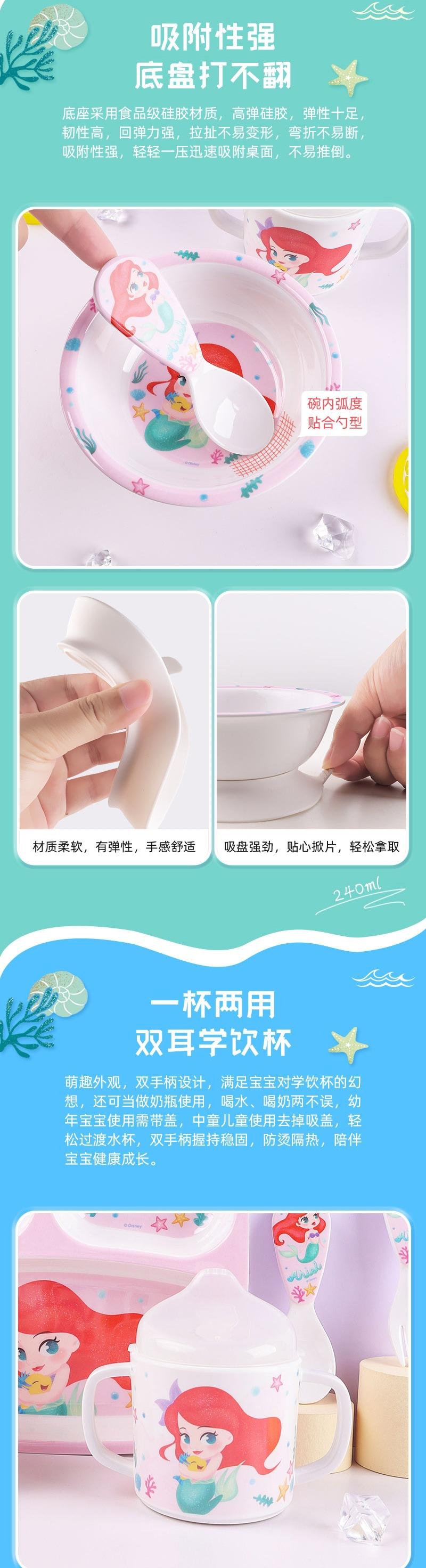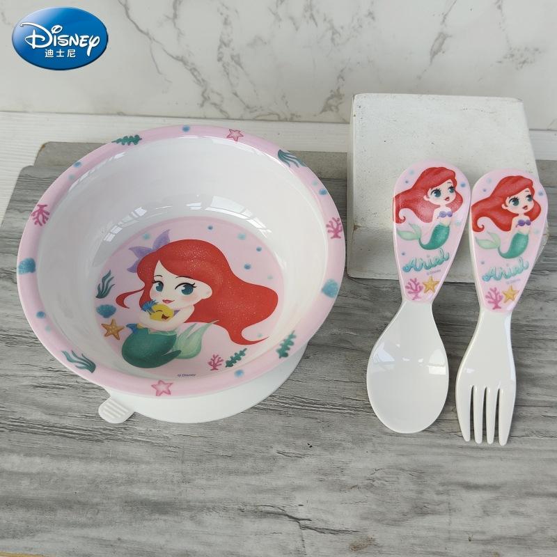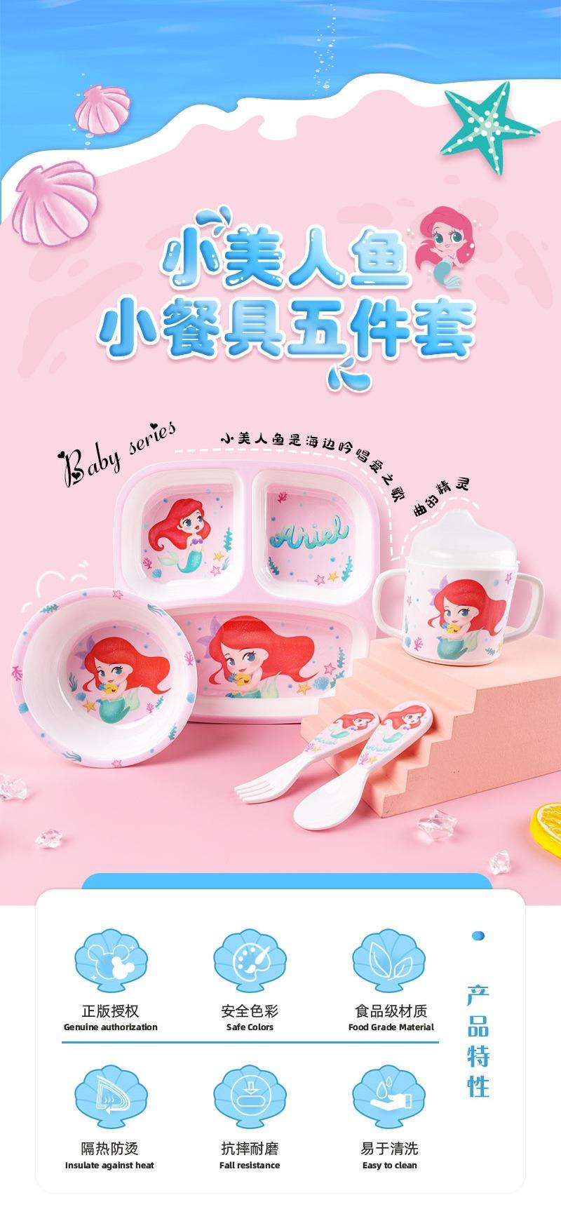 Vajilla de Melamina para Bebé Disney Plato Tazón Cuchara Vaso para Agua Set para Niño Pequeño Resistente a Caídas Aislado Complementario Vajilla Sirena