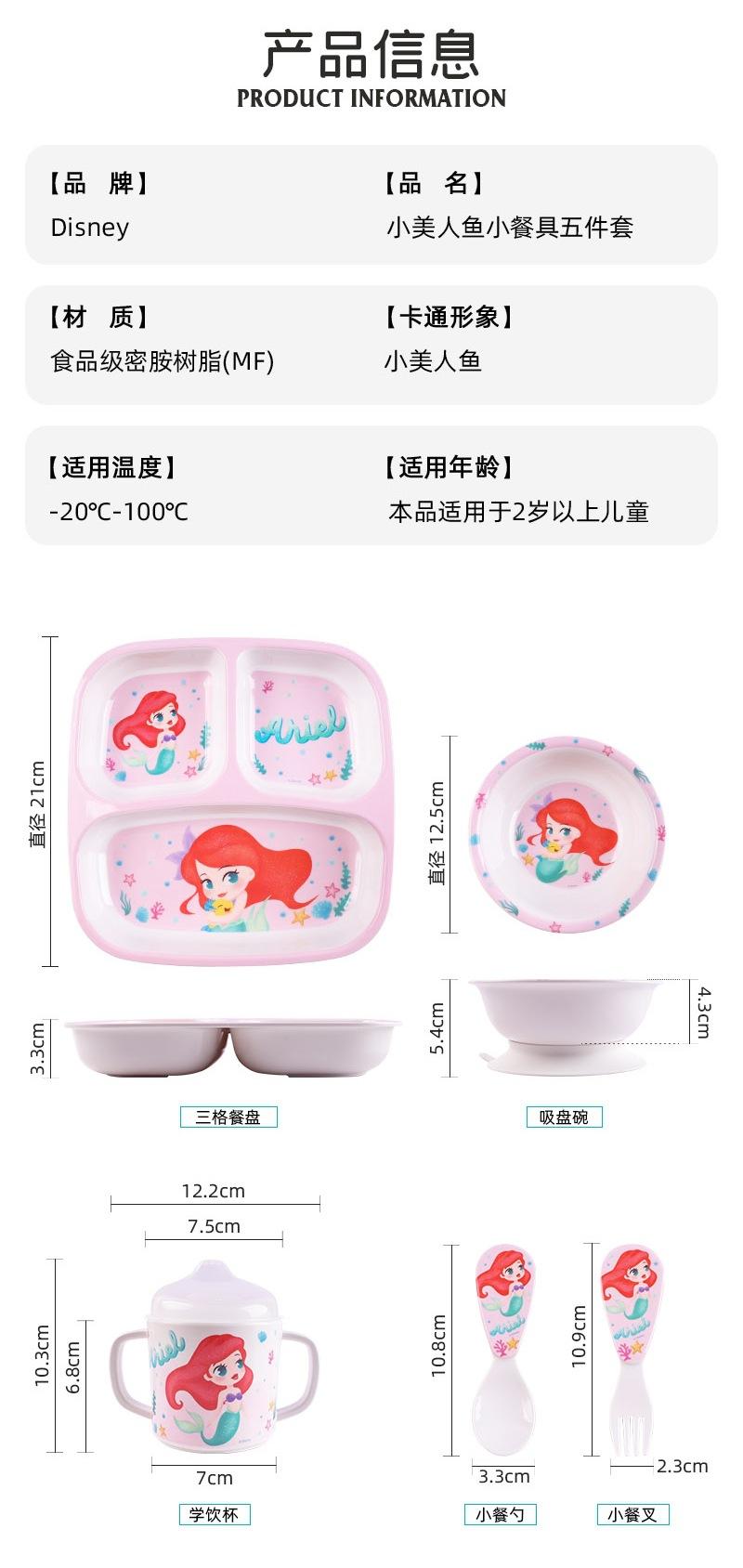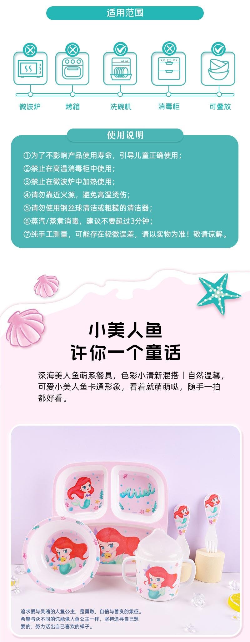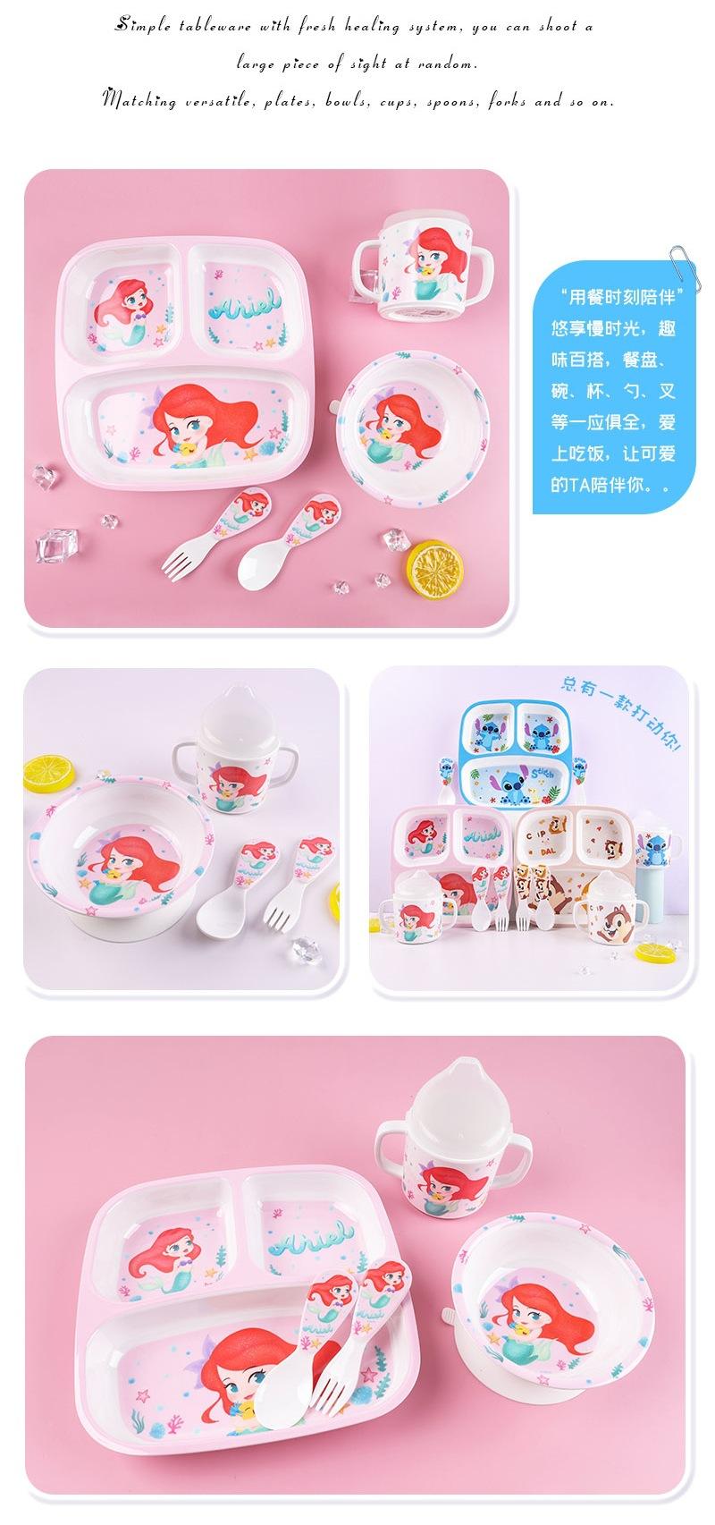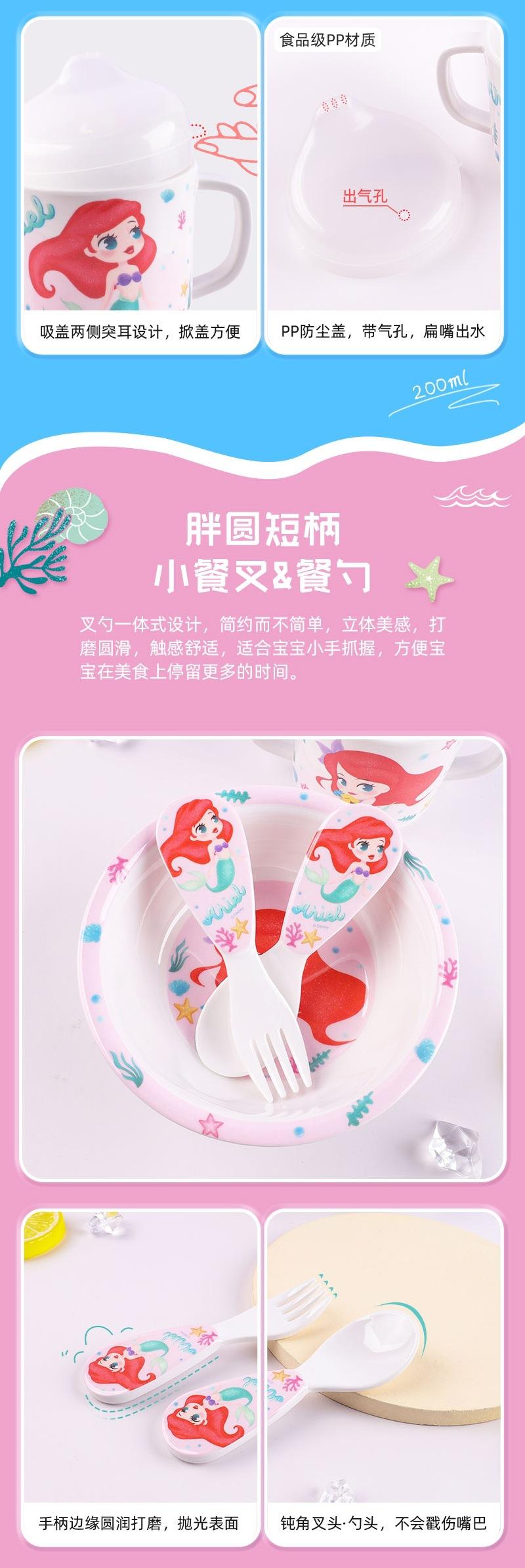 Vajilla de Melamina para Bebé Disney Plato Tazón Cuchara Vaso para Agua Set para Niño Pequeño Resistente a Caídas Aislado Complementario Vajilla Sirena