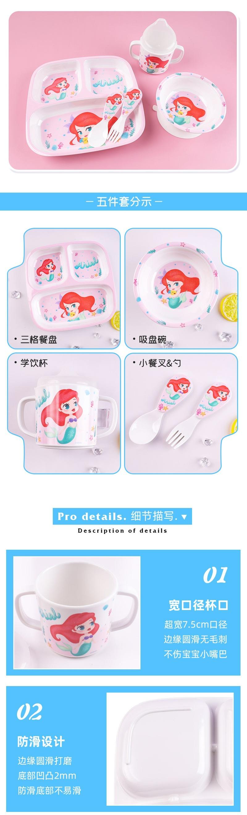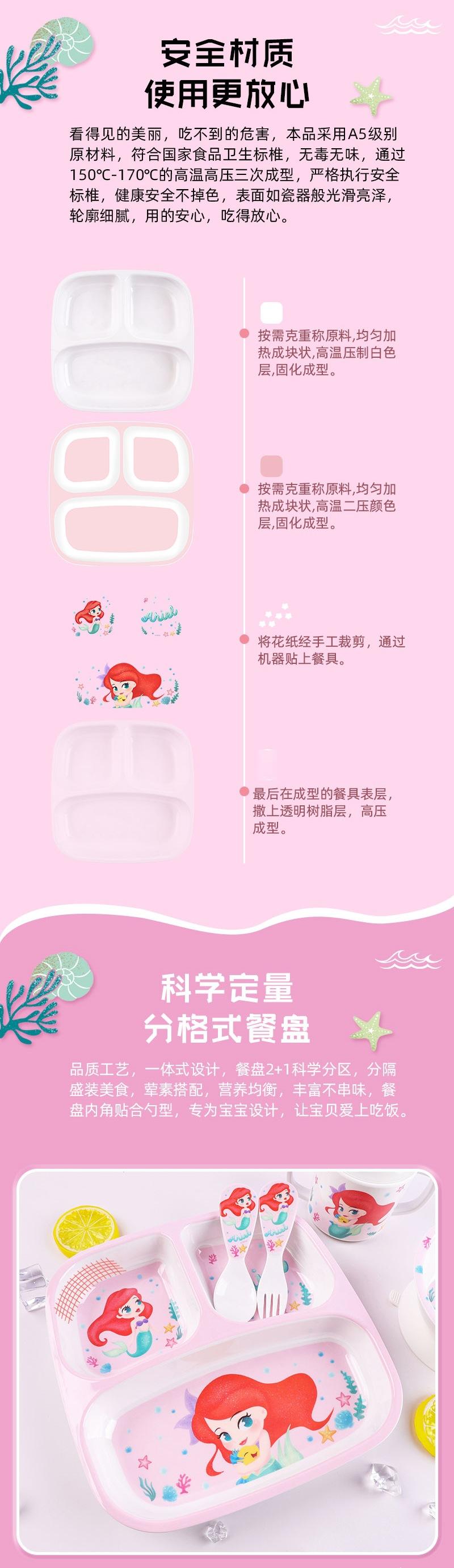Little Mermaid square three-grid plate-DW23010Y, Little Mermaid sucker bowl-DW23012Y, Little Beauty binaural d...