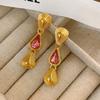 Pendientes y collar para dama con diseño creativo de aleación geométrica irregular de color cuadrado con diseño hueco y gota