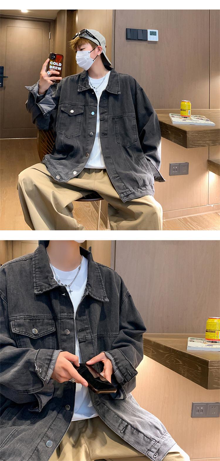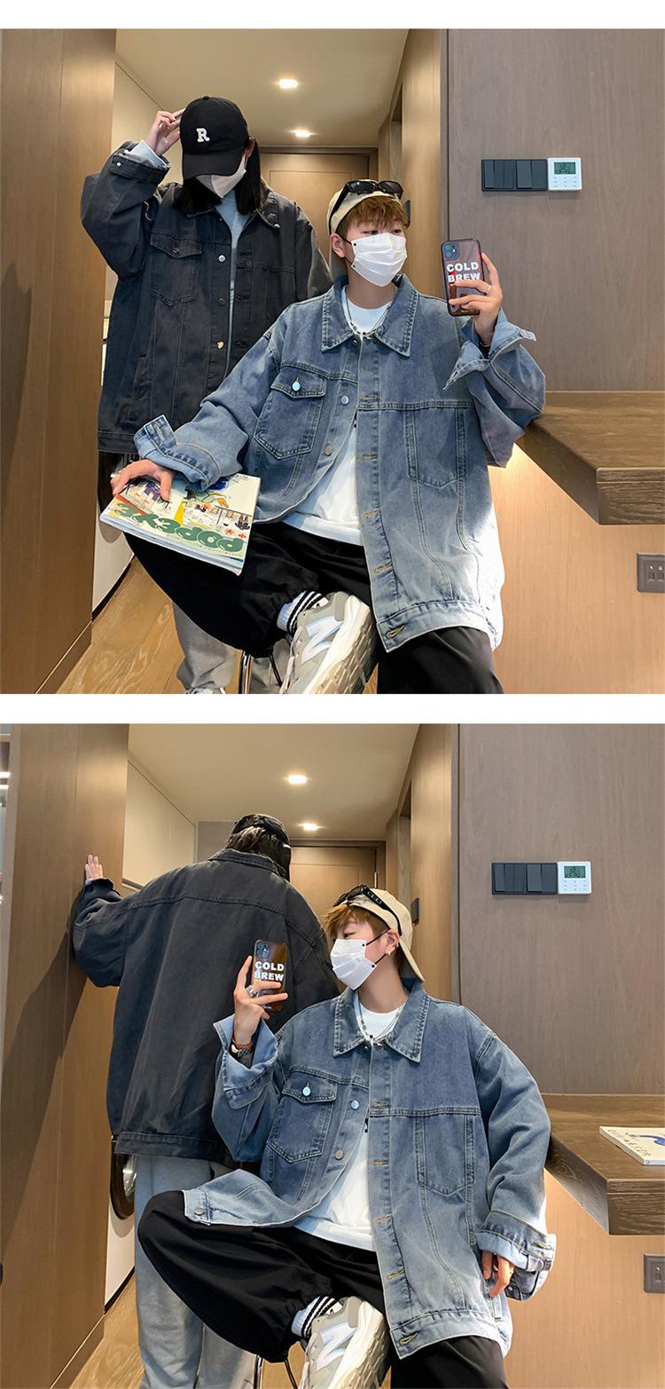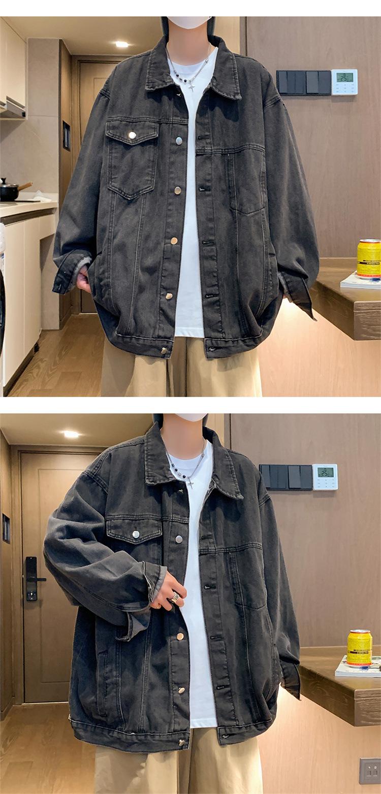 Abrigo vaquero retro americano para hombre, primavera y otoño, holgado, de alta gama, marca de moda Pu Shuai, chaqueta de trabajo de calle de gran tamaño