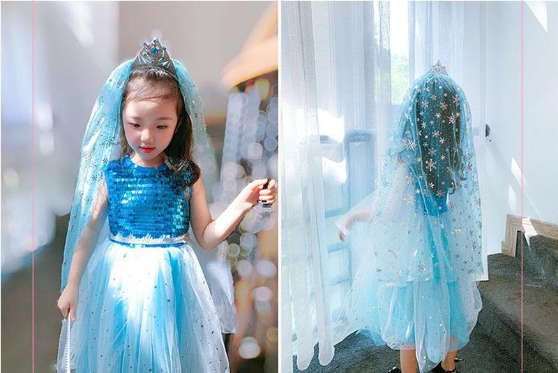 Accesorios para el Cabello de Princesa Congelada Set de Varita Mágica Velo Largo para Actuación de Niñas Corona Diadema Regalo de Cumpleaños Joyería para Niños