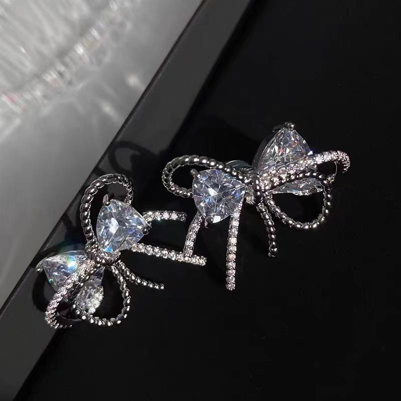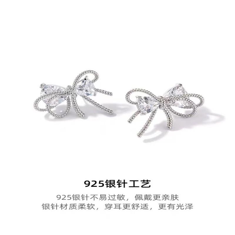 Compra Pendientes de plata S925 con forma de aguja y circonitas, elegantes y modernos, para mujer, con un diseño de nicho ligero y lujoso. al por mayor en Joom.pro