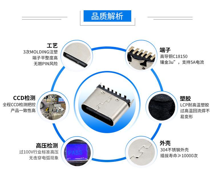 Asiento hembra TIPO C 6P vertical SMT tipo placa de cuerpo corto con cubierta antipolvo para carga
