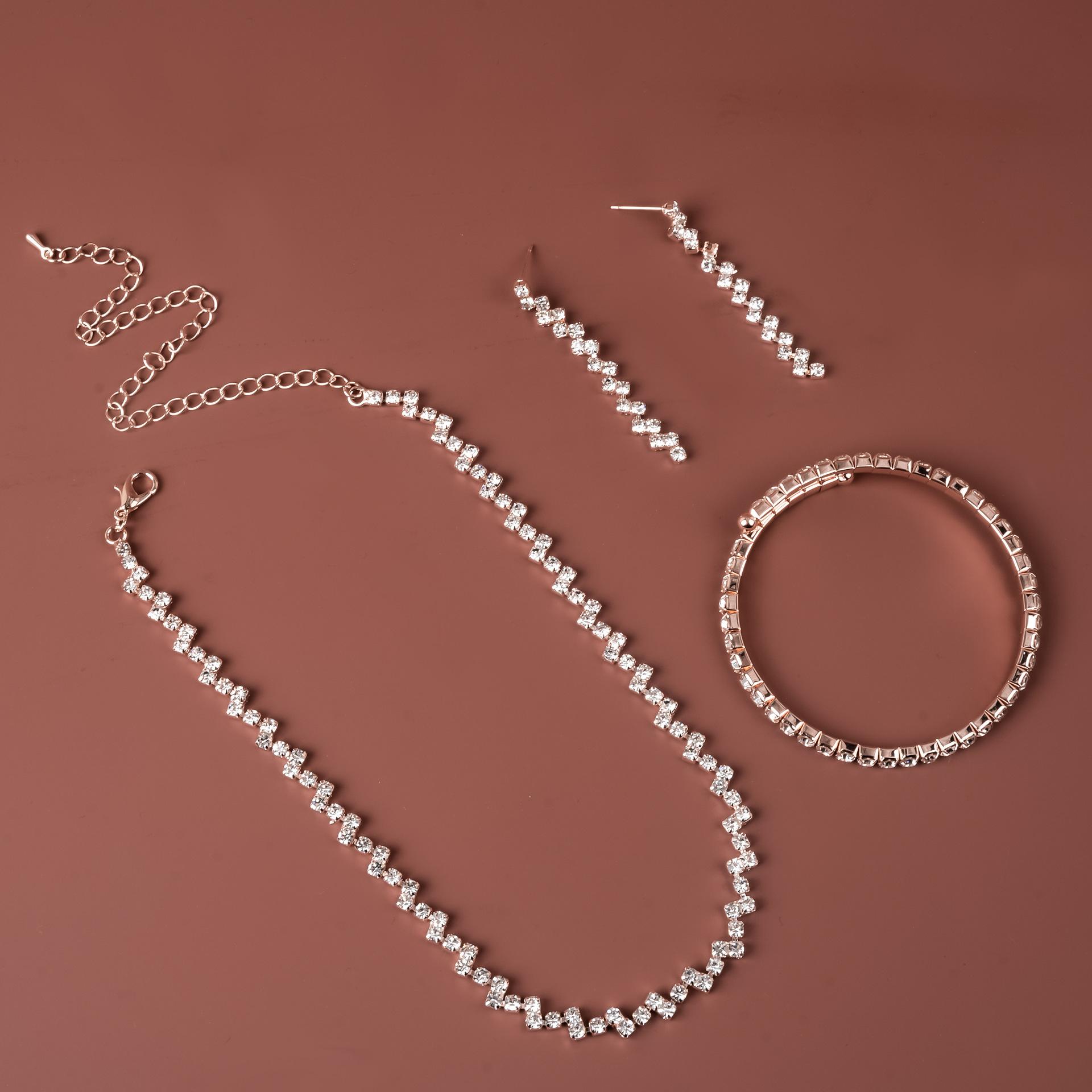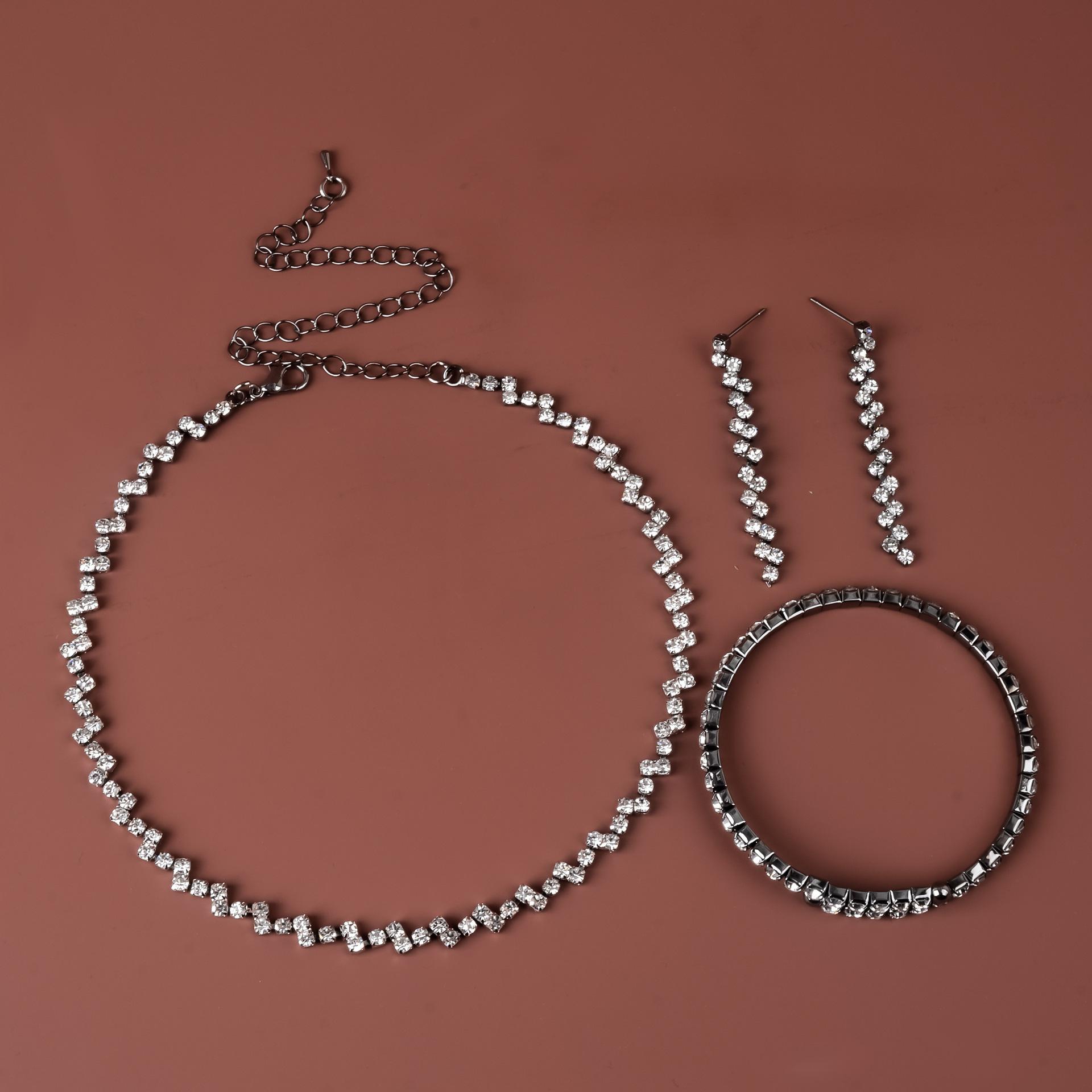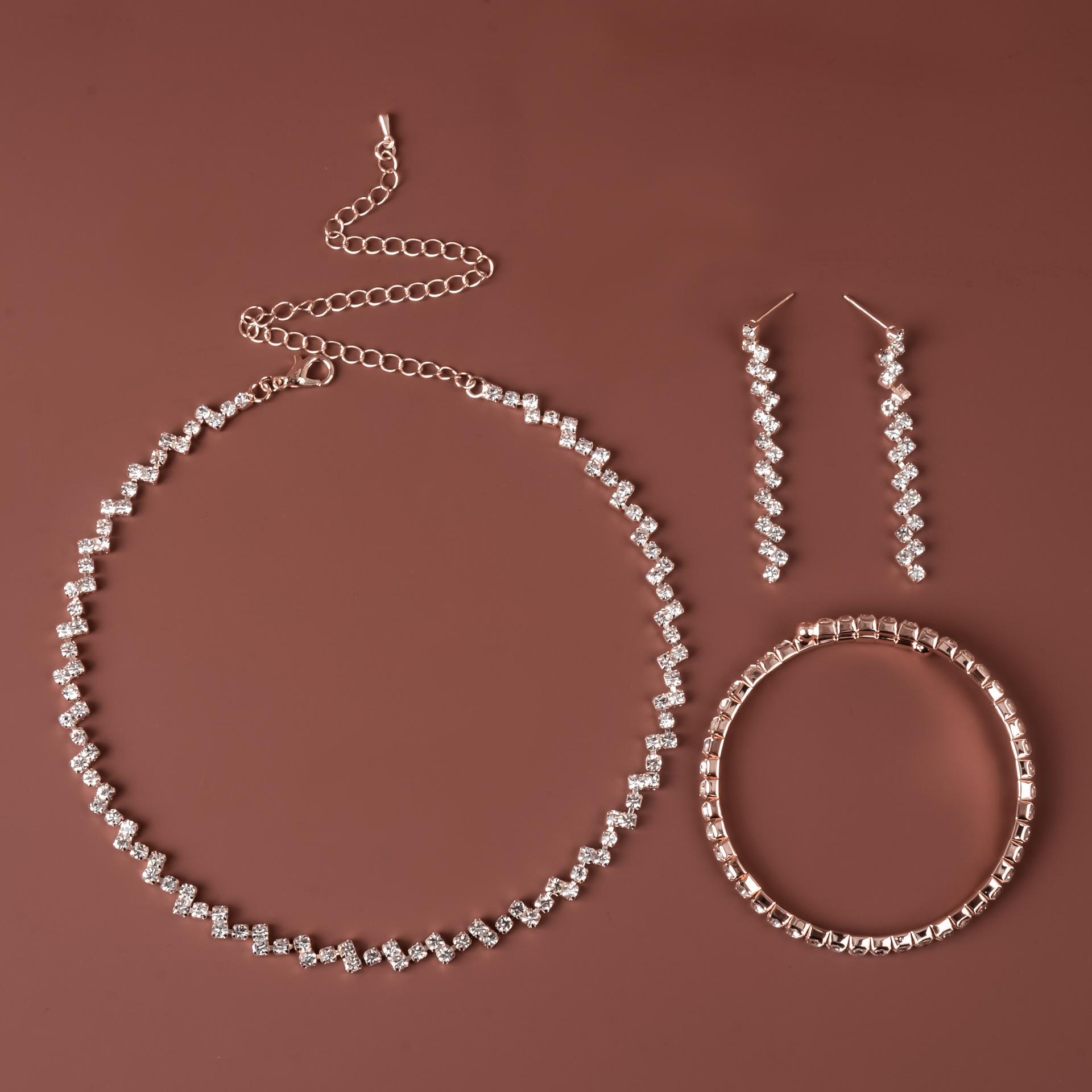Nuevo conjunto de tres piezas de collar y pulsera con diamantes de imitación, joyería popular de Oriente Medio, accesorios de boda a la moda que combinan con todo. |