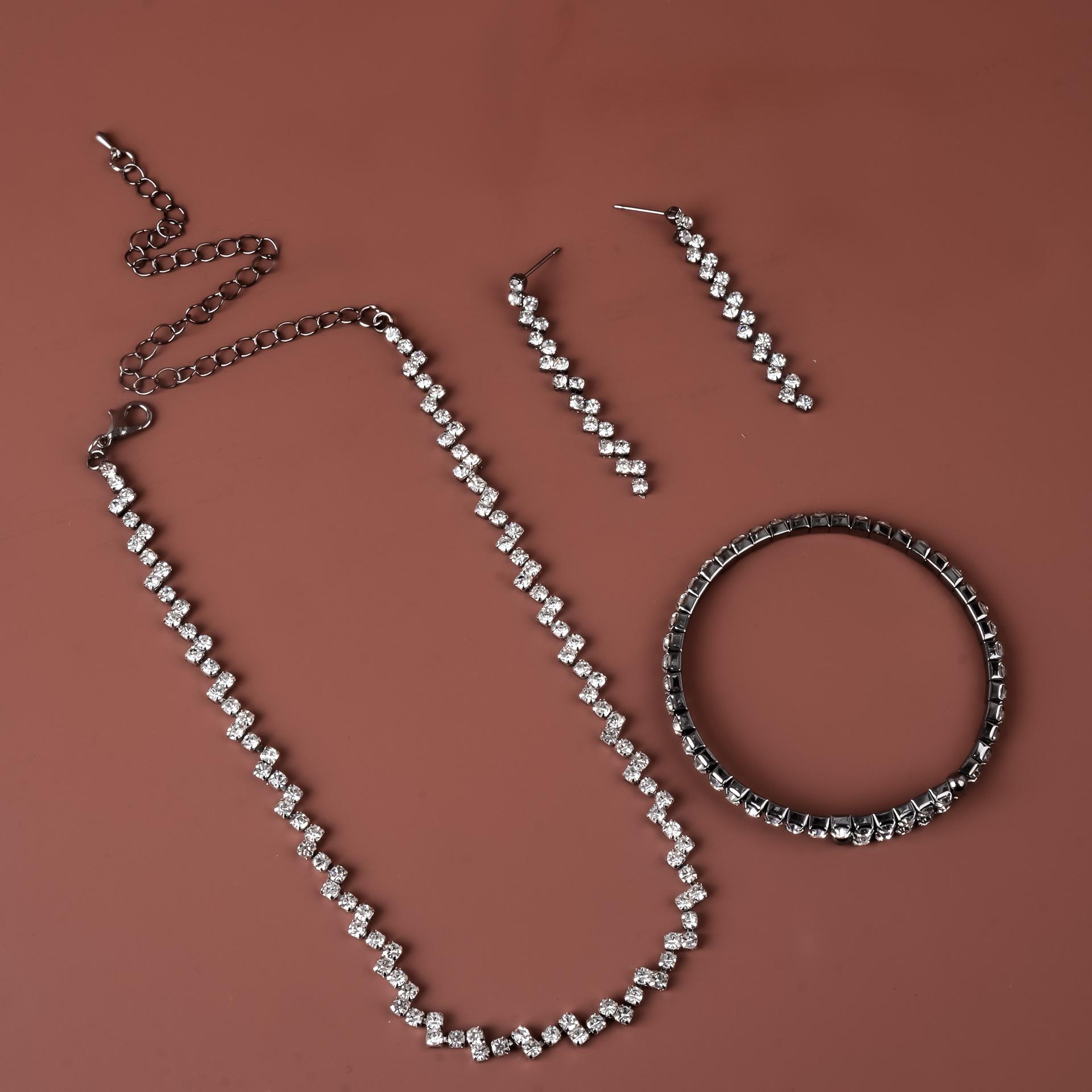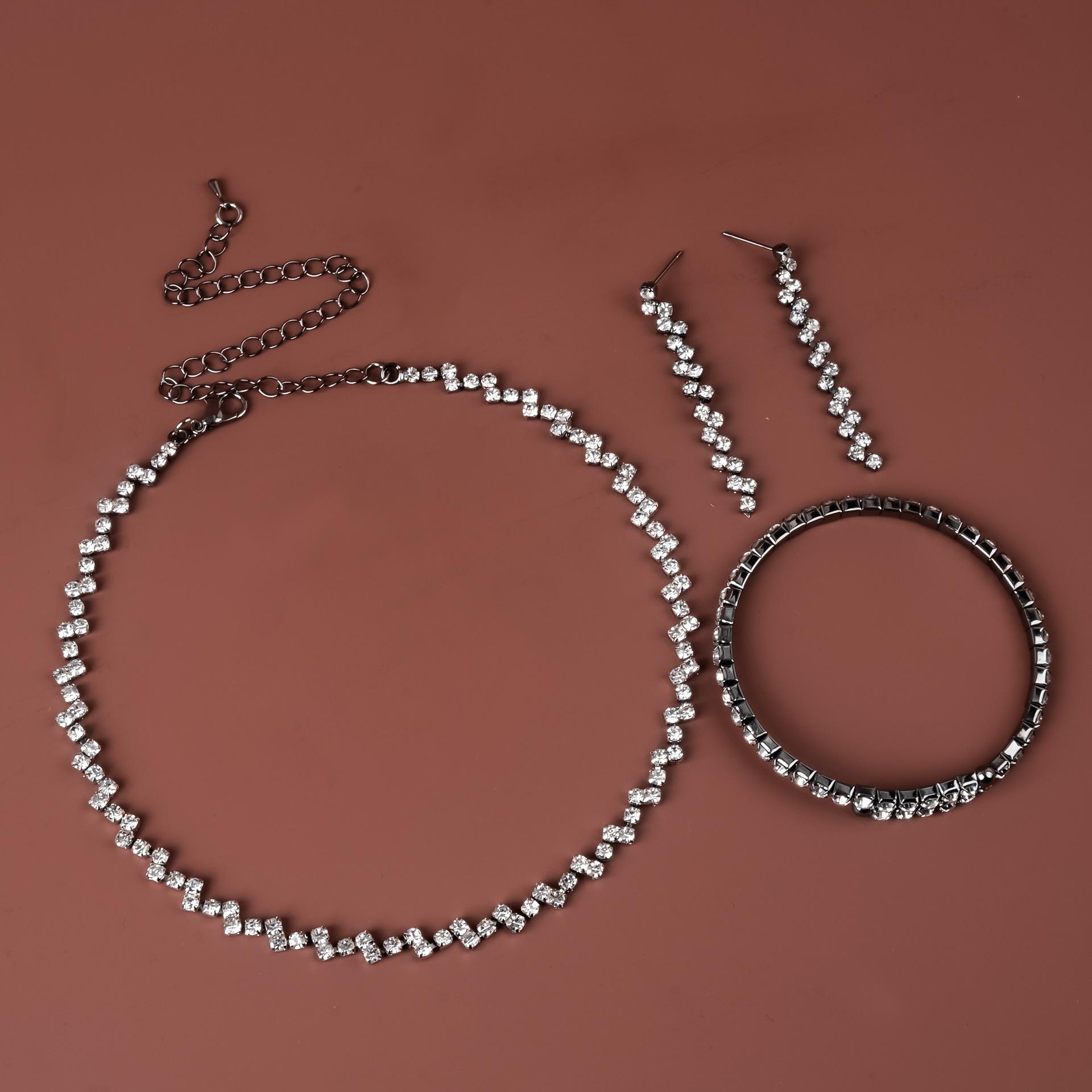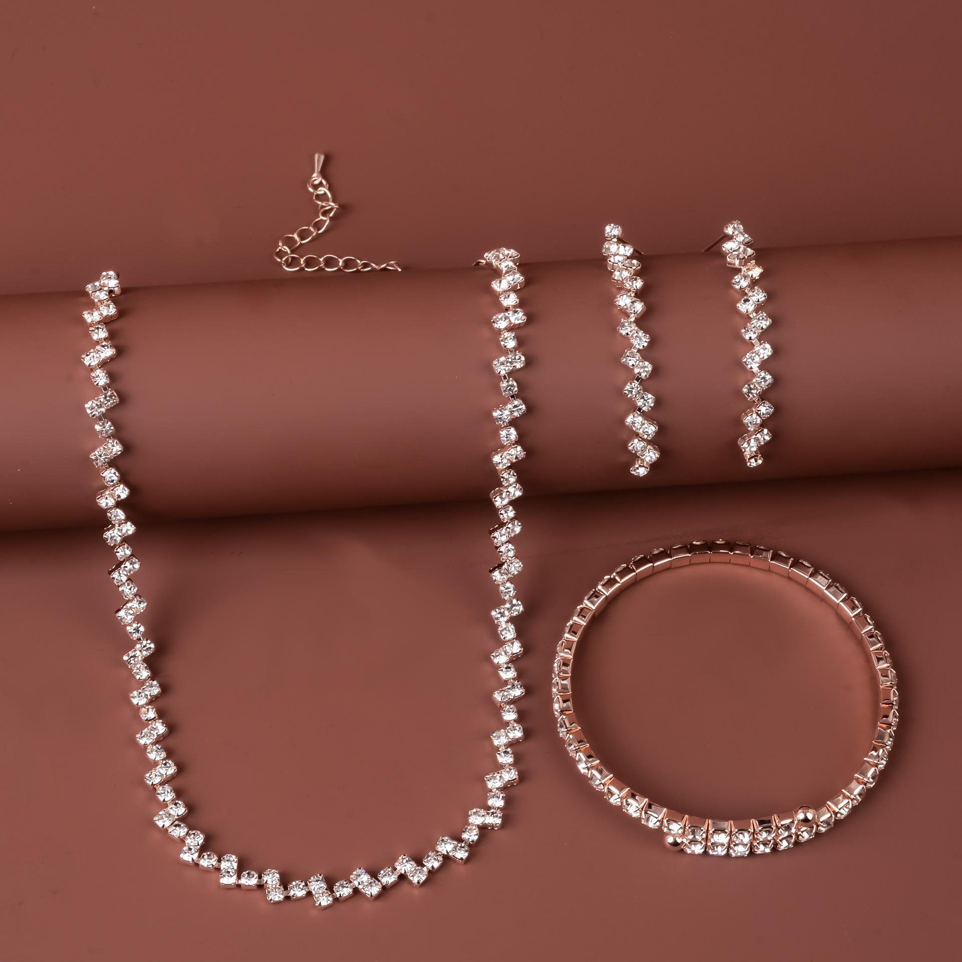 Nuevo conjunto de tres piezas de collar y pulsera con diamantes de imitación, joyería popular de Oriente Medio, accesorios de boda a la moda que combinan con todo. |