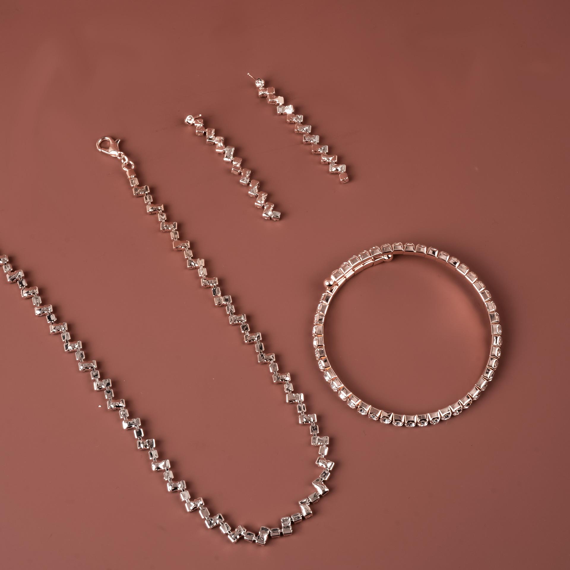 Nuevo conjunto de collar de tres piezas con diamantes cuadrados, joyería popular de Oriente Medio, estilo fino, accesorios de boda versátiles, venta directa de fábrica |