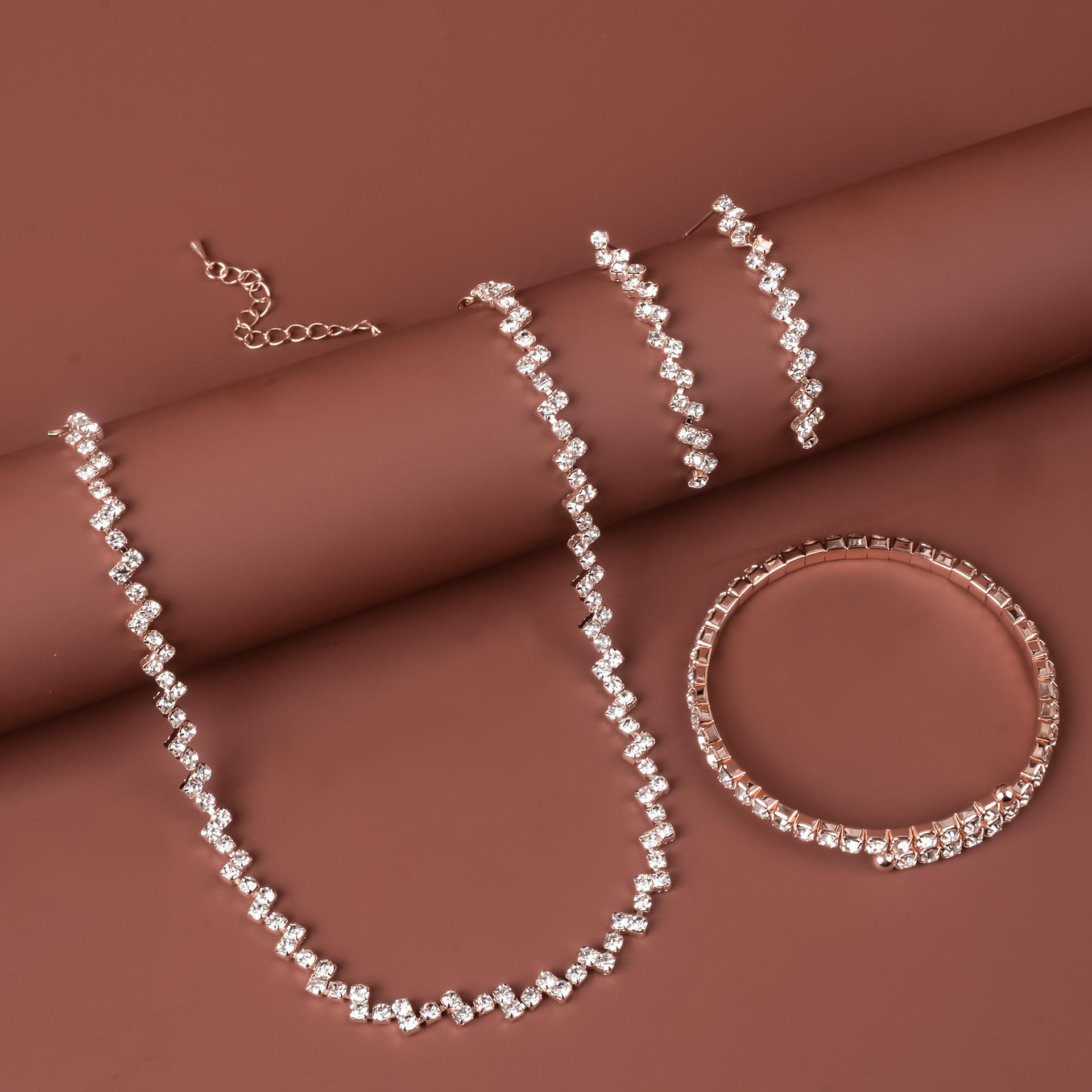 | Collar de diamantes de imitación romanos de gran venta transfronteriza para mujeres, joyería para fiesta de bodas, joyería de novia de dos piezas al por mayor |