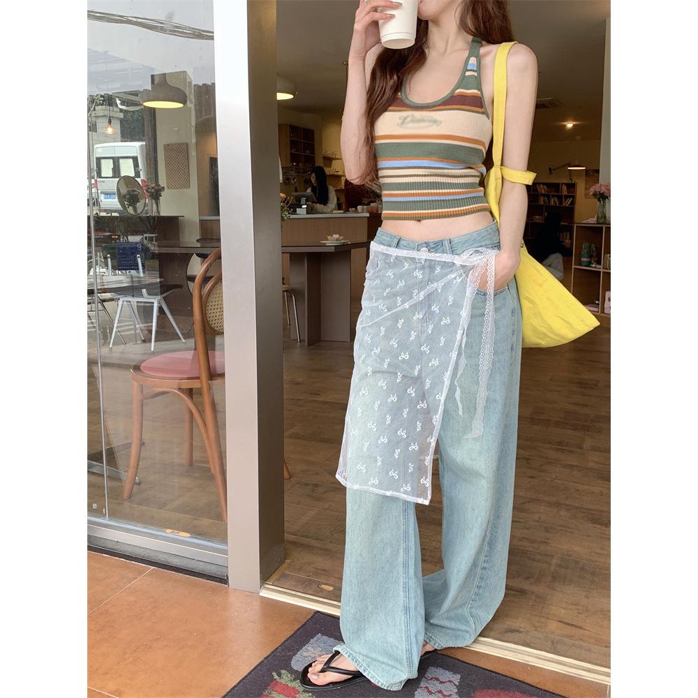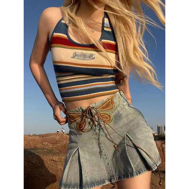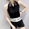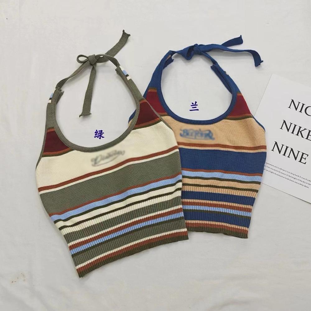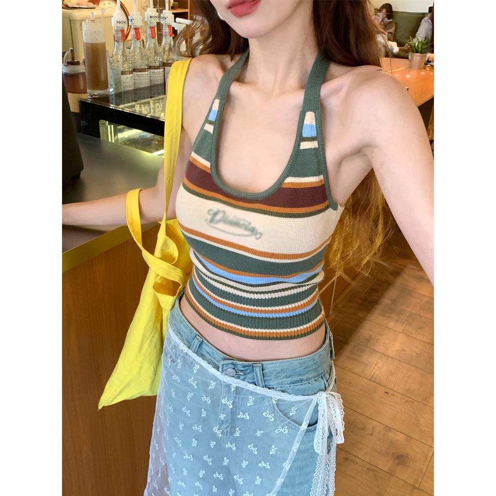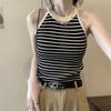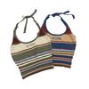 Camisola halter de punto de canalé con rayas de color contrastante americano para mujer Verano 2024 Ajustada Top sin mangas Spice Girls