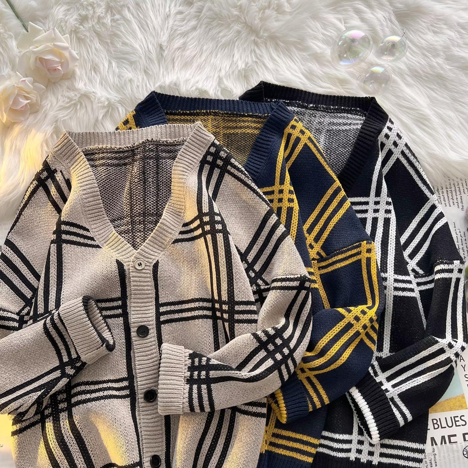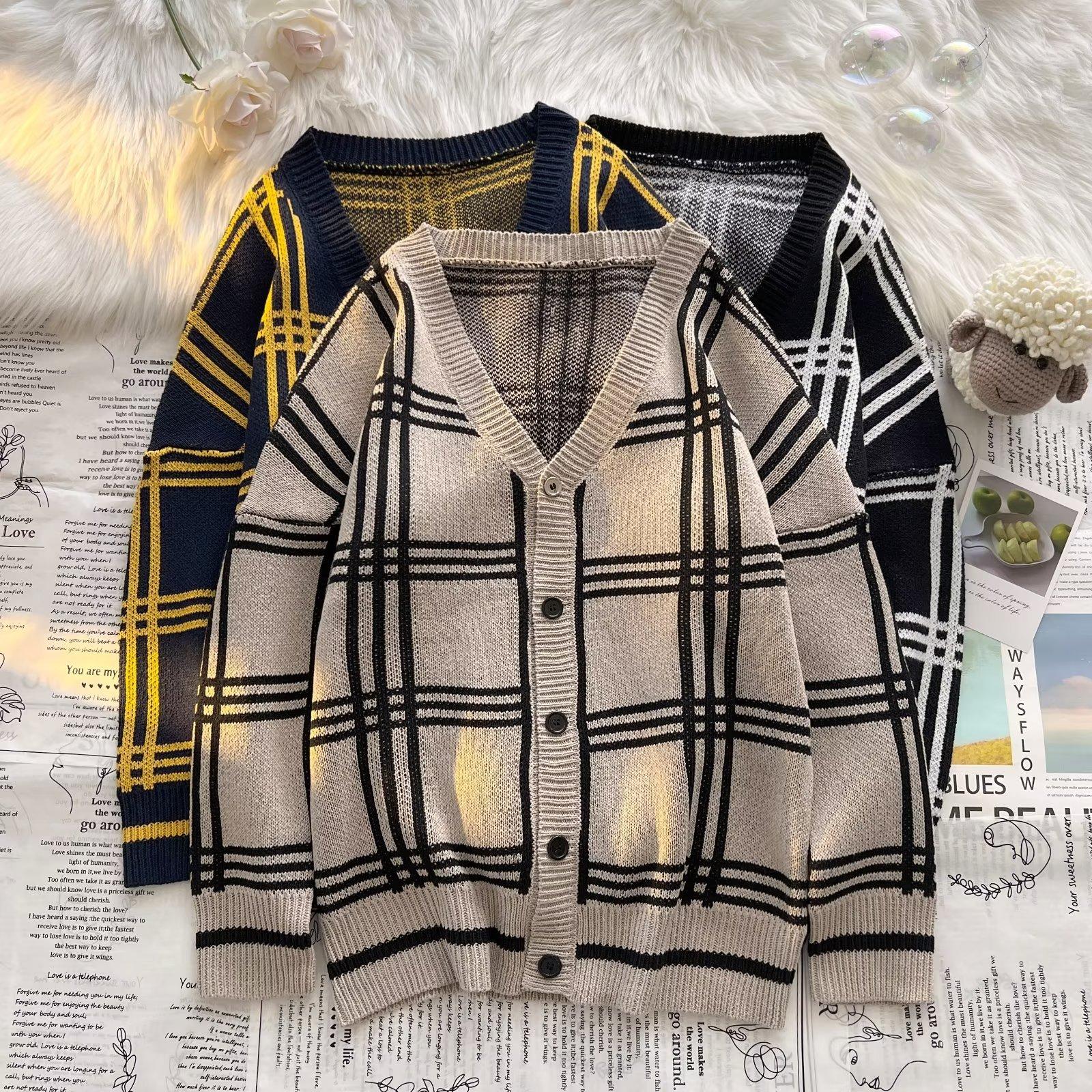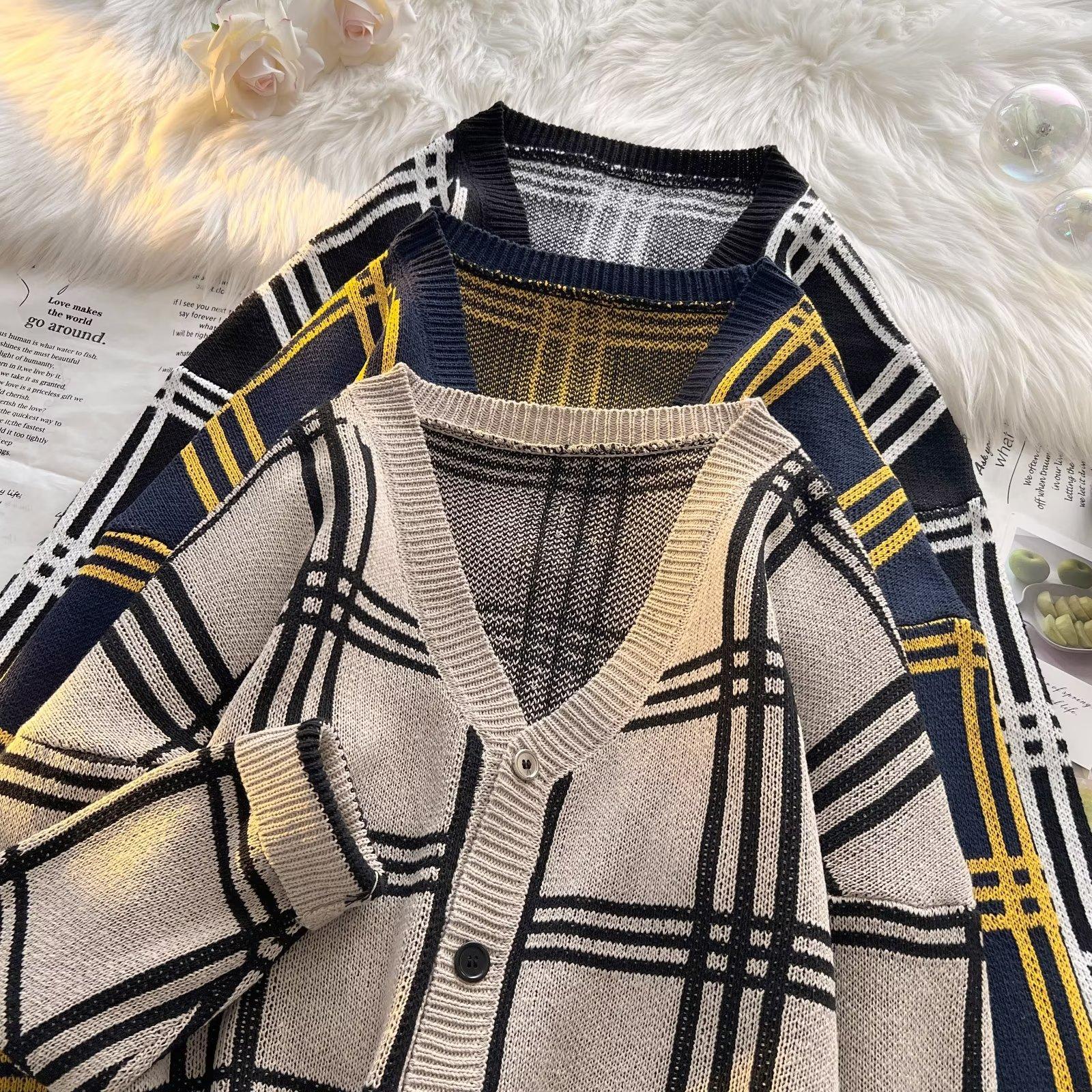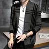Primavera y otoño 2022 Nuevo cárdigan informal a cuadros para hombre, chaqueta de punto de manga larga a juego, moderna, para jóvenes y de mediana edad