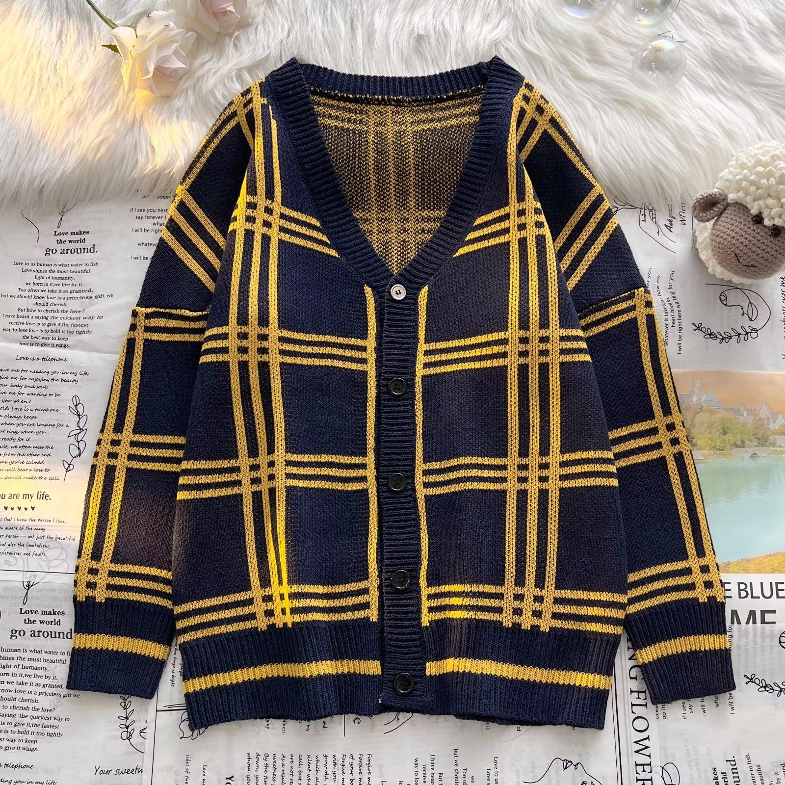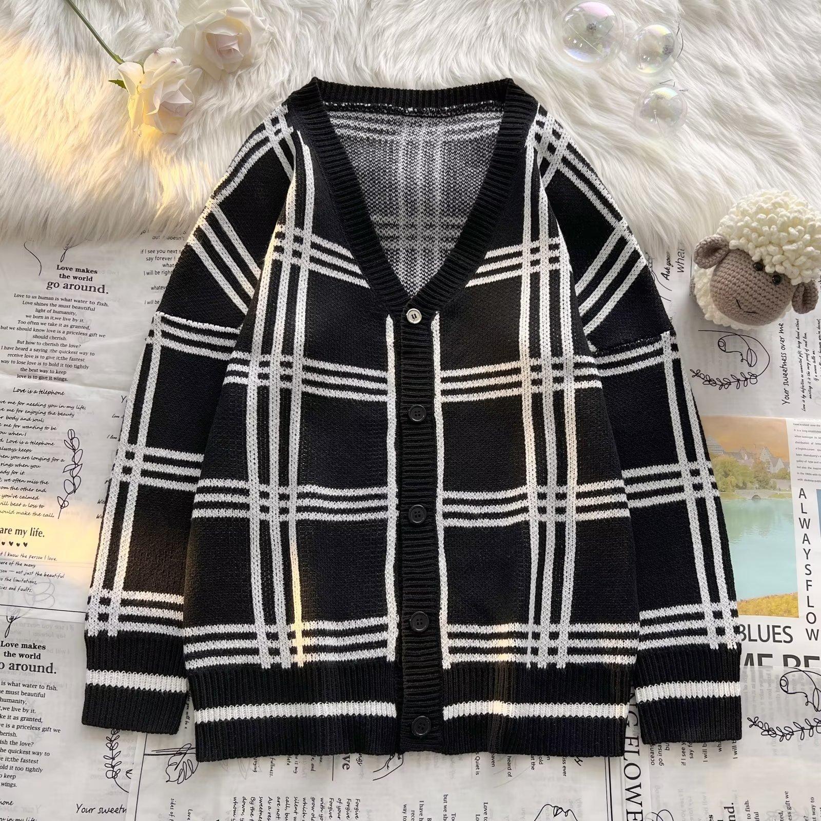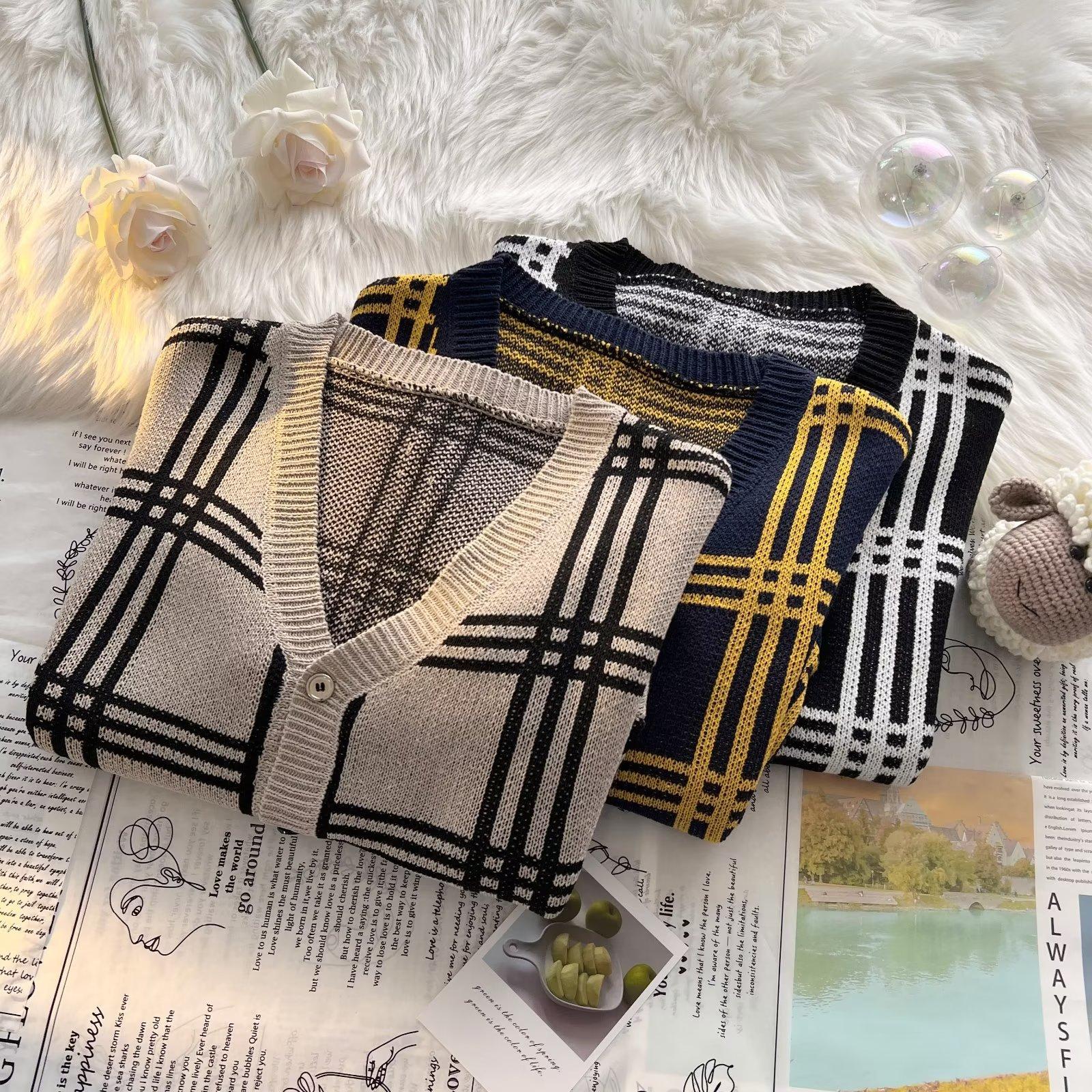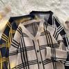 Primavera y otoño 2022 Nuevo cárdigan informal a cuadros para hombre, chaqueta de punto de manga larga a juego, moderna, para jóvenes y de mediana edad