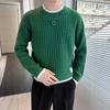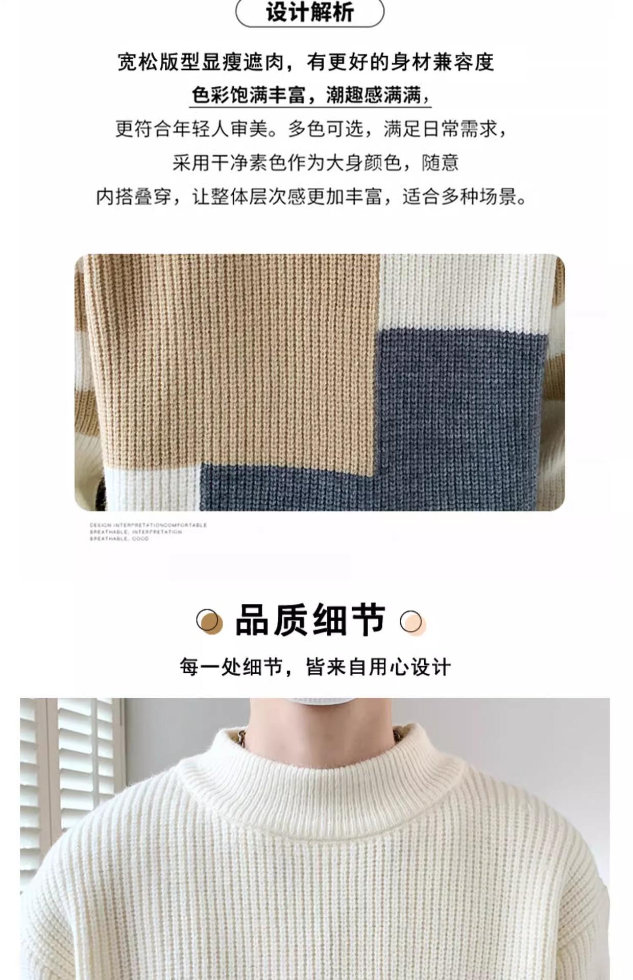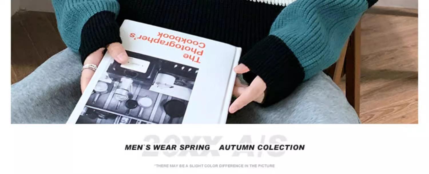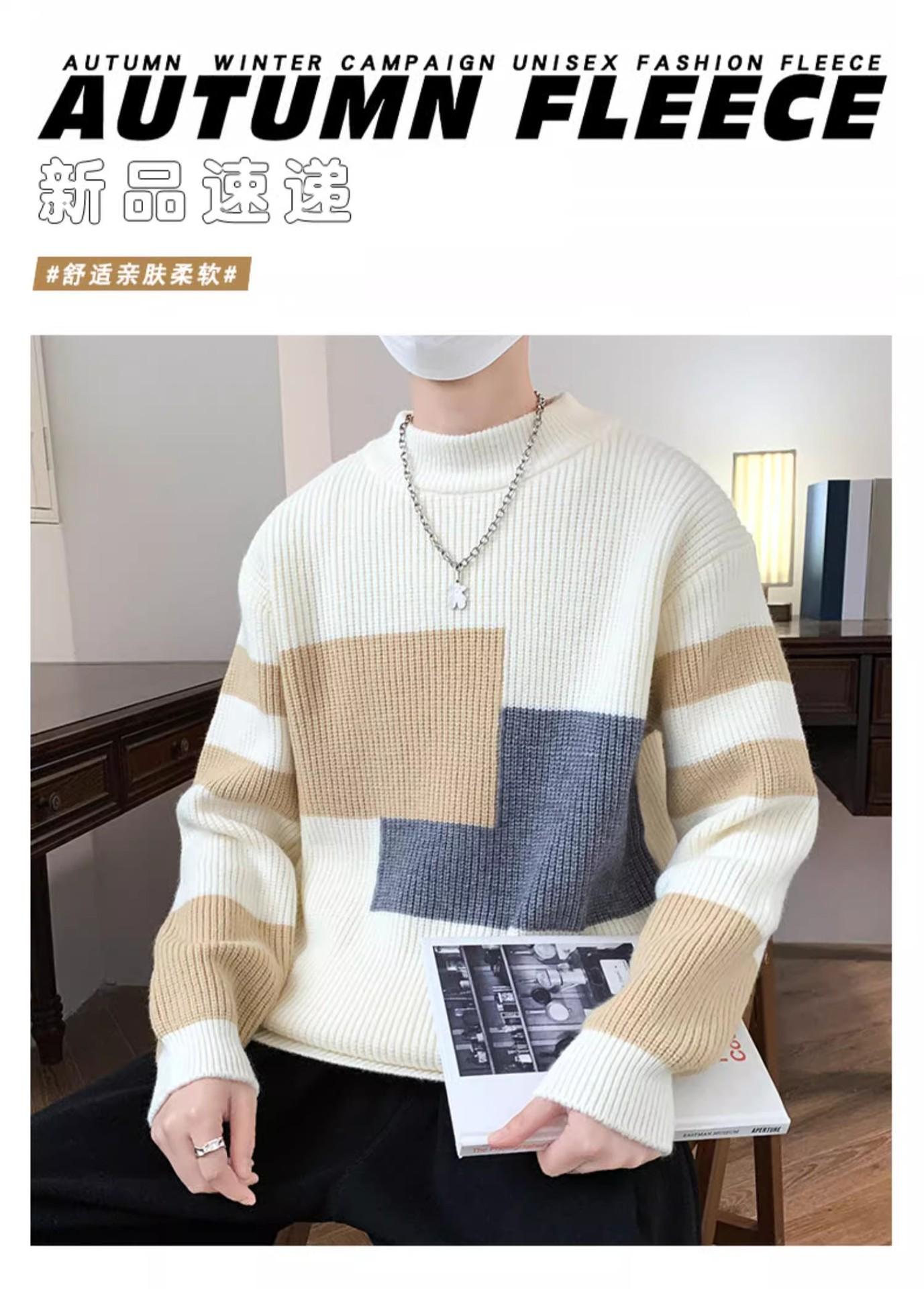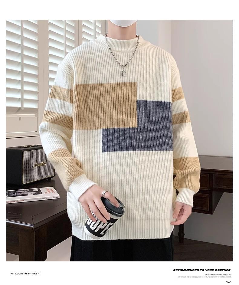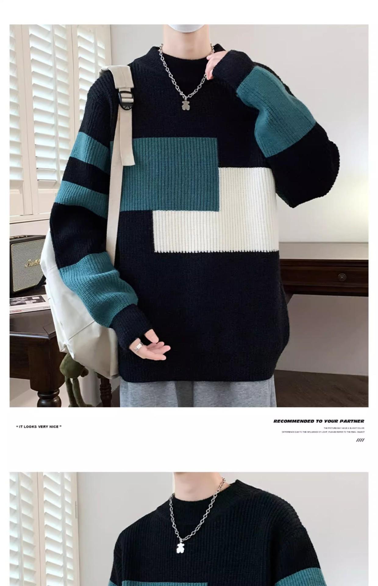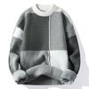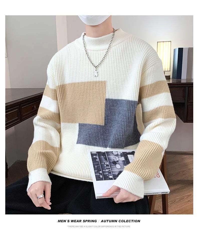 Suéter Rayado de Color Contrastante para Hombre Otoño e Invierno Moda de Marca Cuello Redondo Manga Larga Camiseta Base Suéter Juvenil Suéter Cálido Suéter para Hombre