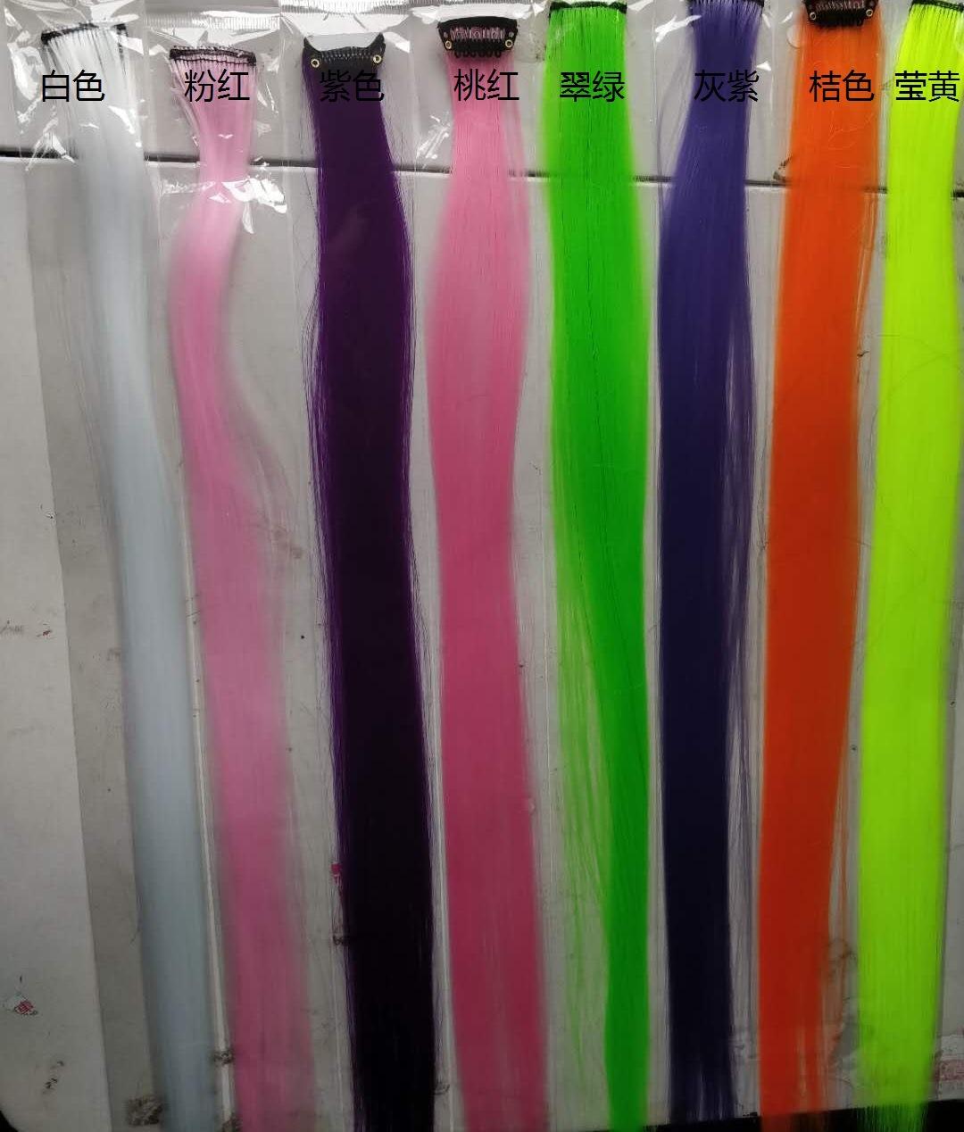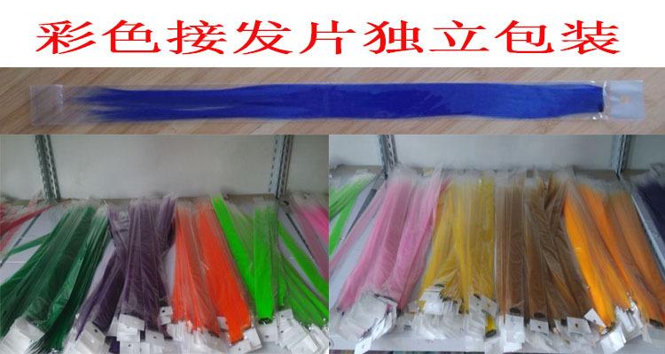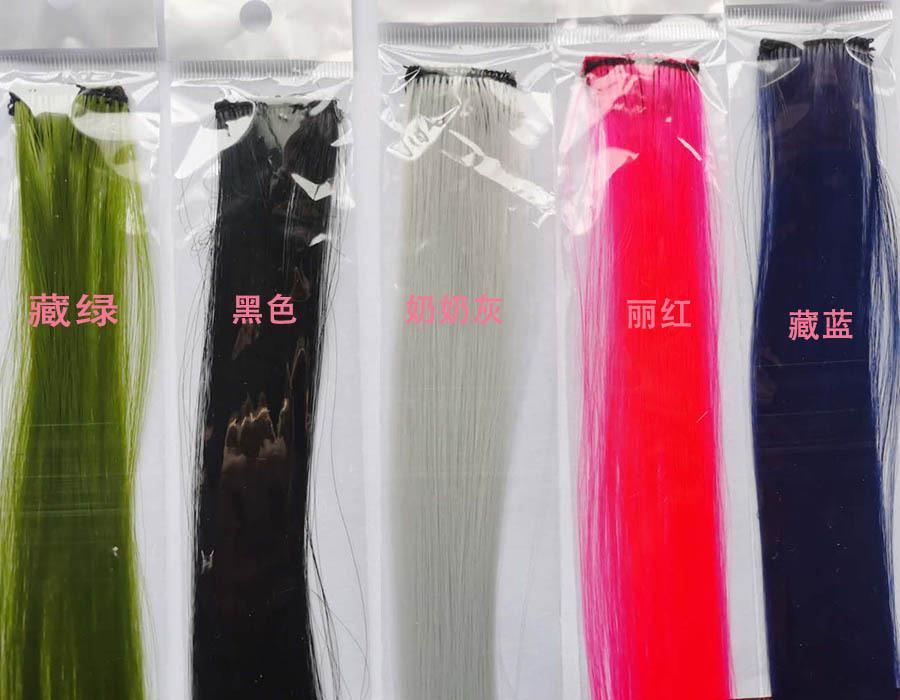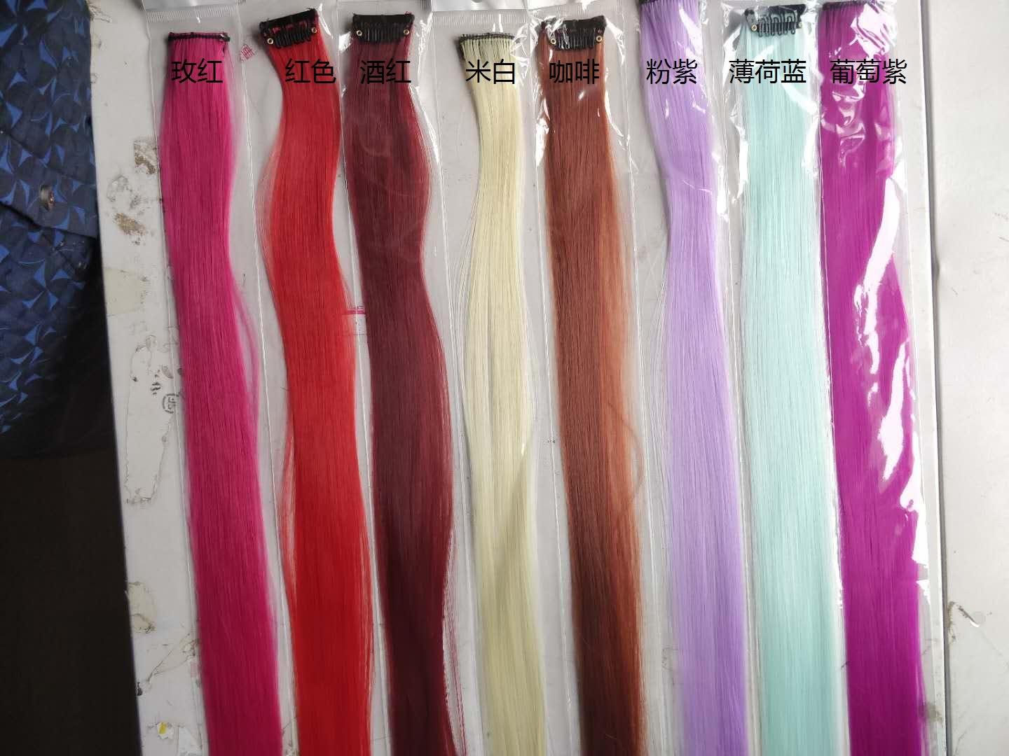 Somos el fabricante que produce y vende directamente extensiones de cabello de colores. Tenemos 30 colores, hechas de alambre de alta temperatura, se pueden rizar y tienen buena calidad. Usamos embalaje individual. Cada extensión de cabello pesa alrededor de 7 gramos, tiene aproximadamente 3 centímetros de ancho y aproximadamente 50 centímetros de largo.