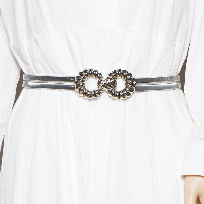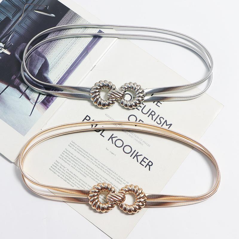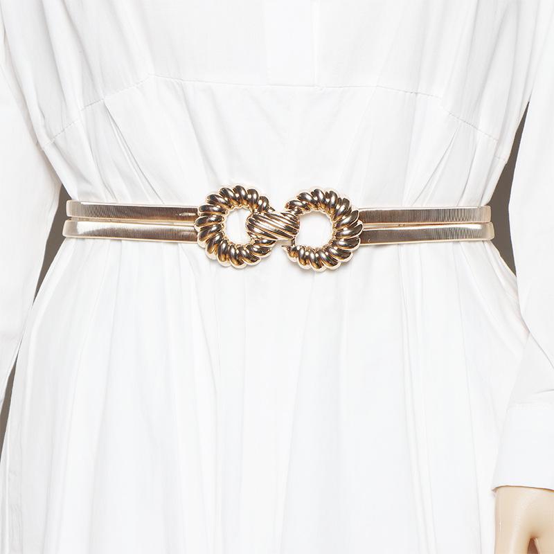 Compra Cinturón para Mujer de Alta Gama con Sentido Metálico Hoja de Oro de Primavera Cinturón Elástico Elástico Sello de Cintura Cadena de Cintura para Vestido de Mujer al por mayor en Joom.pro