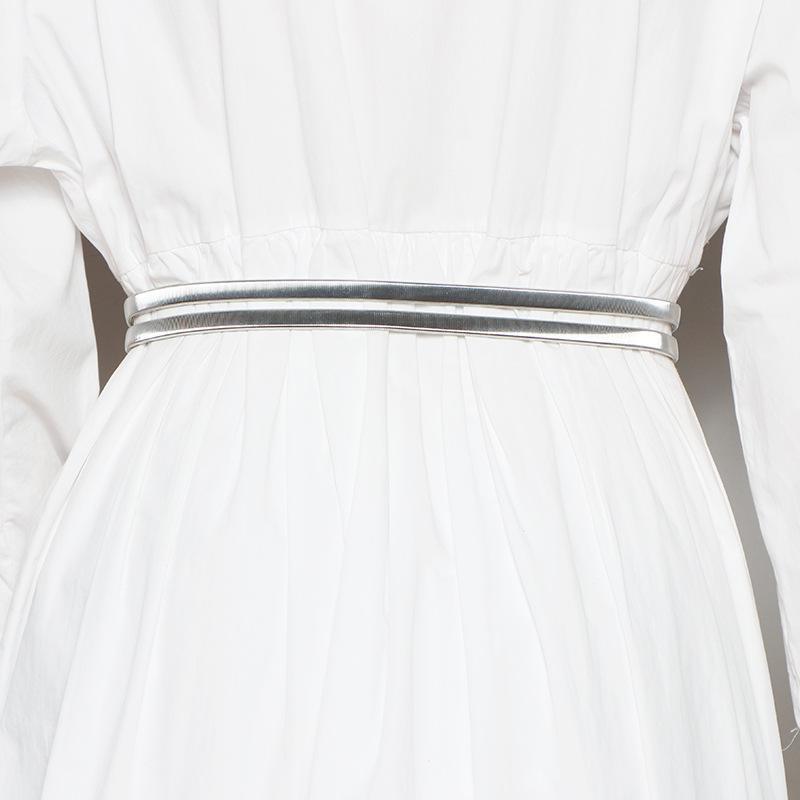 Cinturón para Mujer de Alta Gama con Sentido Metálico Hoja de Oro de Primavera Cinturón Elástico Elástico Sello de Cintura Cadena de Cintura para Vestido de Mujer
