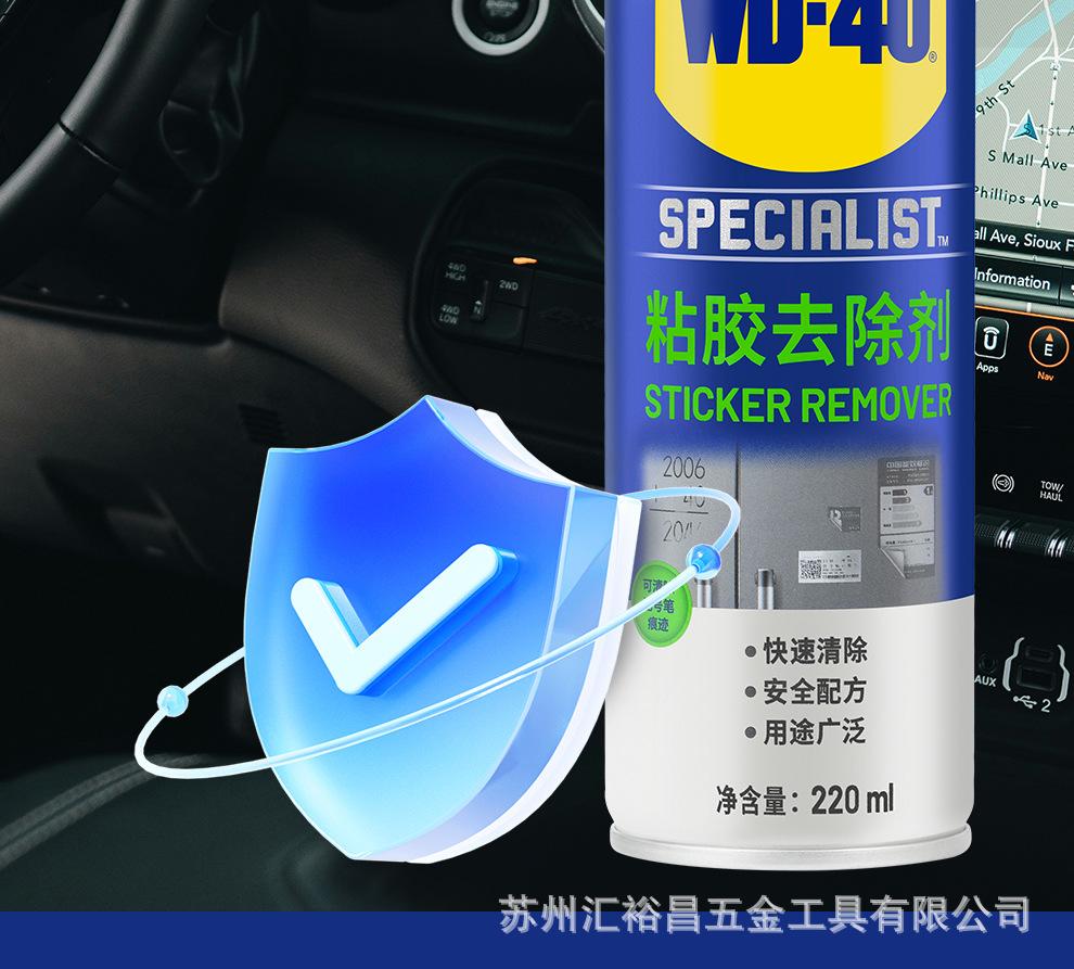 Removedor de adhesivo WD-40 de 220 ml, adhesivo de doble cara para coche, limpiador removedor de adhesivo multifuncional para el hogar.