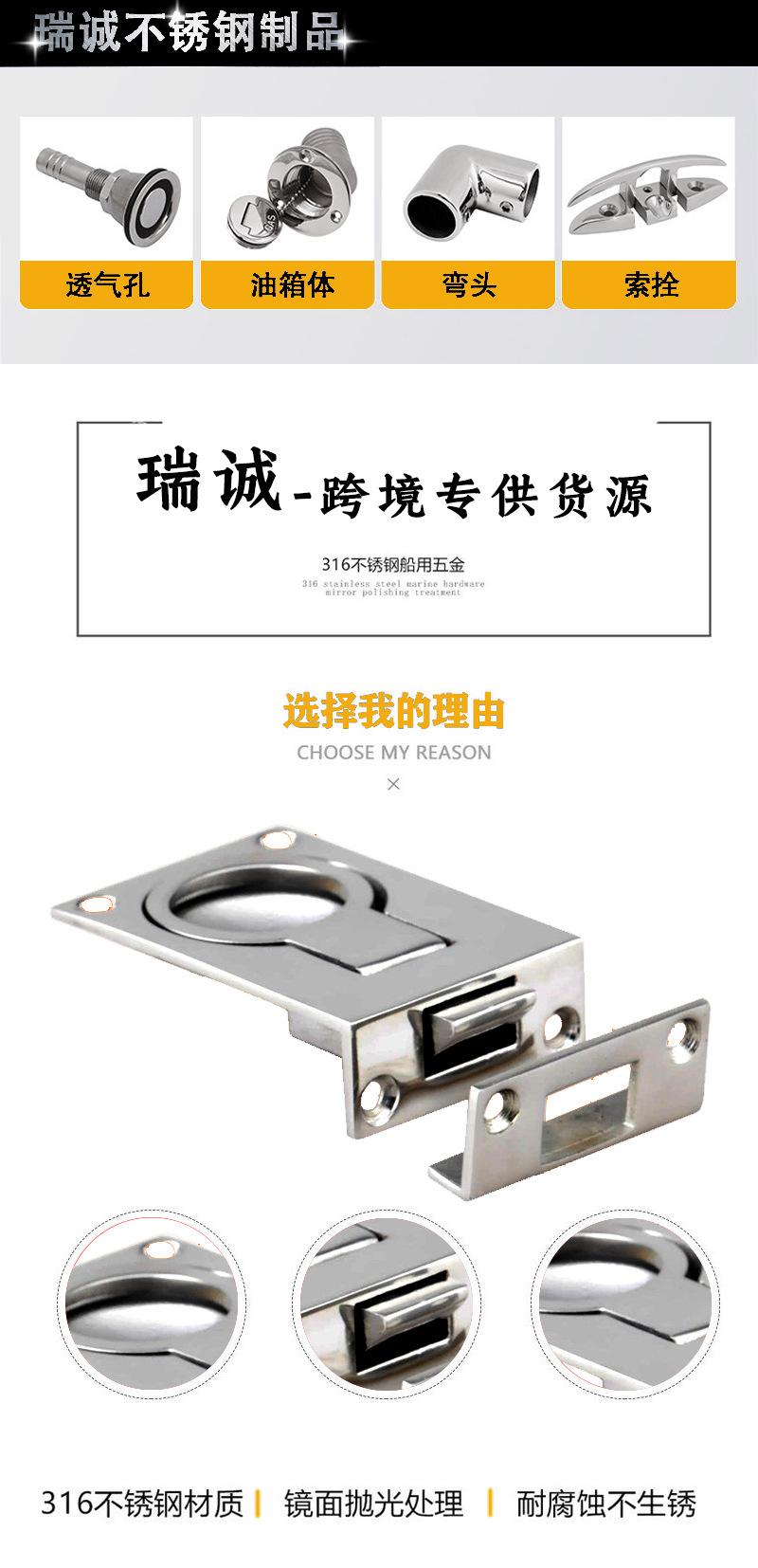 Hebilla de piso dividido marino de acero inoxidable 316 para cerradura de cubierta de yate, anillo de tiro cuadrado con lengüeta, herrajes marinos para RV